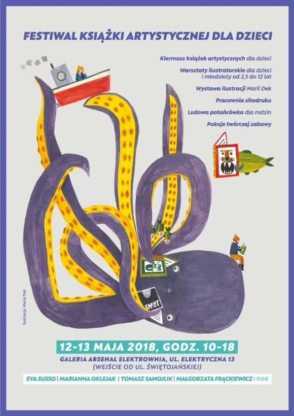 W ramach Festiwalu odbędzie się Kiermasz książek artystycznych i o sztuce dla dzieci, w którym weźmie udział kilkadziesiąt wydawnictw z całej Polski, również tych niszowych, których książki nie mają ogólnopolskiej, szerokiej dystrybucji, a także autorzy sprzedające swoje książki. Dla rodziców i dzieci biorących udział w kiermaszu będzie to unikatowa okazja do zapoznania się z nowościami wydawniczymi. Nie zabraknie też książek traktujących o sztuce oraz takich, które przy wykorzystaniu niebanalnej estetyki opowiadają o sprawach istotnych i trudnych nie tylko dla dorosłych, ale także dla dzieci: zazdrości o młodsze rodzeństwo, śmierci bliskich, dramacie wojny, odmienności kulturowej sąsiadów, chorobie, czy najnowszej historii Europy. Wydawnictwa zaprezentują zarówno nowości, jak i książki dobrze znane.