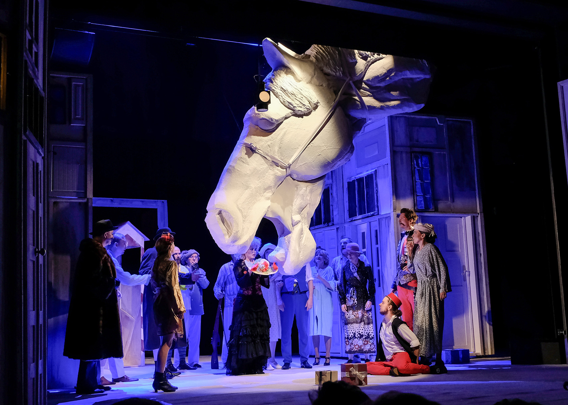 Słomkowy kapelusz Eugene’a Labiche’a w przekładzie Juliana Tuwima - spektakl Białostockiego Teatru Lalek, który zakończył pierwszy oficjalny dzień Festiwalu - to farsa będąca jazdą bez trzymanki. Z historii o poszukiwaniu słomkowego kapelusza reżyser wyciąga wszystkie absurdy, a postaci skarykaturyzował jak to tylko możliwe. Przez tę koncepcję całość niebezpiecznie balansuje pomiędzy dowcipem a kiczem. To spektakl, który się kocha lub nienawidzi.