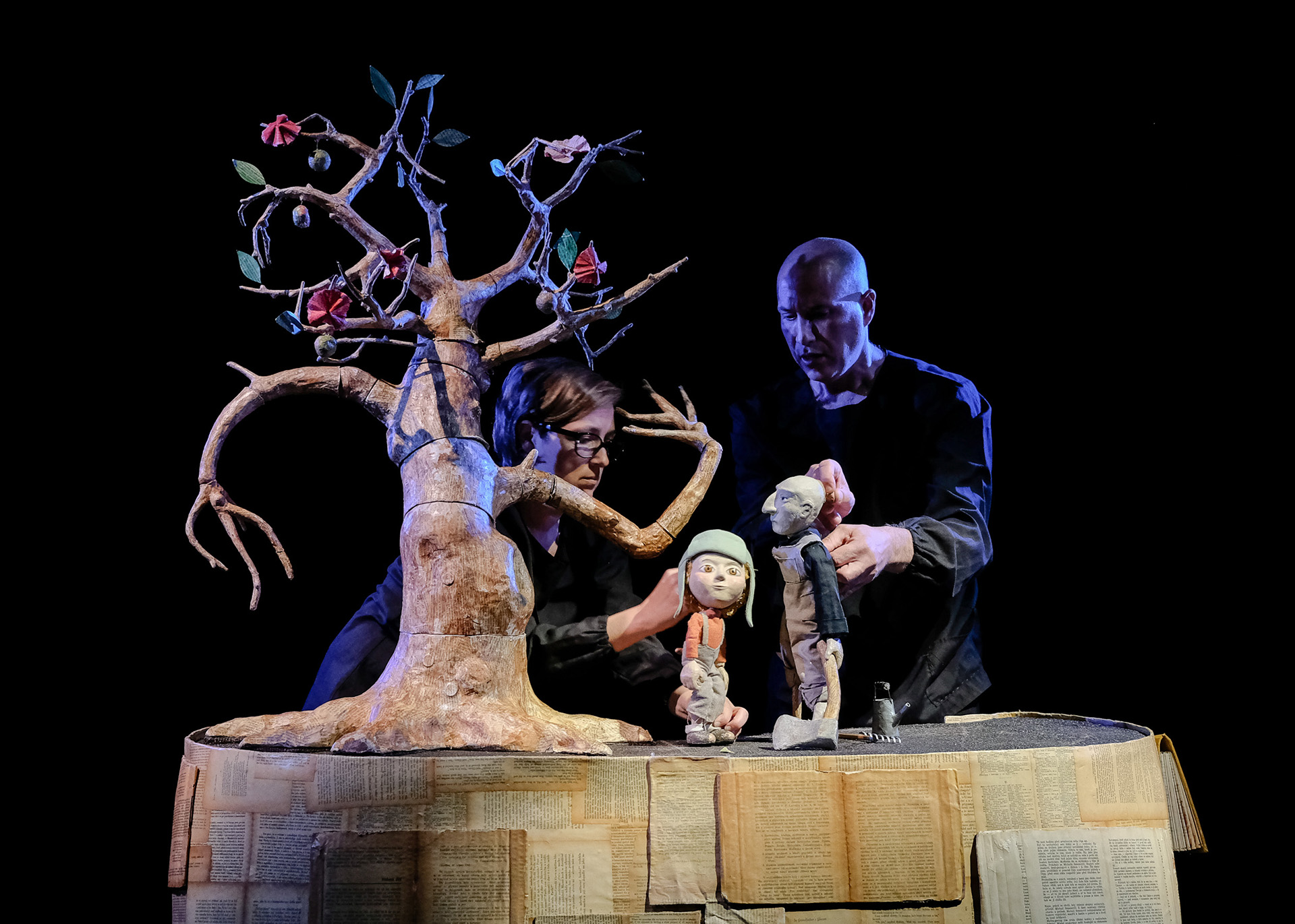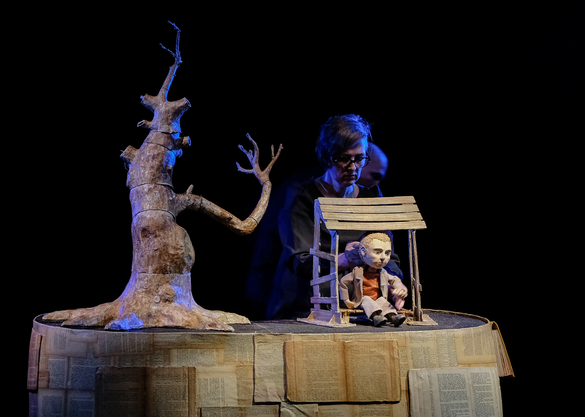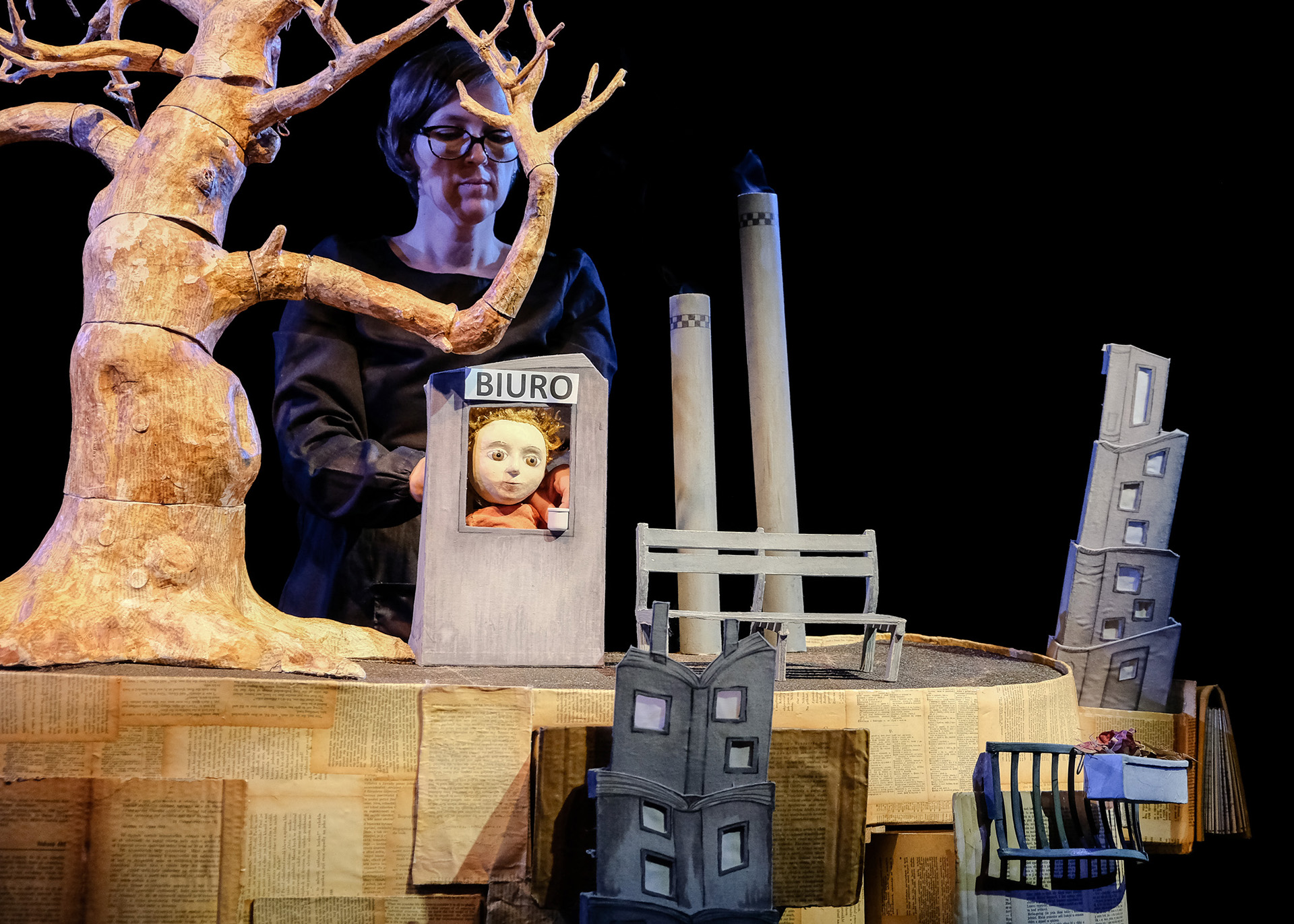 Przyroda to doskonały artysta, który tworzy nieustannie nowe widowiska przy pomocy roślin i zwierząt. Tak jest w rzeczywistości i tak też było w spektaklu, który opowiedział historię relacji chłopca z matką naturą. Na samym początku śledziliśmy dzieciństwo małej, papierowej lalki stolikowej. Czas beztroskiej zabawy jednak szybko minął i na scenę wkroczył już większy bohater, a razem z nim zmiana otoczenia. Spokojne odludzie stało się w tętniącym życiem miastem pełnym wysokich bloków i dymiących fabrycznych kominów. Nasz bohater wkraczając w dorosłość zaczął mierzyć się z nowymi problemami. W końcu zatracił się w prozie życia i przestał odwiedzać swojego przyjaciela z czasów dzieciństwa – drzewo. Po długim czasie, wrócił, ale już bardzo zmieniony. I kiedy czarny pan w kapeluszu zaproponował mu pieniądze, ten nie wahał się ani minuty i pozwolił ściąć drzewo. Zabójstwo dokonało się przy zgaszonym świetle.