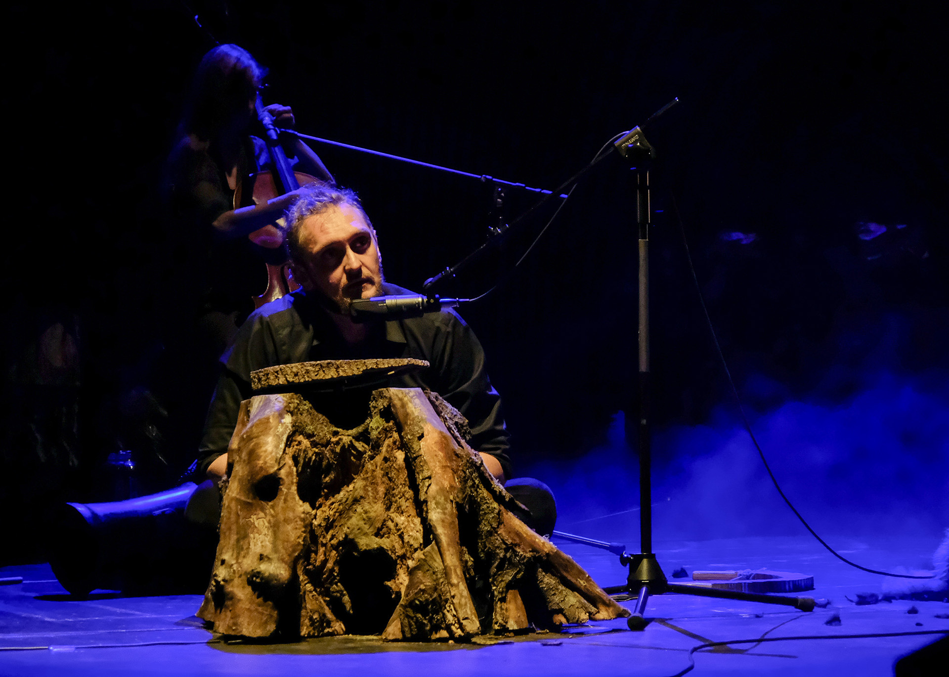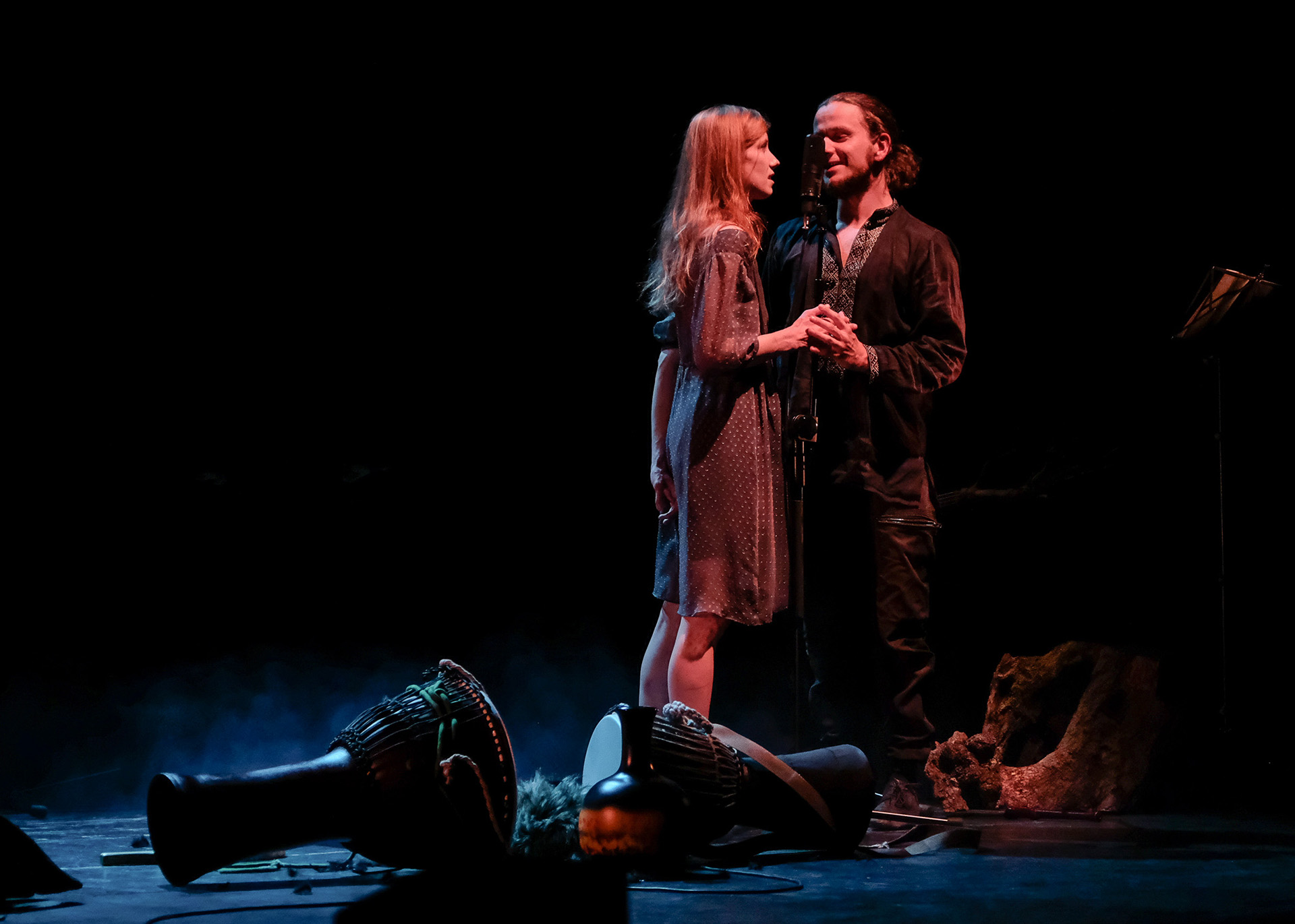 Na scenie, spowitej mgłą zaprezentowane zostało sekretne życie puszczy. Musical stał się dendrohorrorem. Przez cały spektakl wędrowaliśmy między wysokimi drzewami, słyszeliśmy odgłosy dzikich zwierząt, skrzypot runa pod naszymi stopami, niemalże czuliśmy zapach żywicy. Aktorzy udowodnili nam, że zło nie musi być takie straszne, jak nam się wydaje, bo z potworami da się zaprzyjaźnić. Dreszczowiec zmienił się w uroczą bajkę, której bohaterów się nie boimy. Śledziliśmy losy zakochanych młodzieńców, którzy spotykali się w ukryciu, poznaliśmy zalotną Judi oraz Peruna – słowiańskiego Bachusa – który w wieńcu z polnych kwiatów wpadł w demoniczny leśny szał. Nie wszystkie opowieści jednak dobrze się kończą. Okrutna rzeczywistość niszczy bajki tak jak postęp niszczy naturę. Puszcza została zamknięta papierowym kluczem i przestała być wspólnym domem.