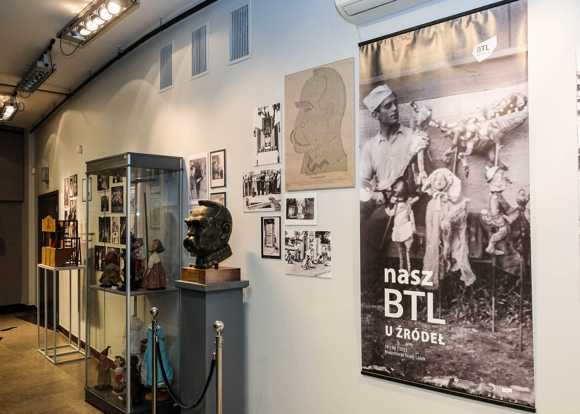 The idea behind this anniversary presentation is to show Piotr Sawicki’s achievements in all their fullness. After all, the founder of BTL, contrary to popular belief, was not only a theatrical social activist, but also an efficient organizer who stubbornly pursued his goals. Above all, Piotr Sawicki was an interesting creative personality, a versatile, talented artist with rich but little-known output. Although perhaps the phrase “showing in all its fullness” is not – to be exact and honest – appropriate in the context of this exhibition. In BTL foyer, we are able to barely signal the uniqueness of Piotr Sawicki. We tried to do this by presenting his memorabilia, but above all by presenting his selected works and reproductions of those that have not survived to our times. They give some idea of the spectrum of artistic activity of BTL creator, which was really wide. After all, the first director of Białystok puppet scene was not only a director, stage designer, designer of puppets, costumes and masks, but also a draftsman, painter, sculptor, designer of occasional decorations and advertisements, a poet as well as a photographer working in the field of reportage, theatre documentation, landscape and portrait.