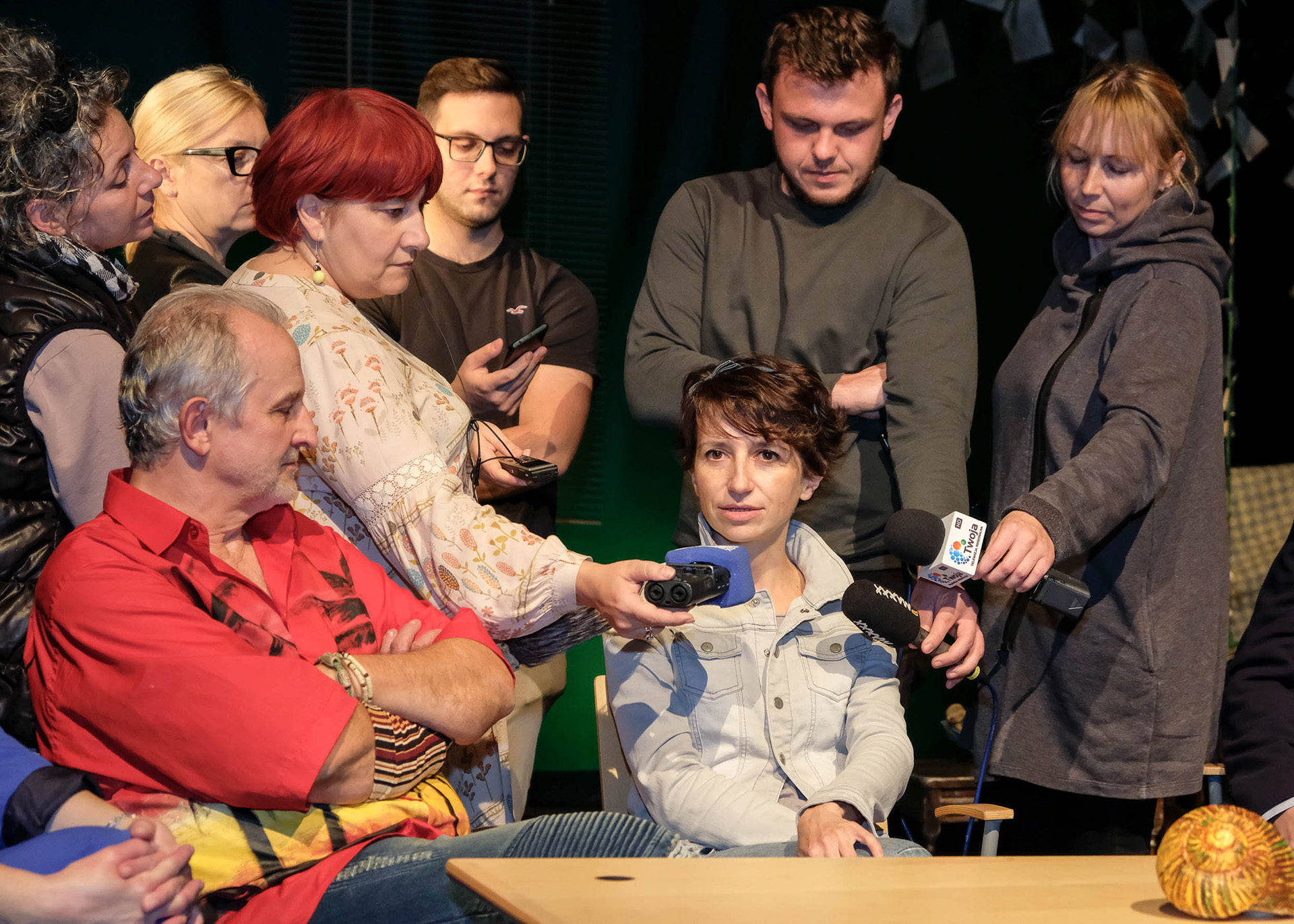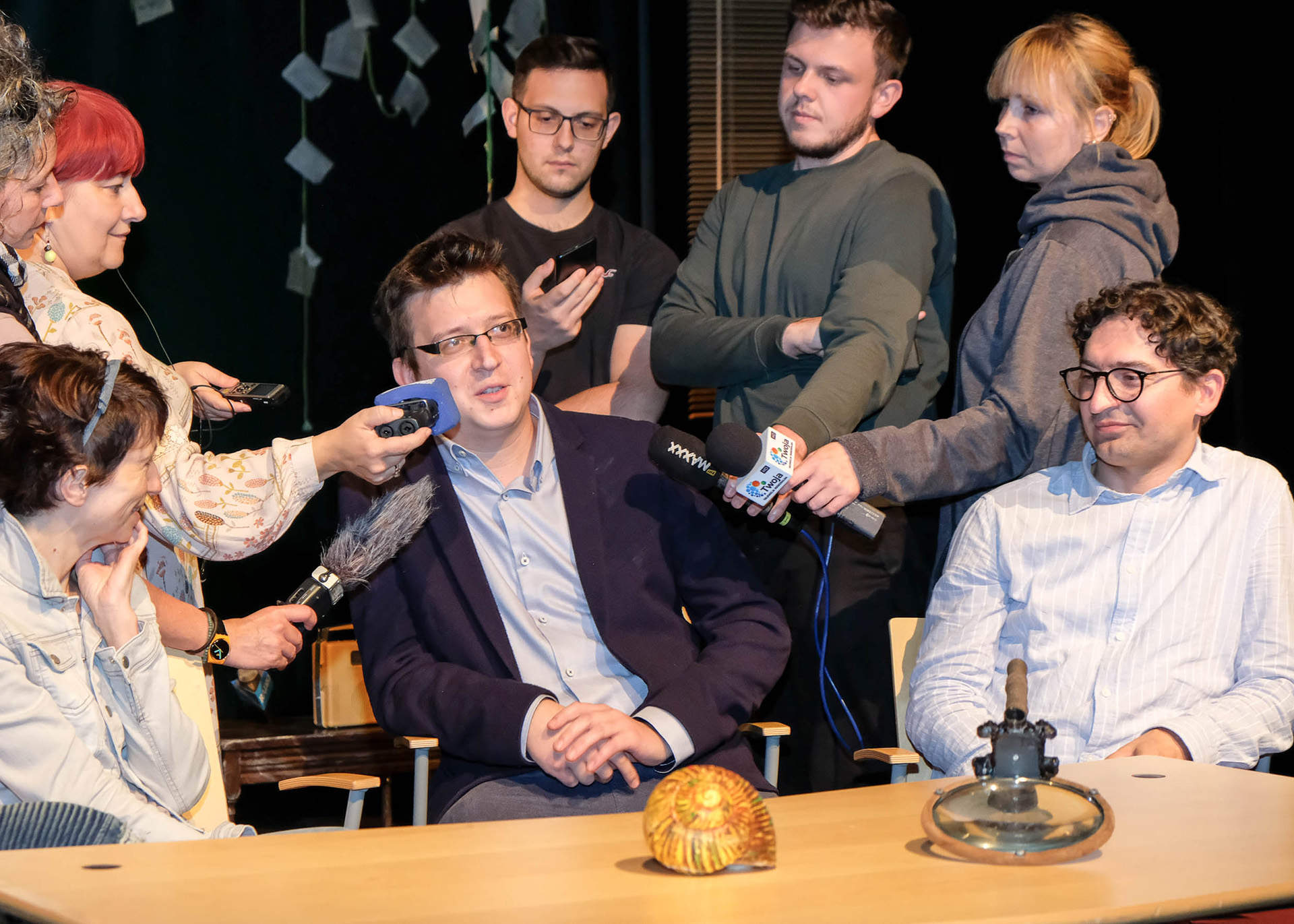 Na pytania będą odpowiadać: Marta Guśniowska – autorka tekstu, Jacek Malinowski – reżyser, Michał Wyszkowski – scenograf, Marcin Nagnajewicz – autor muzyki oraz aktorzy: Sylwia Janowicz-Dobrowolska i Wiesław Czołpiński.
