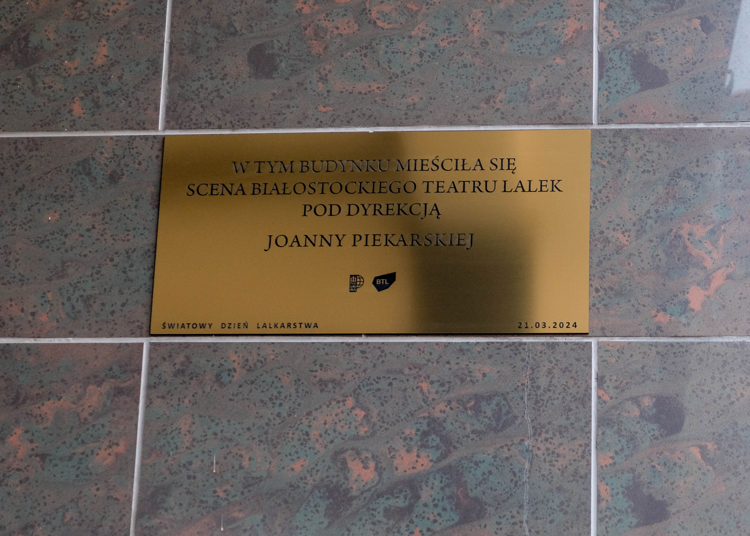 21 marca 2024 o godz. 11.30 odbyło się uroczyste odsłonięcie umieszczonej na fasadzie budynku Izby Rzemieślniczej i Przedsiębiorczości tablicy pamiątkowej poświęconej Joannie Piekarskiej – artystce plastyk, reżyserce, poetce i wreszcie dyrektor Teatru „Świerszcz” – dzisiejszego Białostockiego Teatru Lalek.