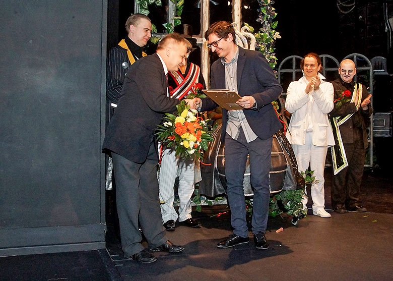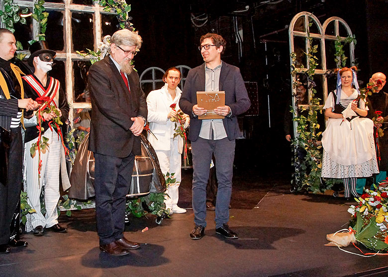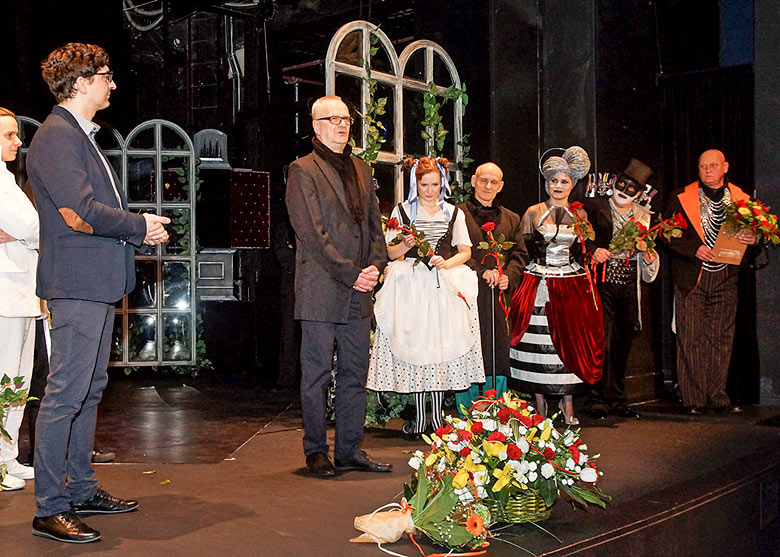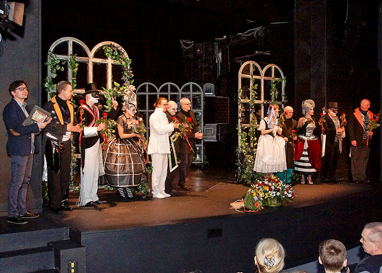 Premierze spektaklu "Cień" towarzyszyło wręczenie nagród jubileuszowych: prof. Piotrowi Damulewiczowi oraz Piotrowi Kalinowskiemu.