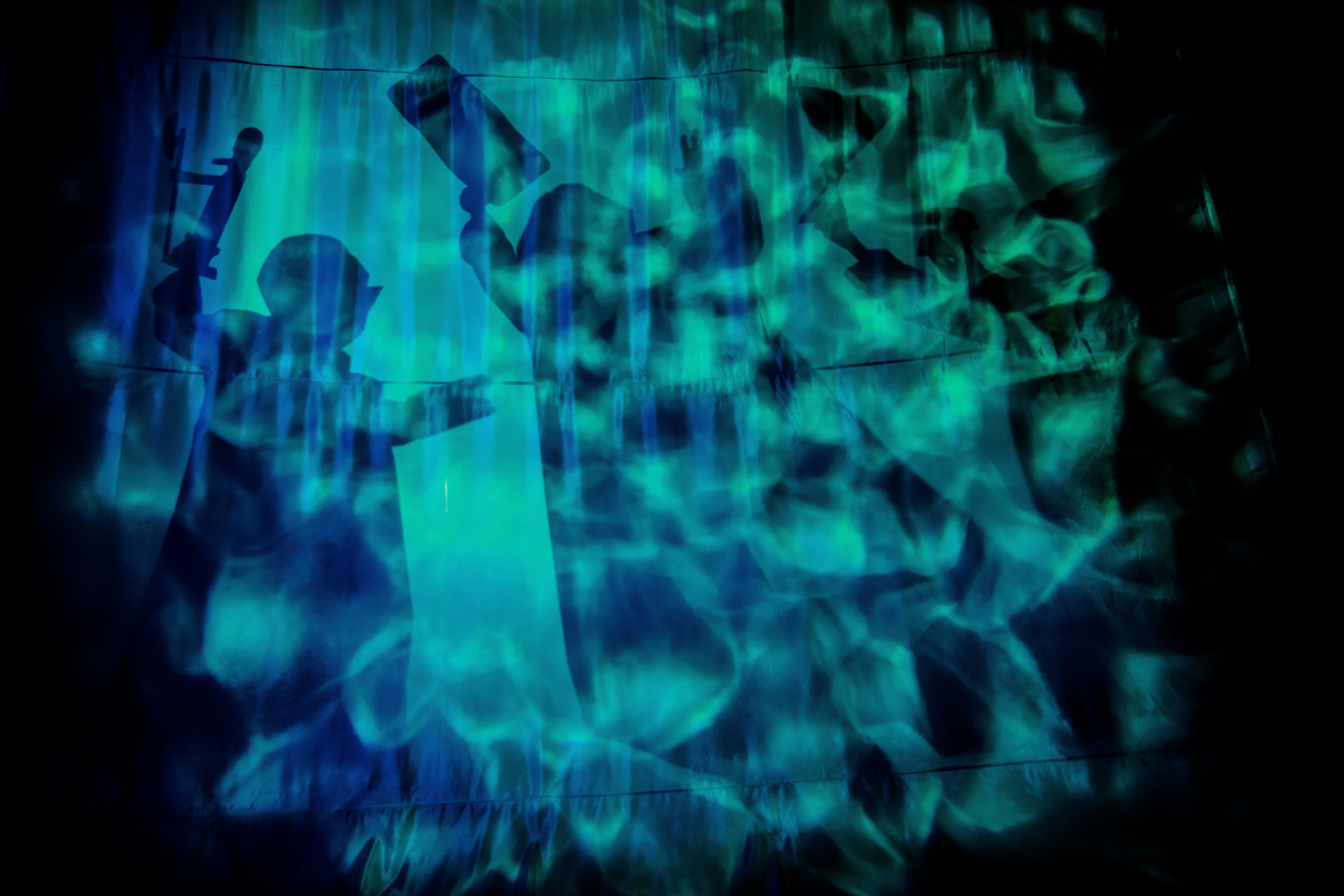 Oto błysk światła – i w małej salce kawałek niebieskiej materii zacznie się mienić niczym turkusowe bajeczne morze, w jednej sekundzie urzekając publiczność.
