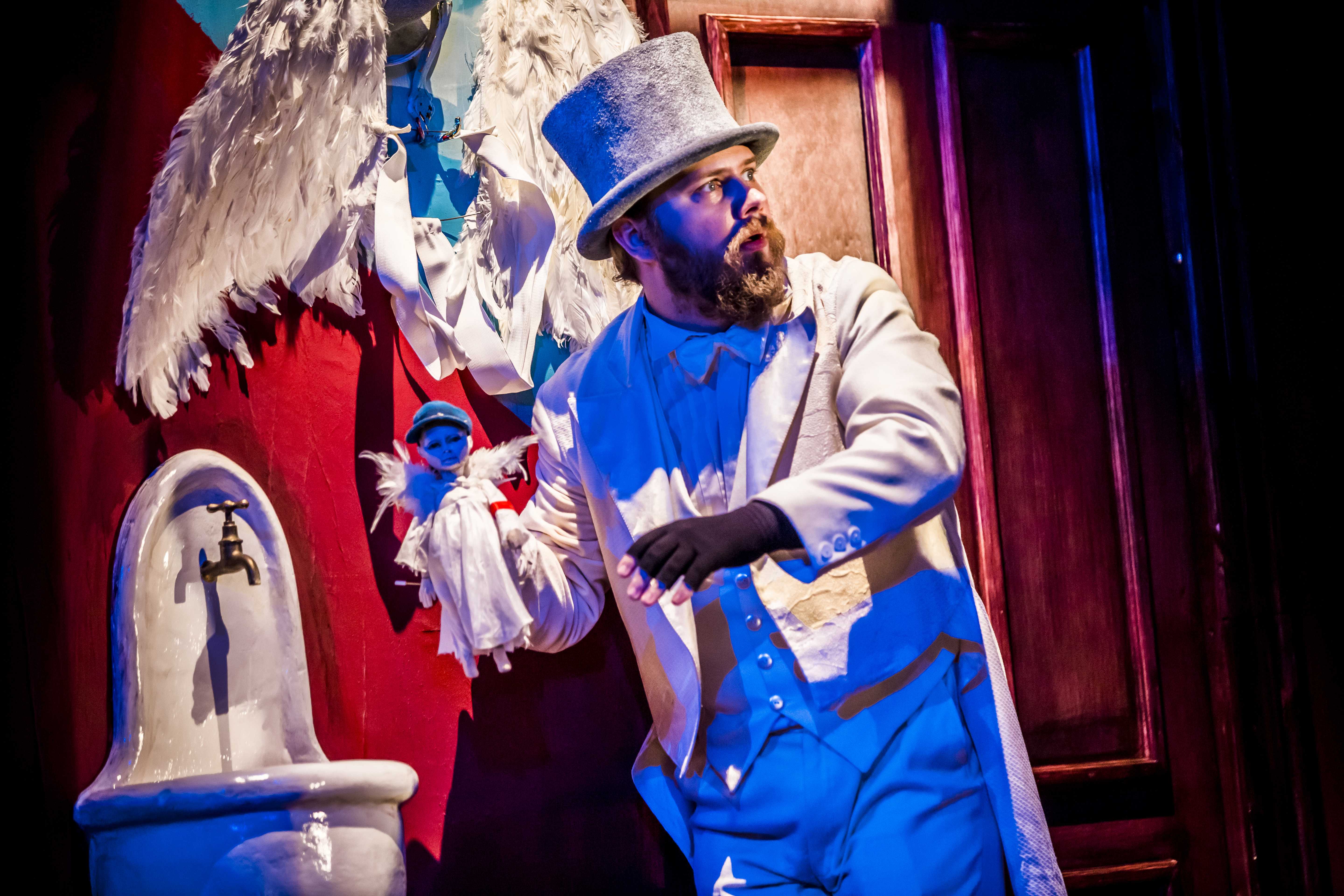 Po trzecie: reżyser, znany starszej publiczności BTL-u - Słowak Marian Pecko. Bajka Guśniowskiej w jego rękach jest jak dobry keks - z mnóstwem niespodzianek, smaczków, niuansów, mrugnięć do publiczności. Tekst odczytał i zwizualizował w charakterystyczny dla siebie sposób - trochę słodko-gorzki, przy czym nieustająco pogodny, w planie aktorskim i lalkowym. Są tu warstwy dla dorosłego, są dla całkiem małego. W scence z babcią, która negocjuje zabranie drugiej pary rajstop do nieba, ten starszy dostrzeże swoje, a młodszy - swoje, choćby było to tylko śledzenie, na czym dokładnie polega niebiański transport. Podobnie w scence z tajemniczym Szefem Aniołka, siedzącym tyłem do wszystkich i rozliczającym z intensywności wiary ("co pokażę, co pokażę! A wierzyć to nie łaska?!"). Czy scenka z Kieszonkowcem (świetny Michał Jarmoszuk), który ma węża (nie tylko biblijnego) w kieszeni. Każdy z widzów, w tym pełnym prostoty, a jednocześnie wielopiętrowym znaczeniowo spektaklu, znajdzie coś dla siebie, czy to w niuansach inscenizacyjnych (a niespodzianek jest sporo), czy słownych ("za straty moralne wystawię ci rachunek, bo ja moralność muszę mieć w całości").