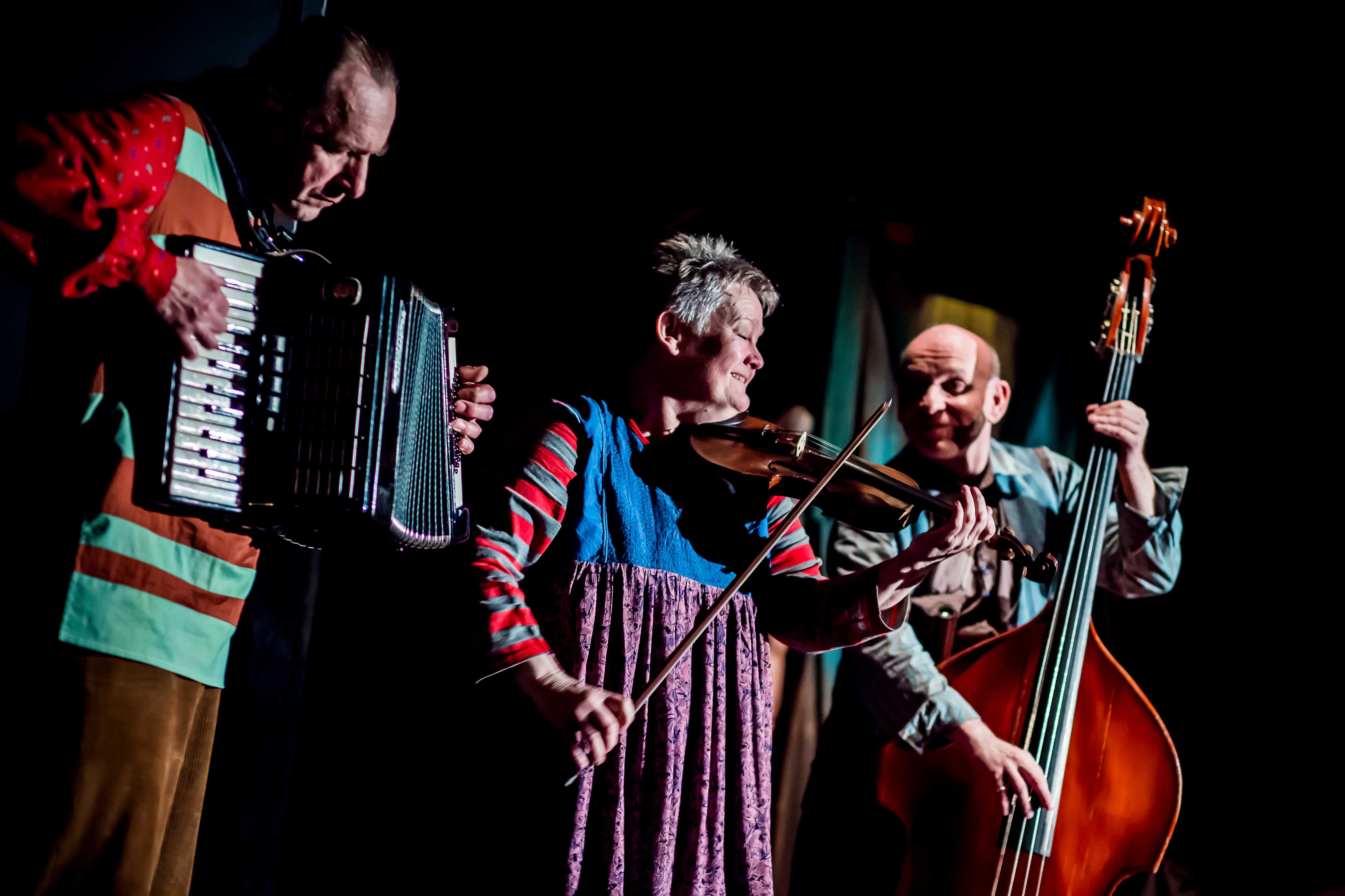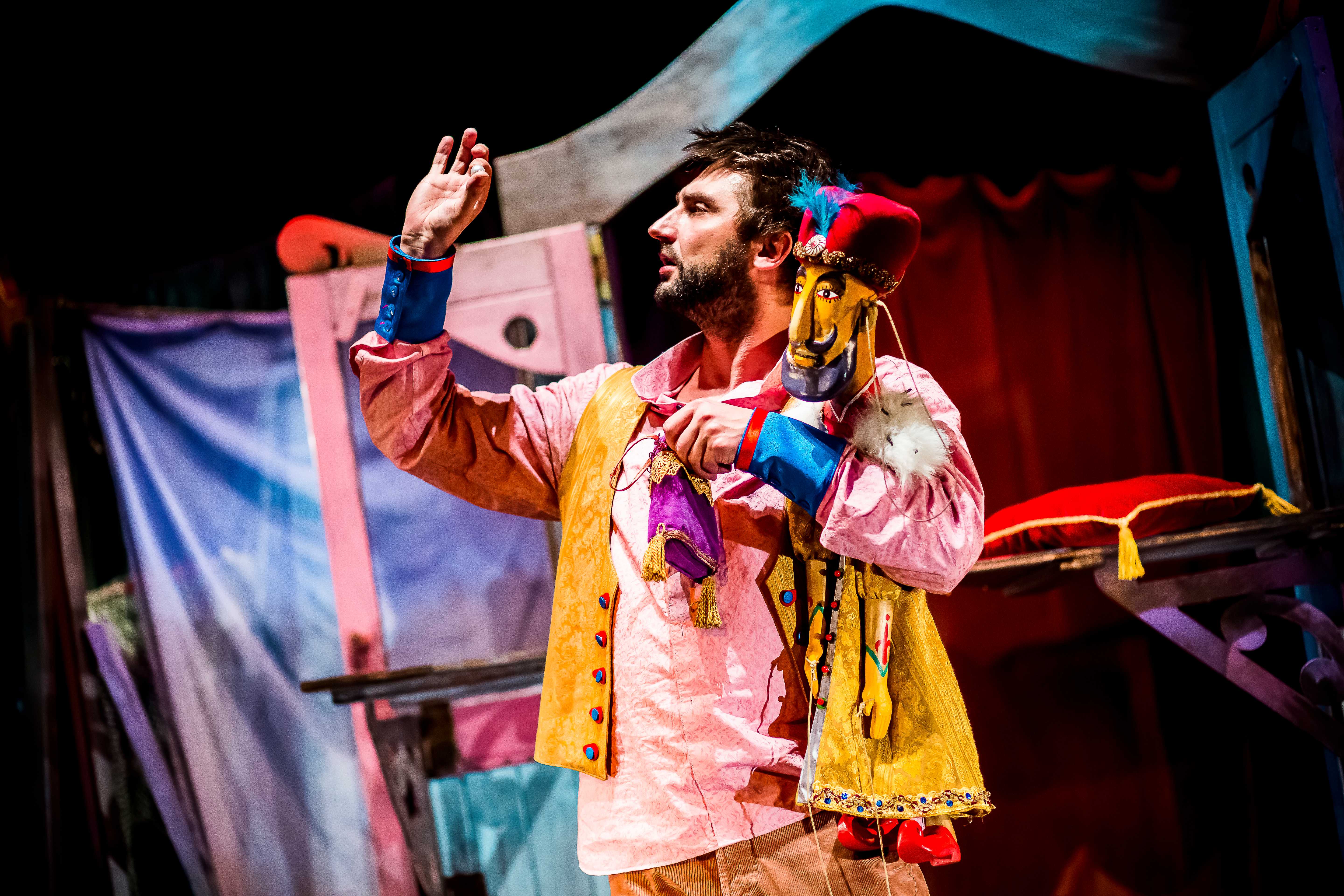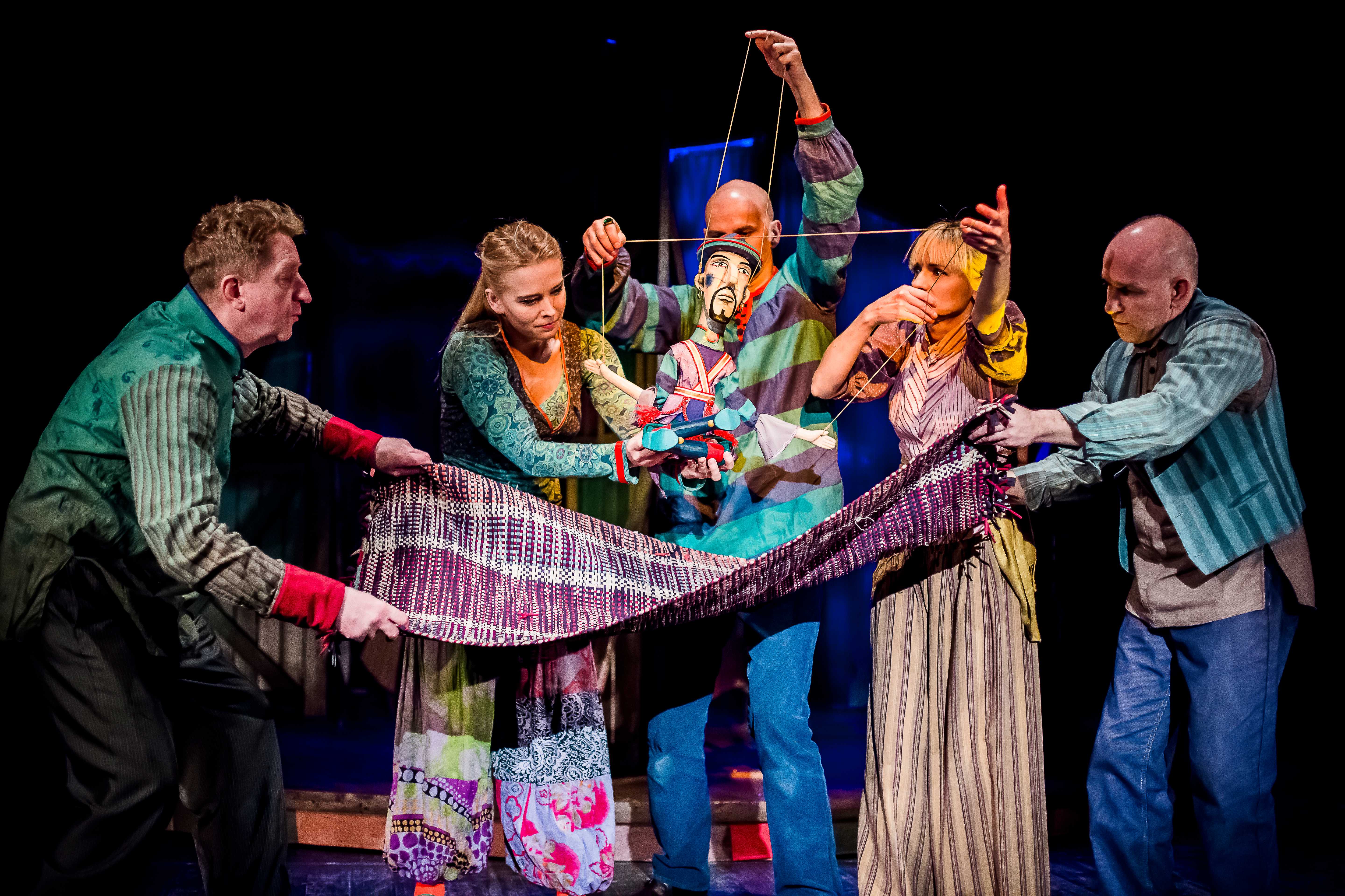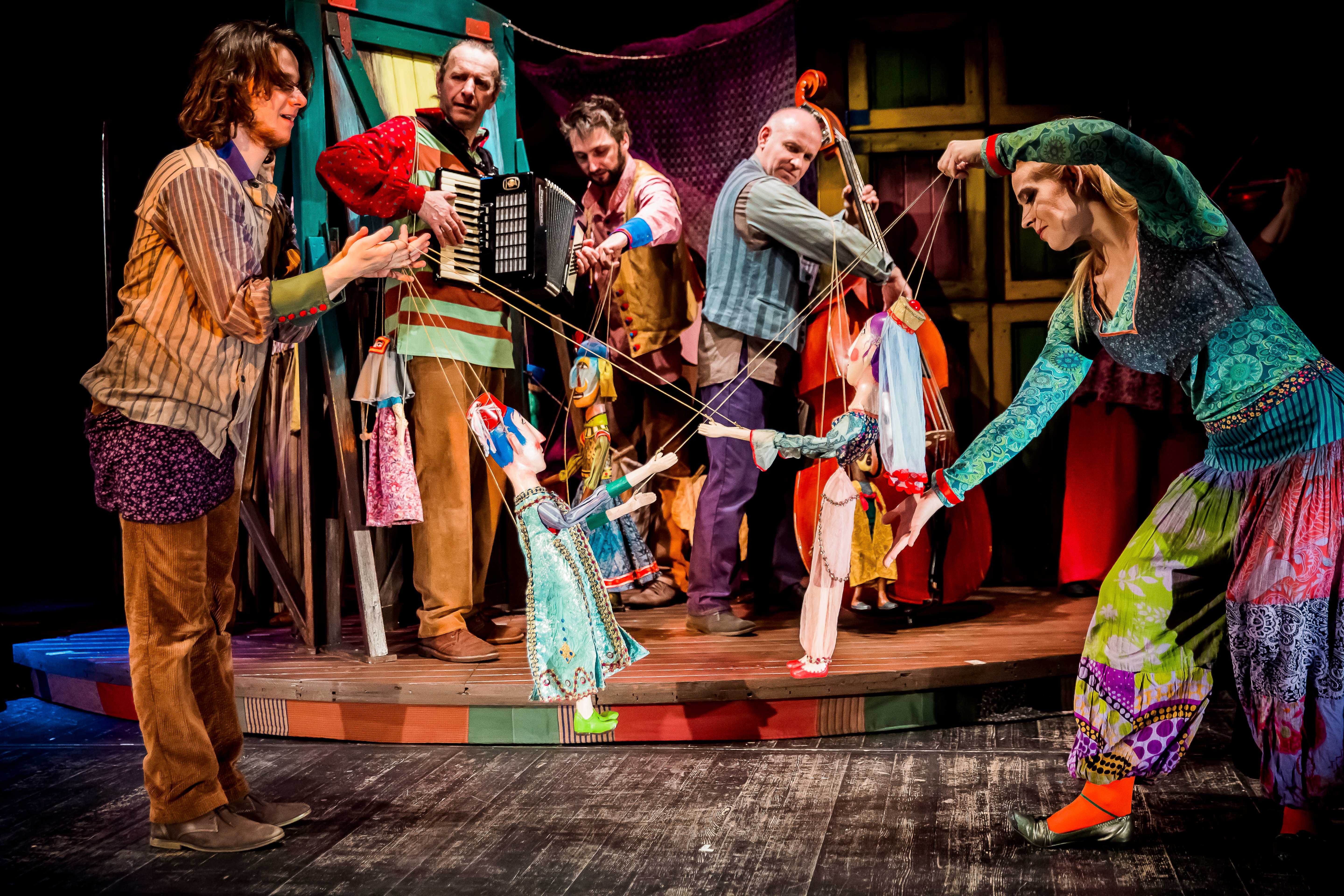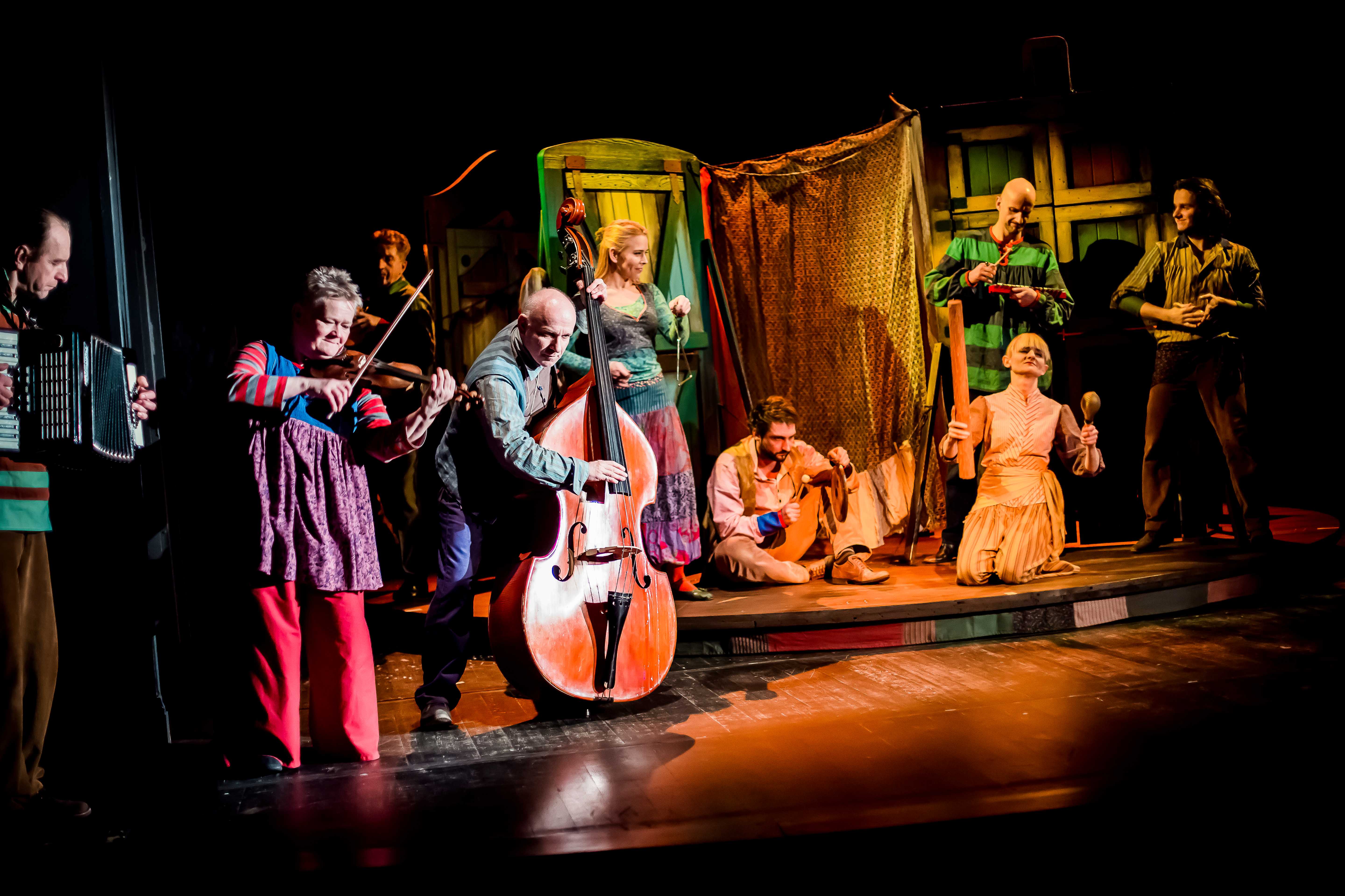 Już sam pomysł stałego wykorzystywania sceny obrotowej, najmłodszym widom zapiera dech w piersiach. Kiedy świat kreowany przez lalkarzy w rzeczywistym planie i z pomocą marionetek wiruje, a na scenie pojawiają się aktorzy z prawdziwymi instrumentami wygrywając coś na kształt klezmerskiego czardasza, pojawia się wrażenie uczestniczenia w tym magicznym świecie. I Wilkowski i reżyser doskonale zdają sobie sprawę, że utrzymać uwagę dzieci jest bardzo trudno, stąd cieszą nawoływania o skupienie wypowiadane ze sceny przez Krzysztofa Pilata.