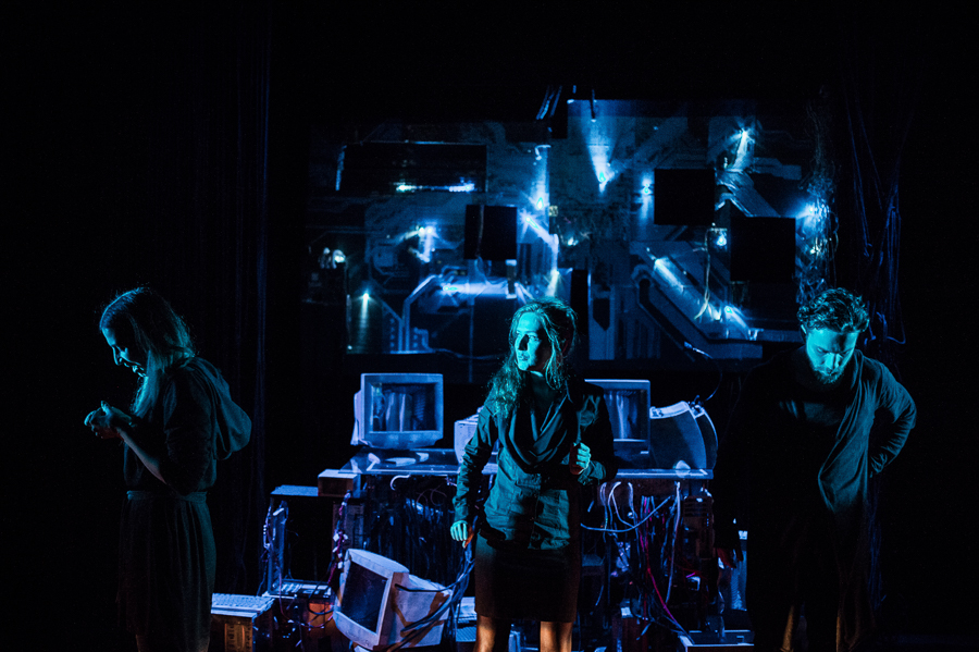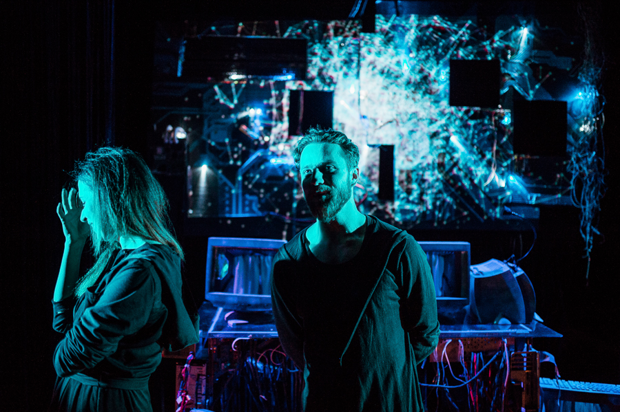 Scenografia spektaklu (Michał Wyszkowski) to specyficzna, kojarząca się z cyberprzestrzenią. I komputery - oraz ich wnętrzności, zwoje kabli, układów scalonych - są tu na pierwszym planie. Cyberklimat podkreśla też muzyka elektroniczna wybitnych kompozytorów i autorów ścieżek dźwiękowych - Alva Noto ("Złoty Glob" za muzykę do filmu "Zjawa") oraz Ryuichi Sakamoto (autor muzyki do m.in. " Ostatniego cesarza", czy "Love is Devil"). Autorem opracowania muzycznego jest Jacek Malinowski, wizualizacji - Krzysztof Kiziewicz.