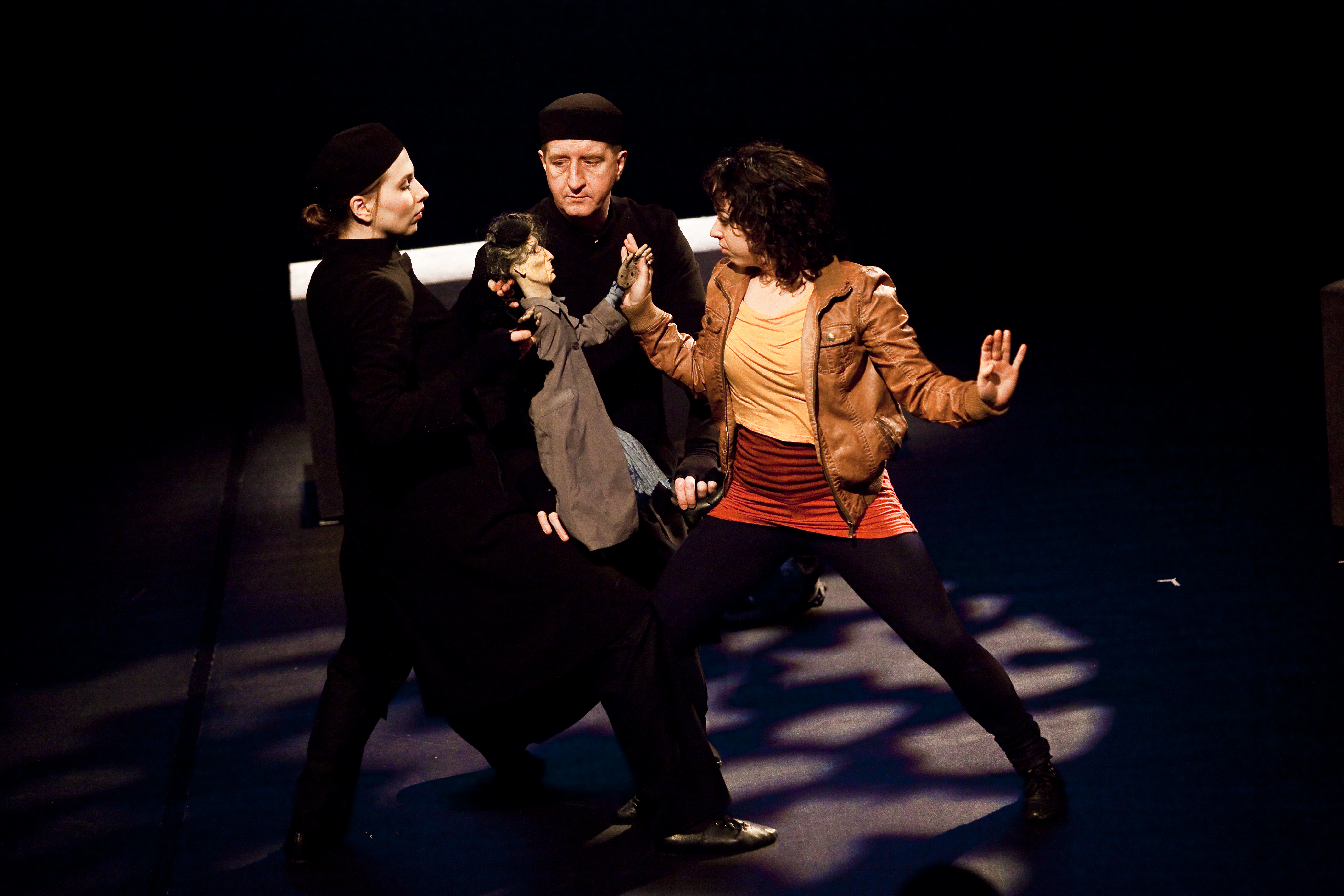 Eric: - Choć tak naprawdę aktor schowany za lalką jest tak samo widoczny, jak aktor nie schowany. Trzeba pozwolić lalce odgrywac scenę, niech lalka pokazuje swoje emocje. My, jako aktorzy, pilnujemy się, by nie zajmować sceny sobą, swoim ciałem. Najważniejsza jest lalka Jak to robimy? Mamy rozmaite treningi, staramy się, aby nasze ciało było w ciszy, trenujemy oddech, nie ruszamy lalki intencjami, chcemy poruszyć ją oddechem . Lalkę ręką przede wszystkim wspieramy, nie kontrolujemy.