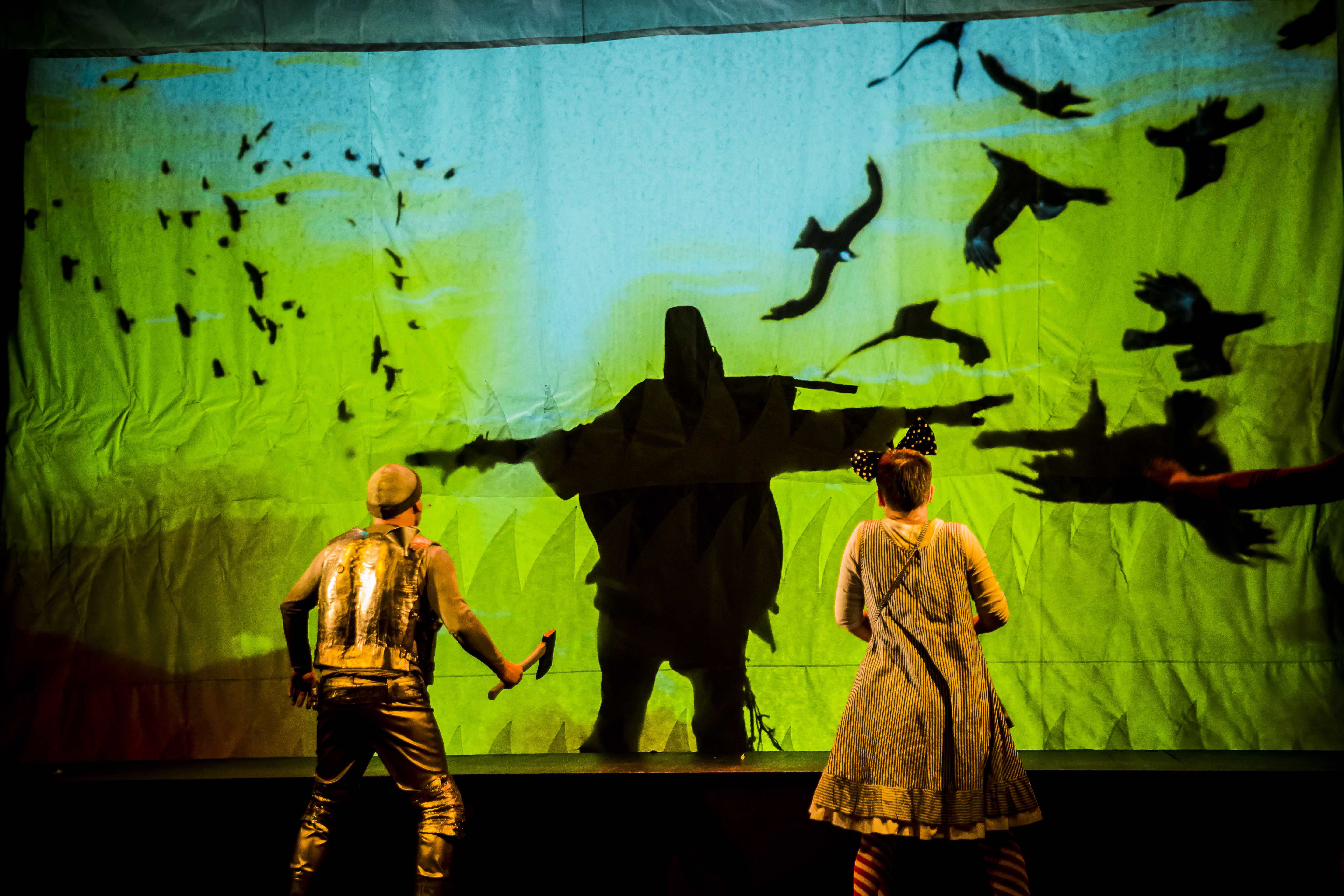 I bardzo multimedialną, co daje złudzenie baśniowości, działa na wyobraźnię. Jak na scenie pokazać huragan, który pewnej nocy przybywa nad Kansas, porywa Dorotkę wraz łóżkiem, niesie daleko od domu i zostawia w pięknej krainie Manczkinów? Bez tego w bajce Bauma ani rusz, huragan pokazać trzeba.