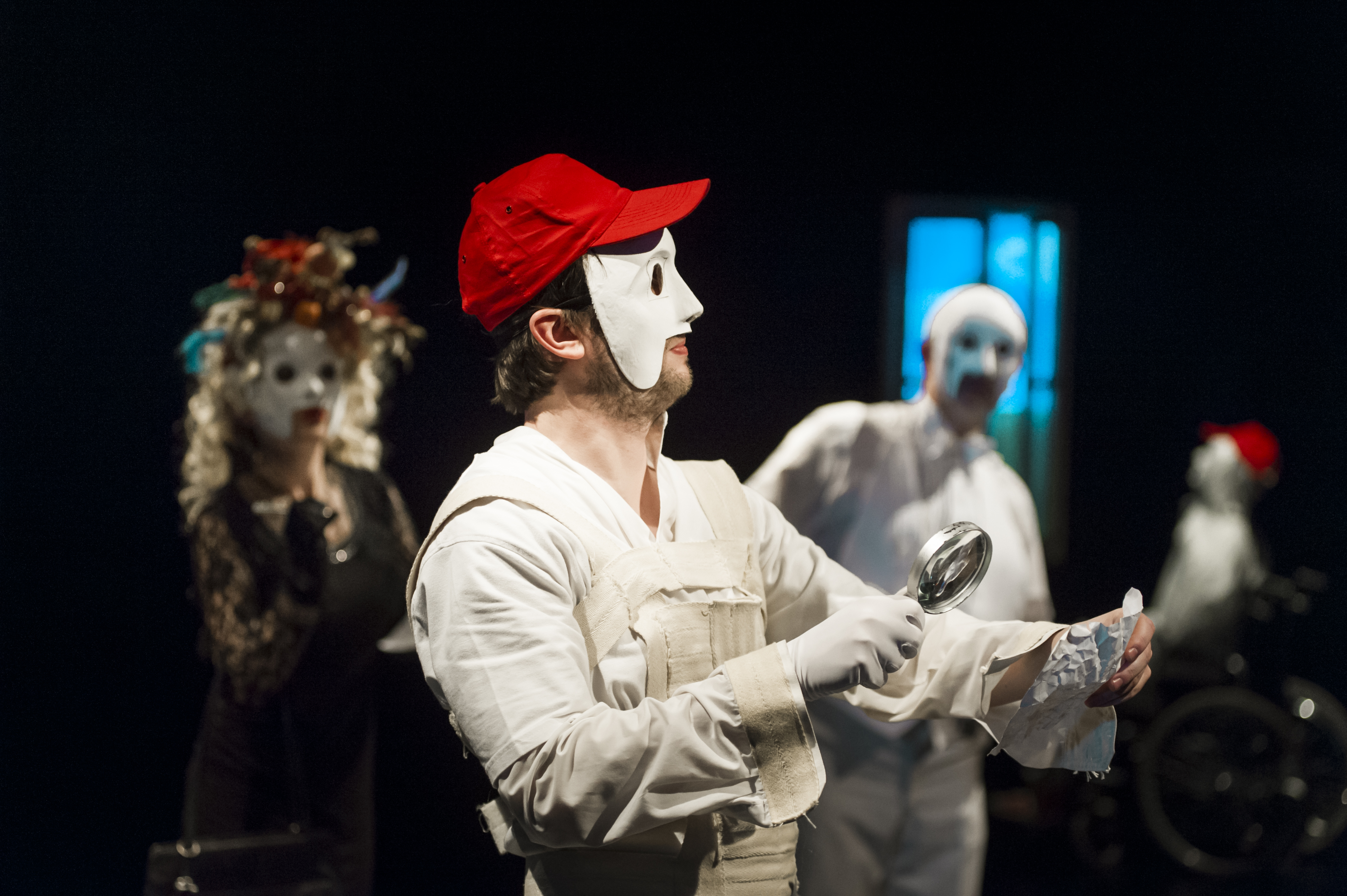 Pierwsza część przedstawienia w Białostockim Teatrze Lalek jest trochę zabawna, trochę groteskowa, po trosze satyryczna. Budzi w widzach nie najmilsze uczucia nie tylko wobec pazernych urzędników ubezpieczeniowych, bezdusznych adwokatów, ale nawet wobec świata medycyny. Widzimy drepczące zabawnie i grupowo pielęgniarki (Magdalena Czajkowska, Łucja Grzeszczyk, Grażyna Kozłowska) i lekarzy służbiście, a bez cienia ludzkich uczuć, współczucia, zrozumienia czy żalu uprawiających swój medyczny proceder (Jacek Dojlidko). Poznajemy usłużnego adwokata (Wiesław Czołpiński) i drapieżnych ubezpieczycieli (Krzysztof Bitdorf i Błażej Piotrowski). Gra precyzyjnie pomyślana przez reżysera i świetnie wykonana przez aktorów jest może chwilami zbyt karykaturalna, ale jasno zarysowuje klimat zdarzeń, pokazując siatkę zależności, w jakie trafia człowiek poddawany transplantacji i ubezpieczeniom na wypadek choroby, kalectwa, niezdolności do pracy.