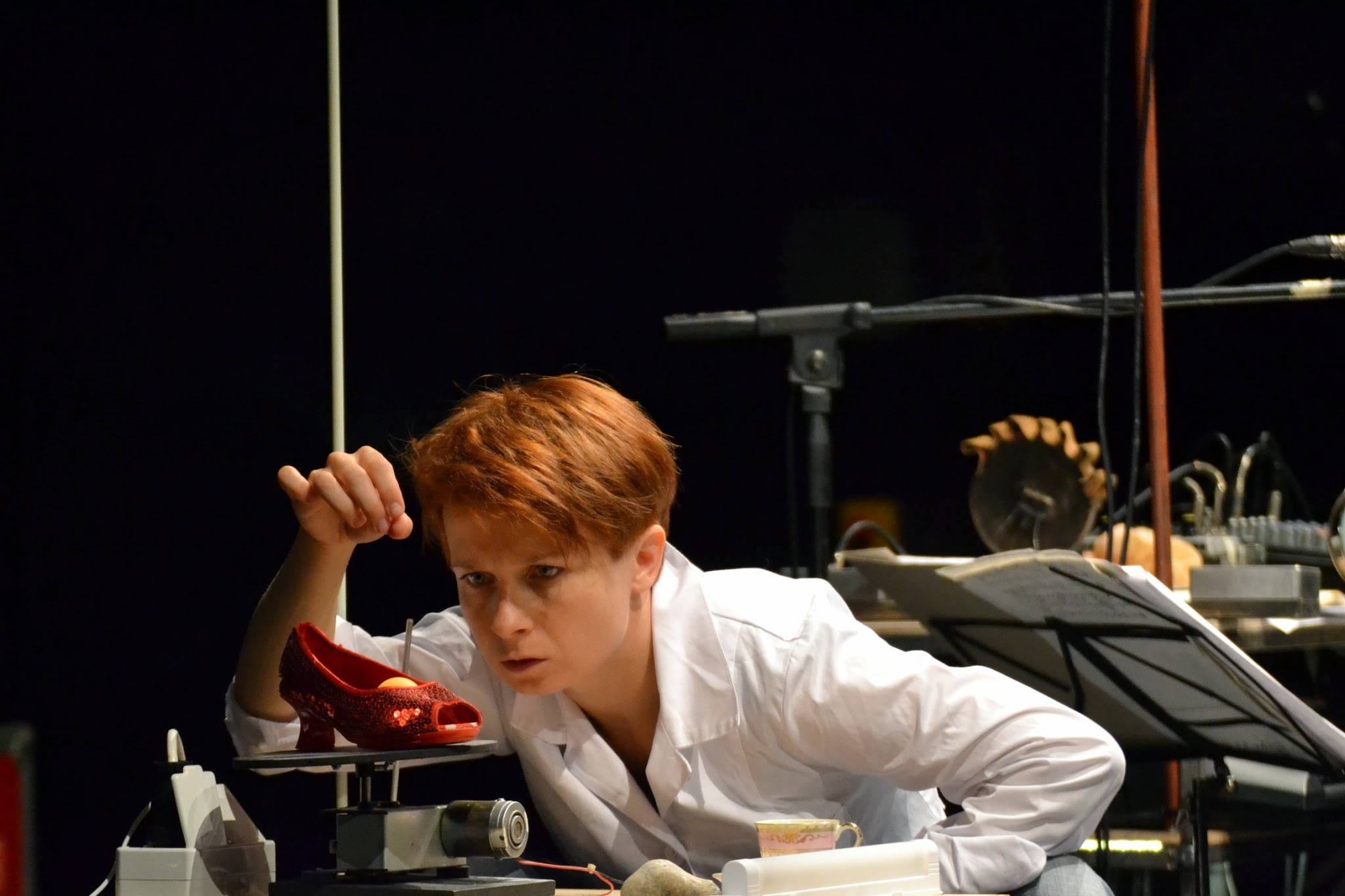 Piosenki śpiewane są na żywo, i to ciekawie, na żywo tworzona jest też muzyka do spektaklu - Charlotte Vogel siedzi wśród aktorów z gitarą, śledzi ich ruchy, na bieżąco ilustruje je muzycznie. Tu wszystko jest ze sobą sprzężone. Ba, muzyką są tu wszystkie dźwięki - stukot łyżeczek do herbaty, szelesty, świsty.