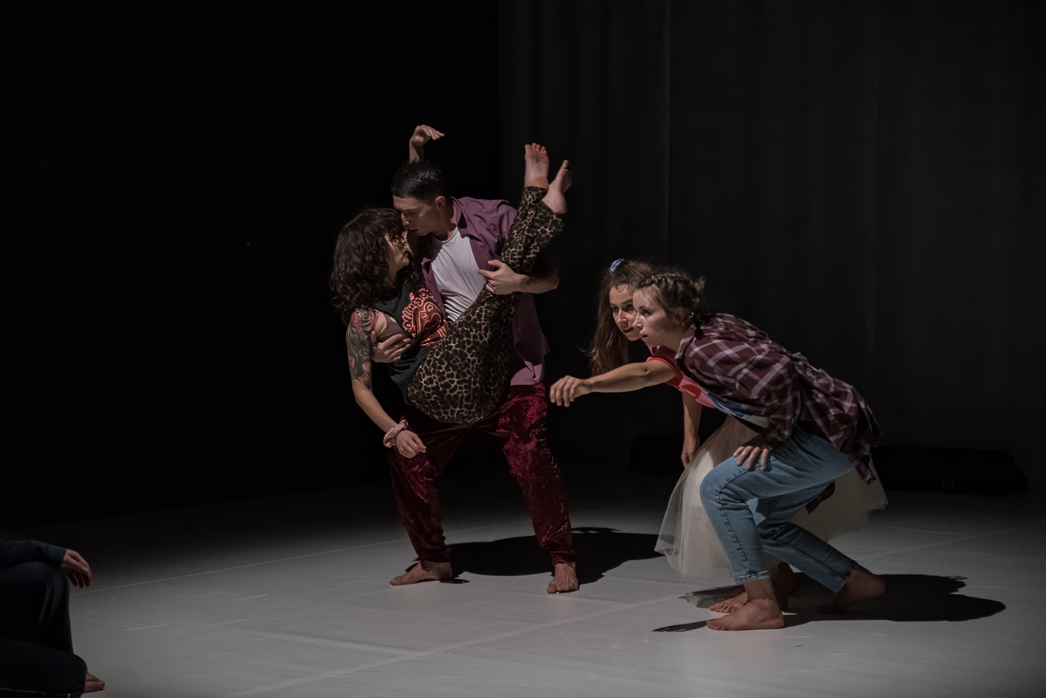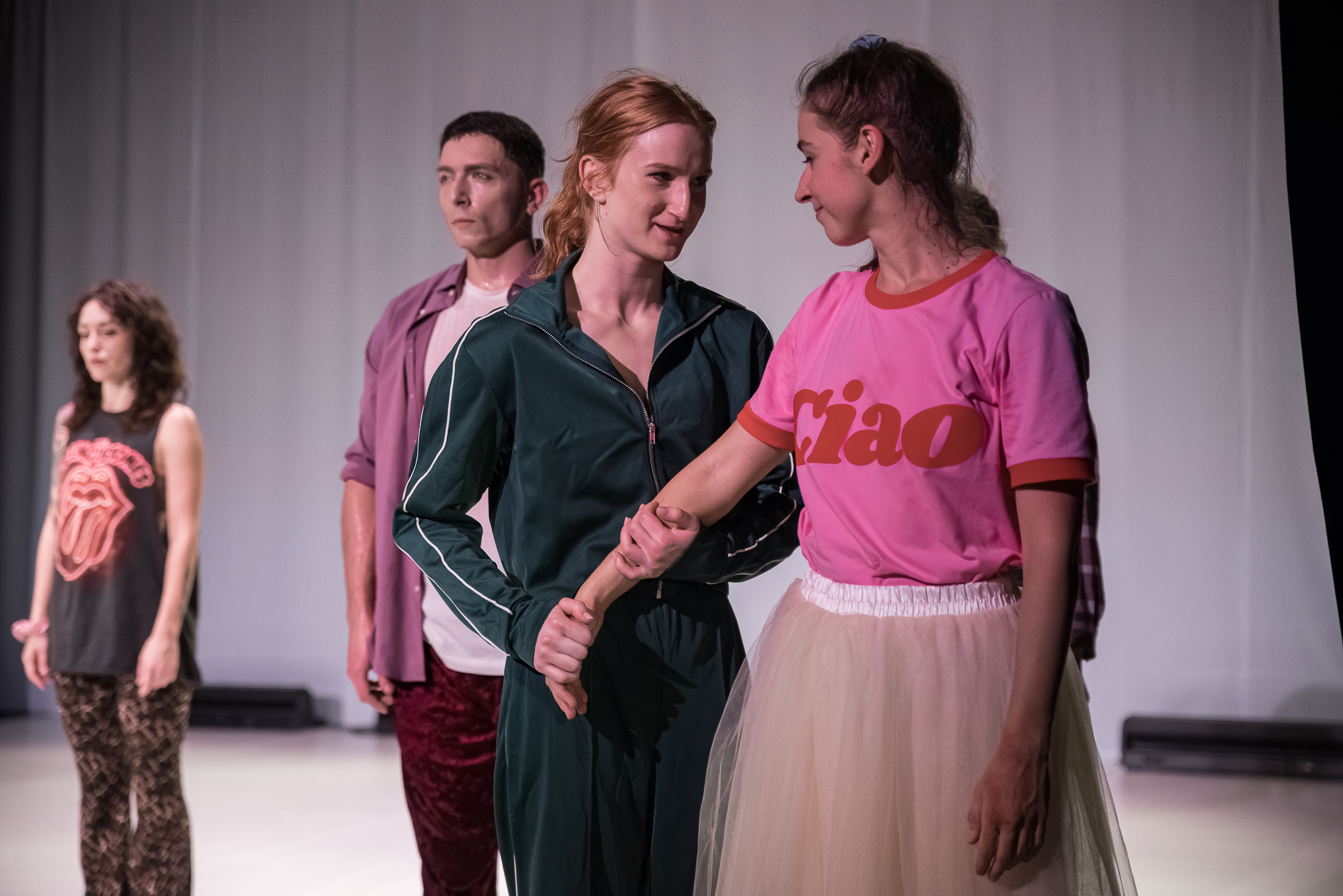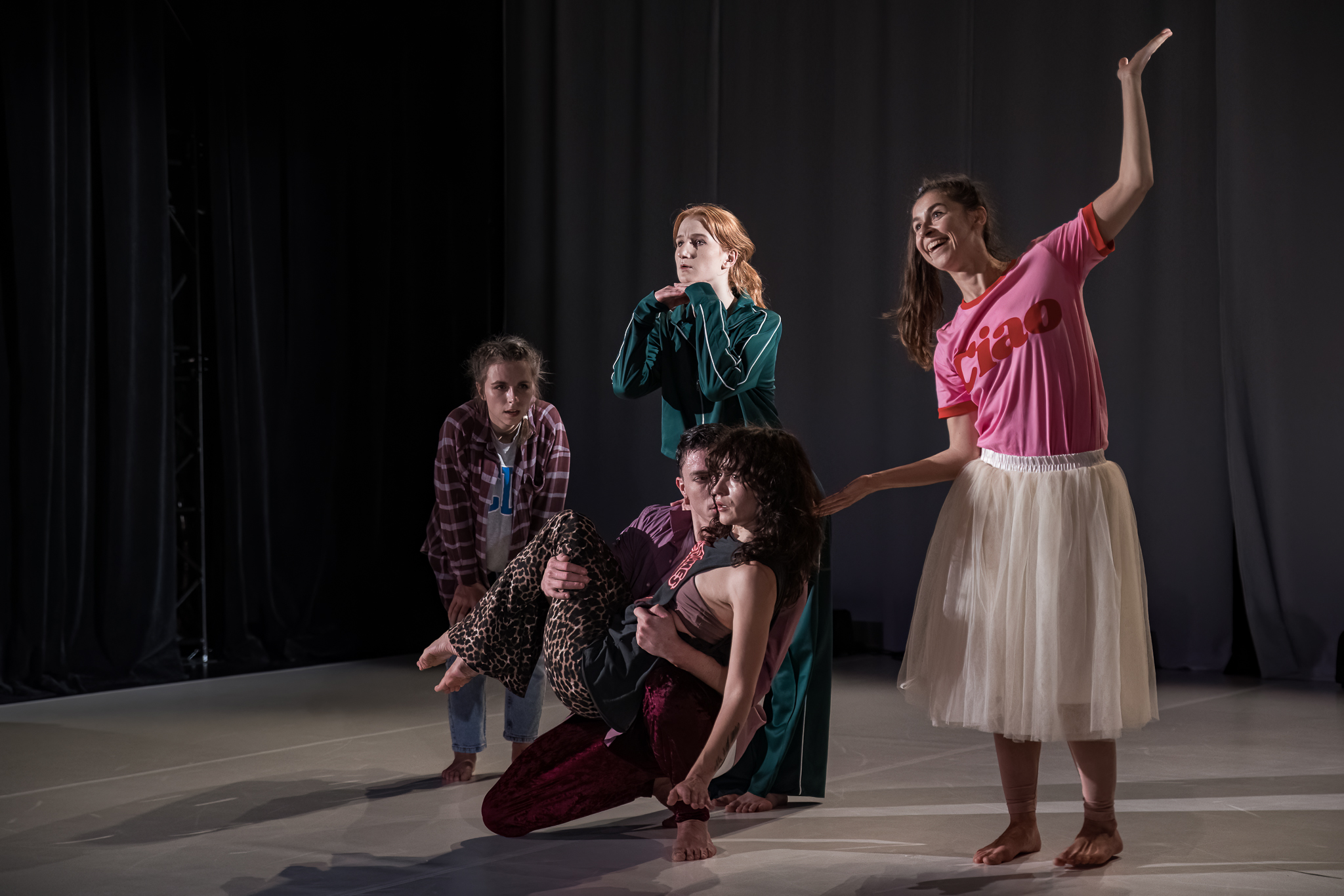 Jednak cała ta otoczka fabularna w moim odczuciu była, a przynajmniej powinna być, kwestią drugorzędną, ponieważ to, co wysuwa się zdecydowanie na pierwszy plan, to kunszt taneczny aktorów oraz wyłaniająca się z ich ruchów refleksja na temat tego, czym właściwie jest tożsamość i jaką rolę pełni w niej ciało. Sytuacja, w której grupka znajomych, tworzących bardzo określoną sieć zależności i relacji, nagle zapomina o wszystkim i musi na nowo zrozumieć, kim są i jakie relacje ich łączą, wydała mi się na tyle ciekawa i dająca pole do popisu i refleksji, że wprowadzenie metanarracyjnej gry okazało się zbędnym naddatkiem. Ta decyzja reżyserów miała swoje mankamenty. Widownia wybierała zakończenie wątku danej postaci poprzez podniesienie ręki. Niestety, części publiczności zdawało się, że wybory były w gruncie rzeczy arbitralne, rozstrzygane przez reżyserkę i aktorkę Idę Bocian, prawdopodobnie na korzyść dramaturgii. Trudno ją za to winić, ponieważ spektakl był ciekawy, dziwi jednak wprowadzanie takiej wariantywności, która nie wpływała znacząco na interpretację przedstawienia. Wpłynęła jednak na mój podziw dla artystów, ponieważ pokazało to ogrom pracy i zdolności aktorów-tancerzy, którzy musieli nauczyć się choreografii do aż sześciu różnych zakończeń i umieć to połączyć w spójną całość. Wydaje się to nierozwiązanym dylematem reżyserii, dla kogo jest to spektakl – dla dorosłych czy młodzieży? Pytanie pozostaje w otwarte, a sens nadbudowy fabularnej niepewny.