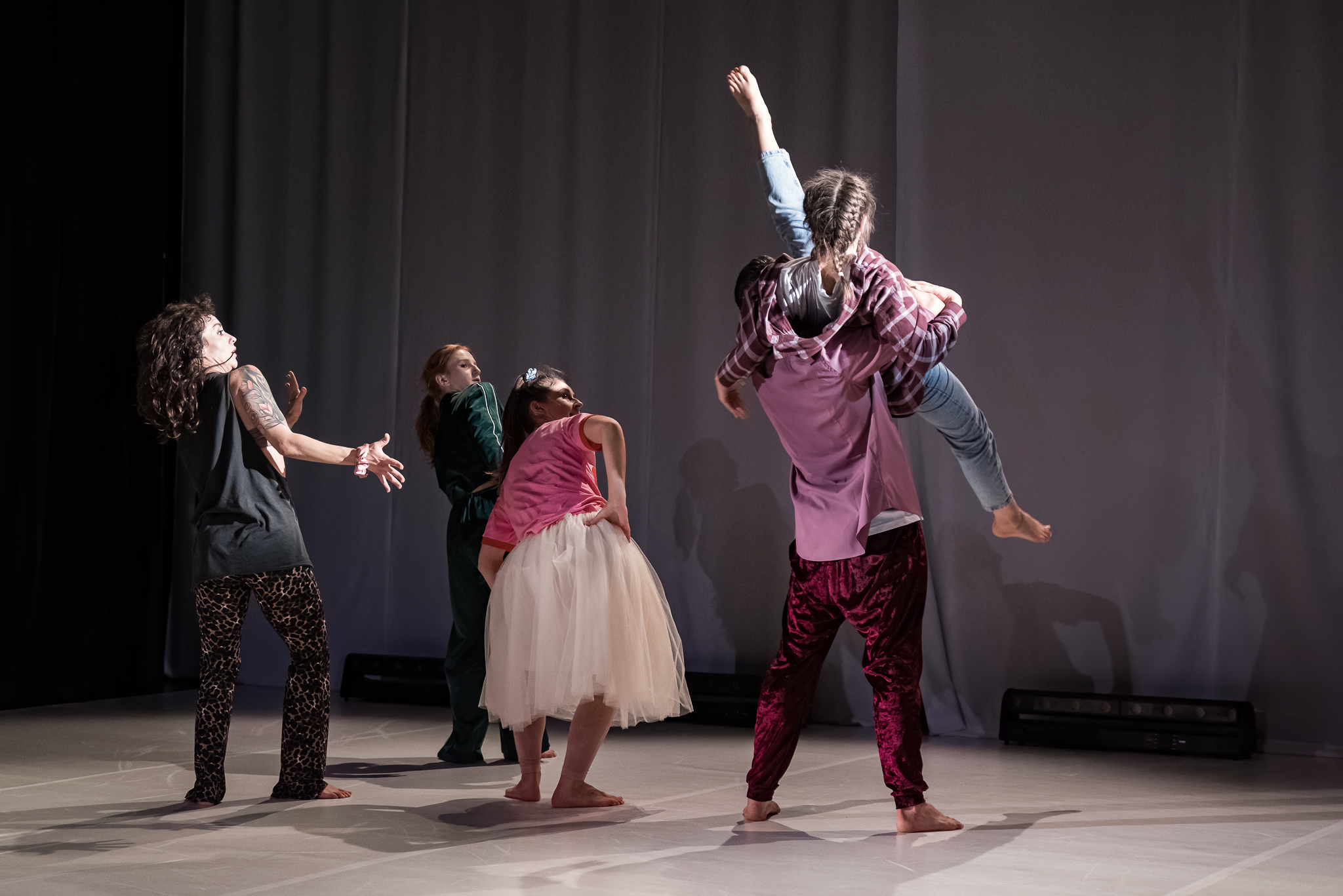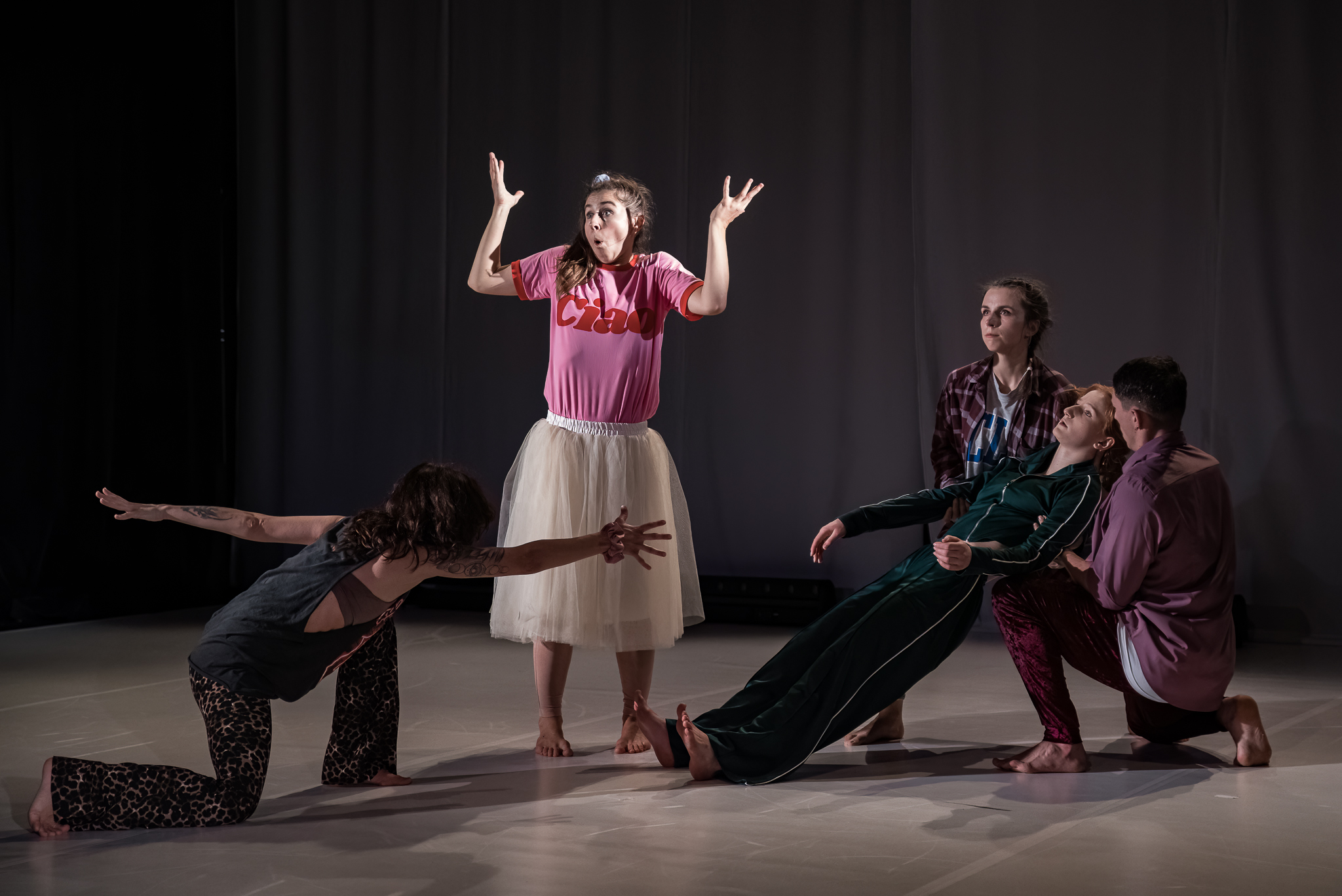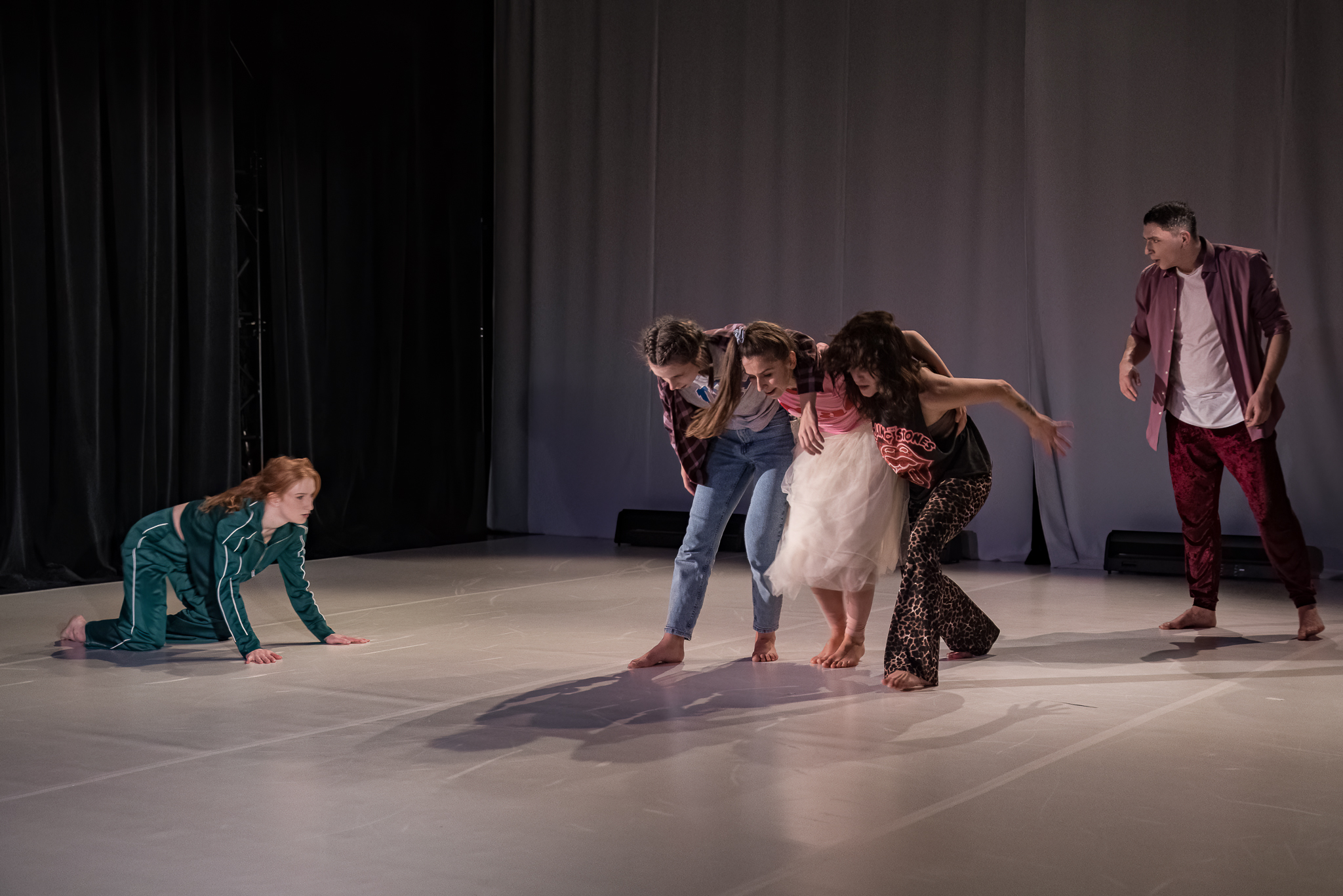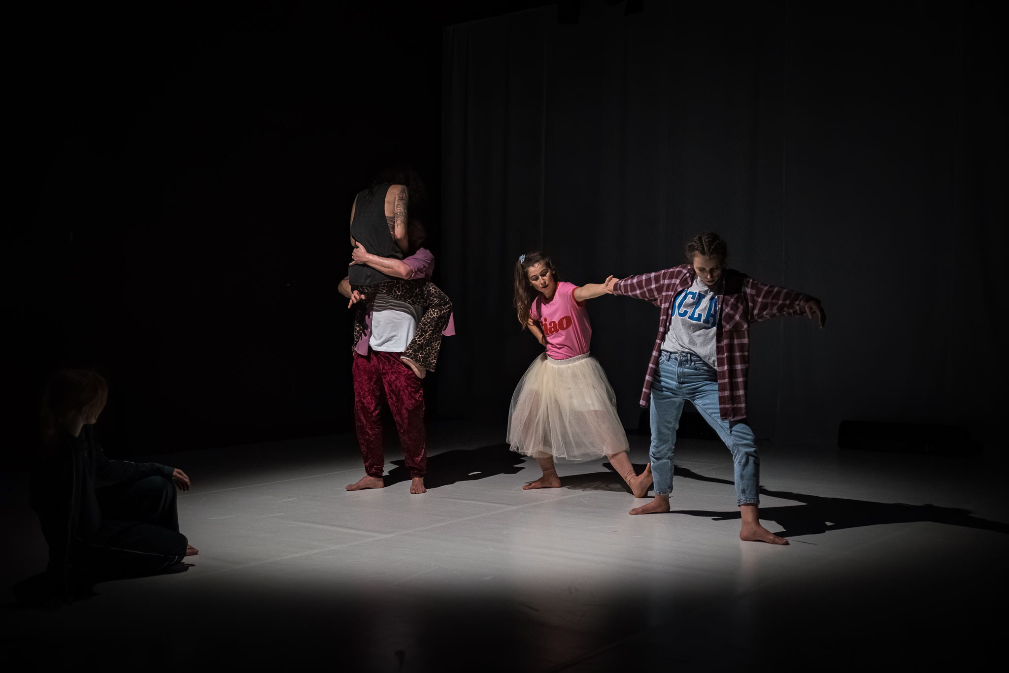 Jednak cała ta otoczka fabularna w moim odczuciu była, a przynajmniej powinna być, kwestią drugorzędną, ponieważ to, co wysuwa się zdecydowanie na pierwszy plan, to kunszt taneczny aktorów oraz wyłaniająca się z ich ruchów refleksja na temat tego, czym właściwie jest tożsamość i jaką rolę pełni w niej ciało. Sytuacja, w której grupka znajomych, tworzących bardzo określoną sieć zależności i relacji, nagle zapomina o wszystkim i musi na nowo zrozumieć, kim są i jakie relacje ich łączą, wydała mi się na tyle ciekawa i dająca pole do popisu i refleksji, że wprowadzenie metanarracyjnej gry okazało się zbędnym naddatkiem. Ta decyzja reżyserów miała swoje mankamenty. Widownia wybierała zakończenie wątku danej postaci poprzez podniesienie ręki. Niestety, części publiczności zdawało się, że wybory były w gruncie rzeczy arbitralne, rozstrzygane przez reżyserkę i aktorkę Idę Bocian, prawdopodobnie na korzyść dramaturgii. Trudno ją za to winić, ponieważ spektakl był ciekawy, dziwi jednak wprowadzanie takiej wariantywności, która nie wpływała znacząco na interpretację przedstawienia. Wpłynęła jednak na mój podziw dla artystów, ponieważ pokazało to ogrom pracy i zdolności aktorów-tancerzy, którzy musieli nauczyć się choreografii do aż sześciu różnych zakończeń i umieć to połączyć w spójną całość. Wydaje się to nierozwiązanym dylematem reżyserii, dla kogo jest to spektakl – dla dorosłych czy młodzieży? Pytanie pozostaje w otwarte, a sens nadbudowy fabularnej niepewny.