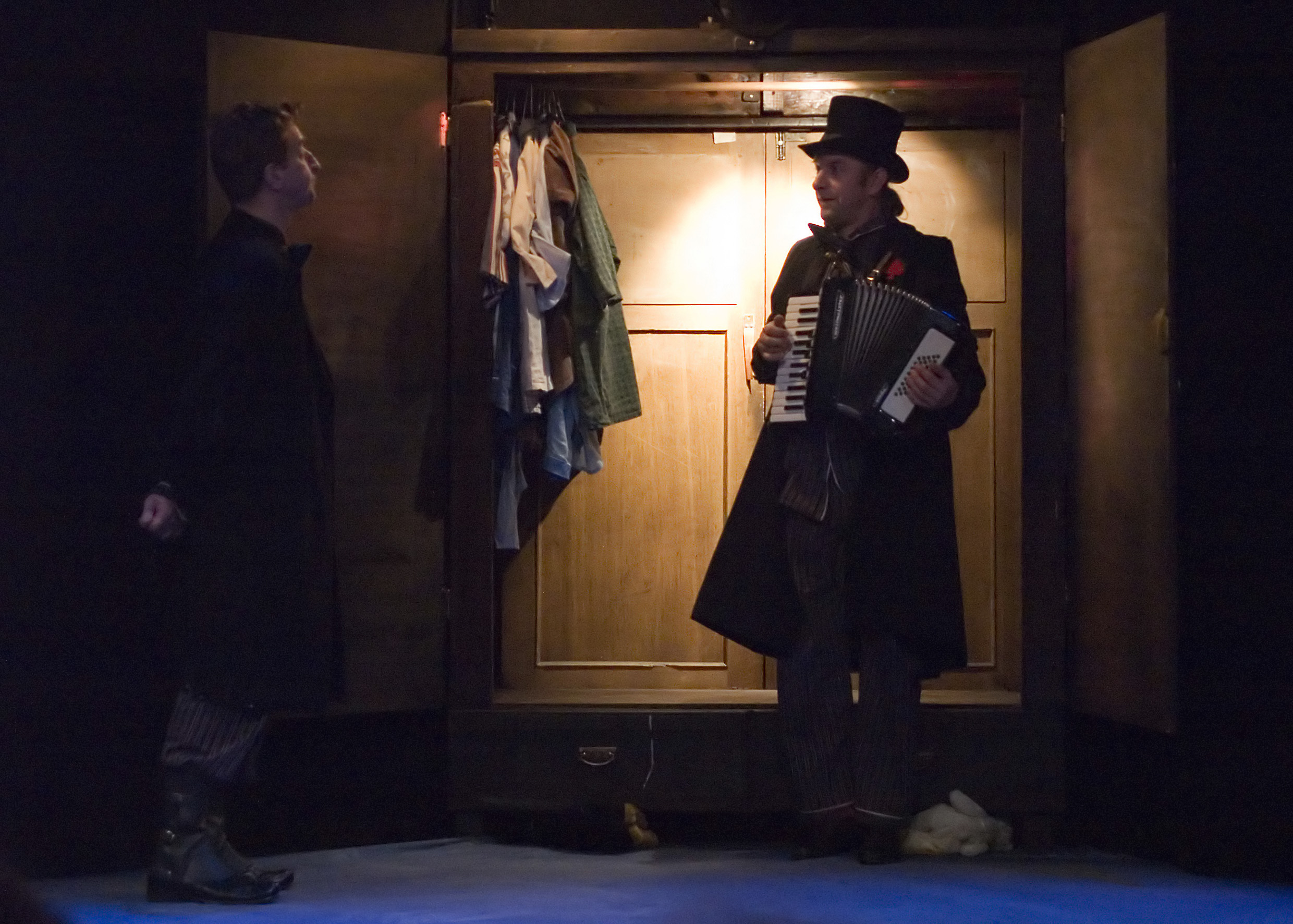 Jest ciemno, ciasno, tłumnie, ale miło. Ktoś siedzi na szafie, ktoś inny się wygłupia. Otwiera się szafa pełna nocnych stroi… ja też dostaję swój – bordowy, jedwabny, naprawdę śliczny. Wszyscy je ubieramy. Małe, duże, w króliczki i kratki… a jakiś pan o bardzo głębokim głosie wspomina coś o Thomasie Snoucie, który kolekcjonuje noce, ale zaraz zaraz przecież to jest Thomas Snout, odklik odklik i… przechodzimy przez drzwi szafy do magicznej przestrzeni nocy… ja siadam na księżycu, razem z innymi dziećmi.