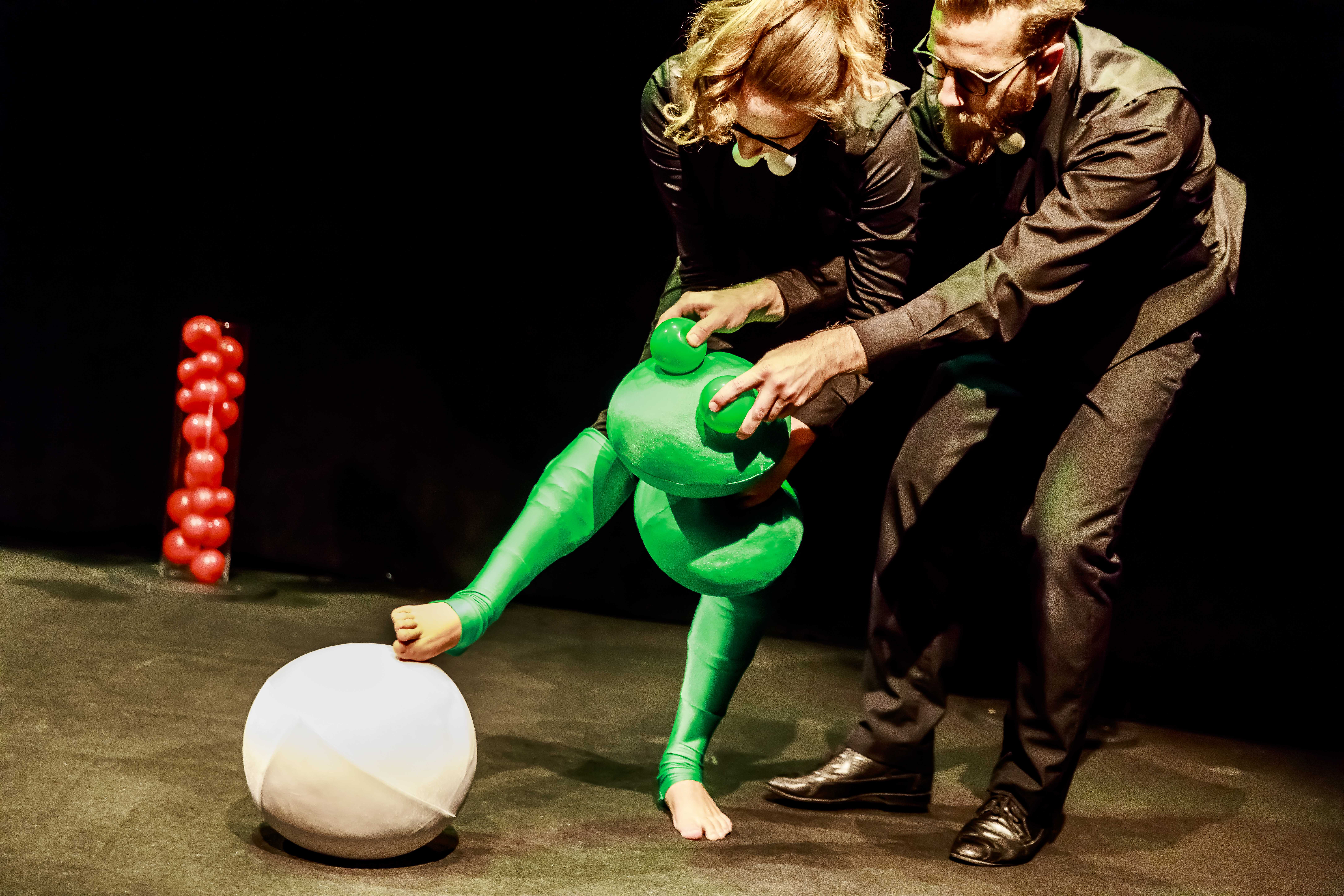 Zielone kulki stają się robakami przypominającymi gąsienice, z tych większych aktorzy tworzą żabę. "Co oni robią w tym teatrze?" - nie mogą powstrzymać emocji najmłodsi widzowie.