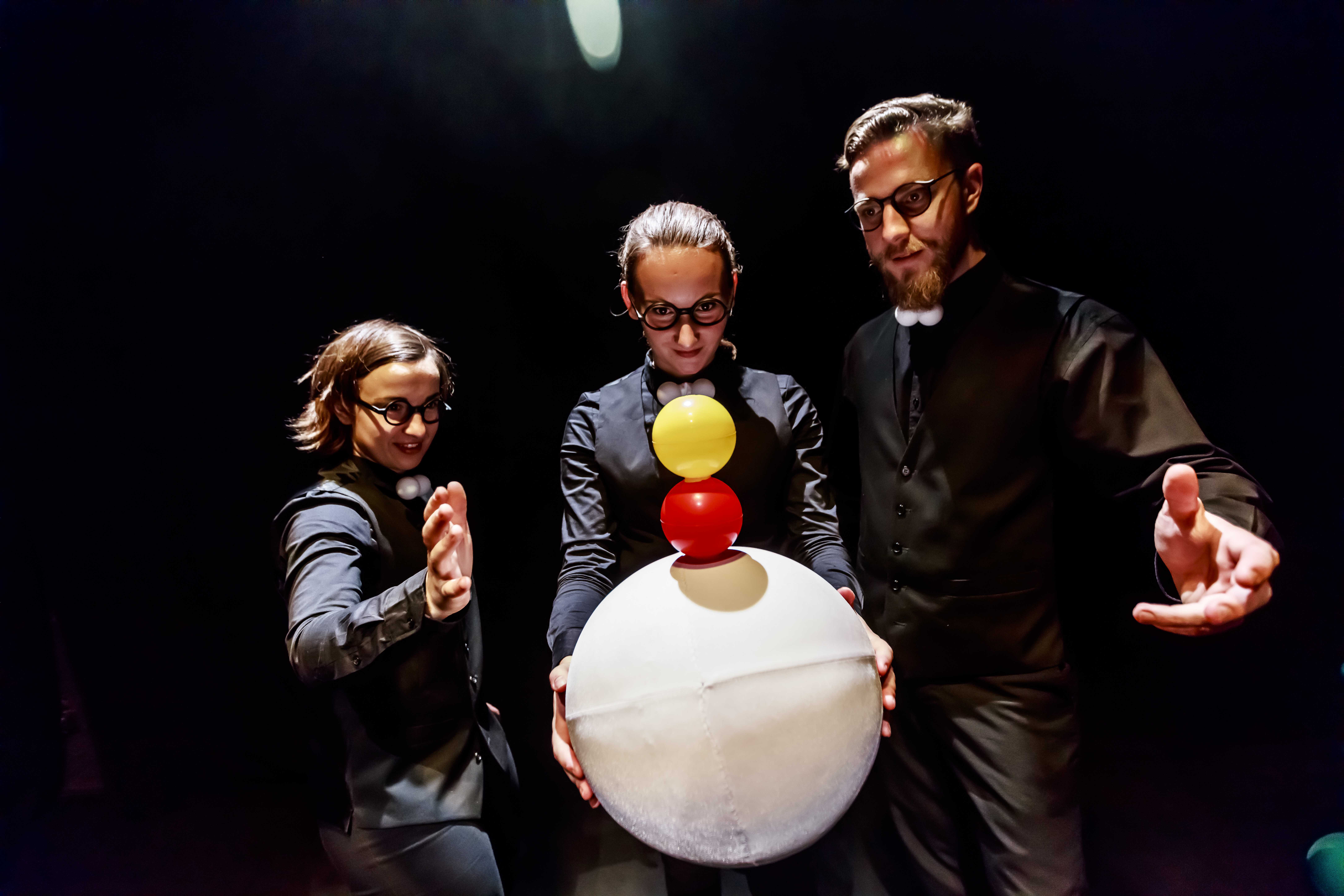 Co można z nich stworzyć? Aktorów ogranicza jedynie wyobraźnia. Mamy więc białą kulkę, która na swej drodze napotyka kulki w innych kolorach. Aktorzy są sprawnymi animatorami, wszystkiemu towarzyszy muzyka.