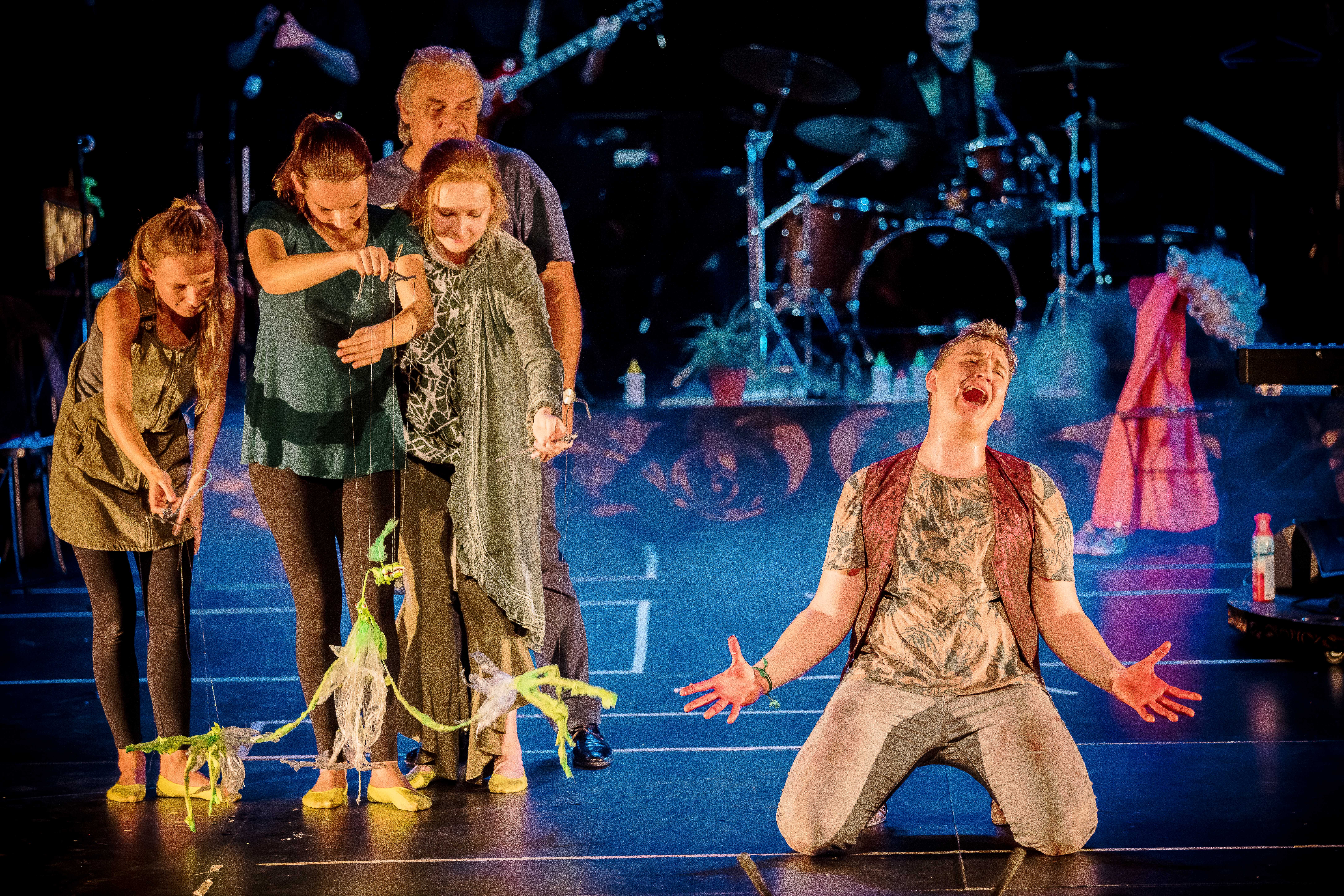 Trzy aktorki nie pozostają za Błażejem Piotrowskim w tyle. Magdalena Dąbrowska wciela się w rolę uległej Audrey, która marzy o "małym domku". Jej akompaniament na klawiszu jest dodatkowym elementem do granej na żywo przez zespół muzyki. Z kolei Kamila Wróbel-Malec z precyzją animuje morderczą roślinę.