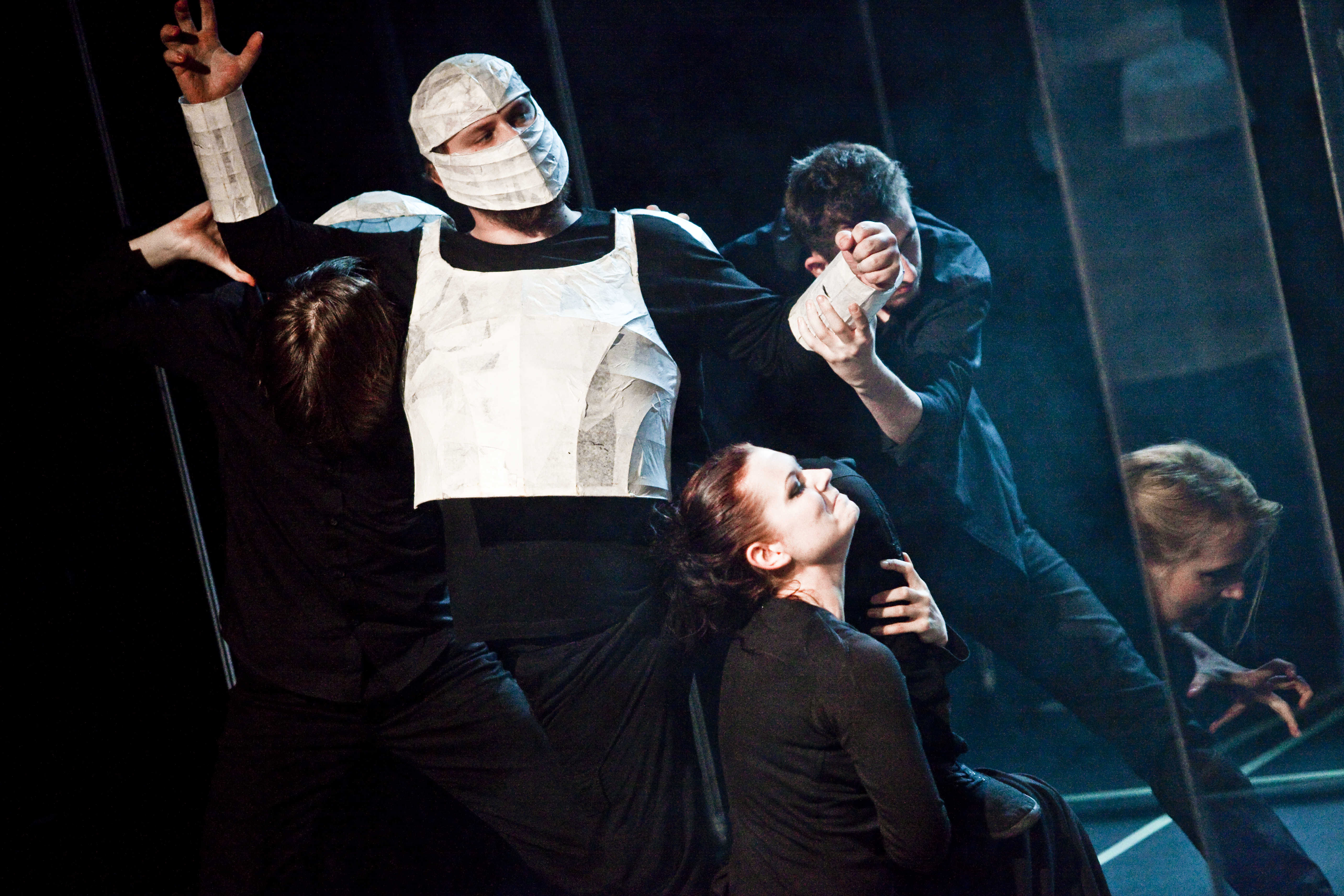 Aktorzy Białostockiego Teatru Lalek (wspierani przez studentów Akademii Teatralnej do całego arsenału dotychczasowych umiejętności) musieli dodać jeszcze pantomimiczne, do czego zaprzęgła ich rosyjska ekipa pod wodzą reżysera Rusłana Kudaszowa. Niektórzy z mimicznych zmagań wyszli obronną ręką, inni prawie polegli, ale całość i tak wypada bardzo interesująco.