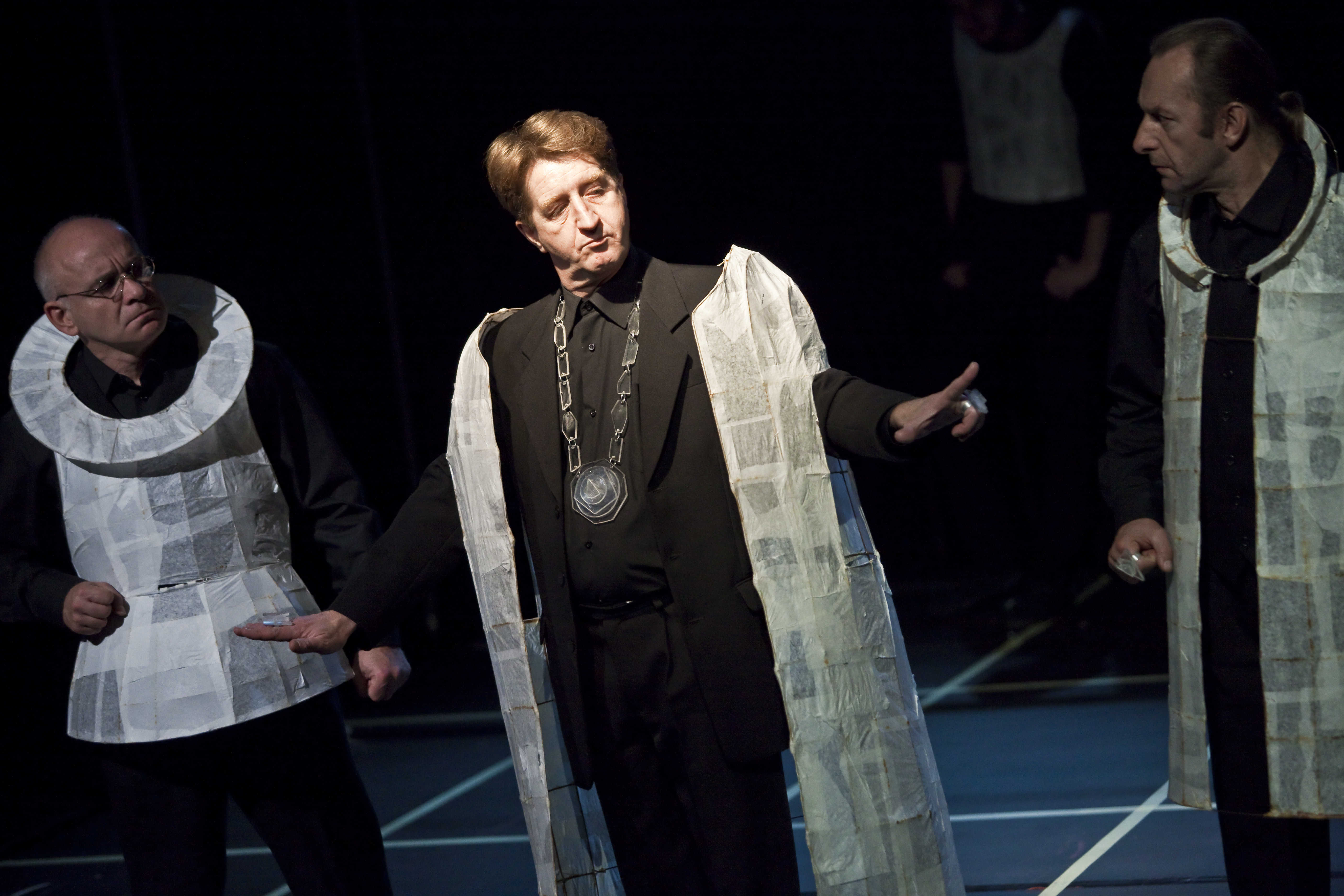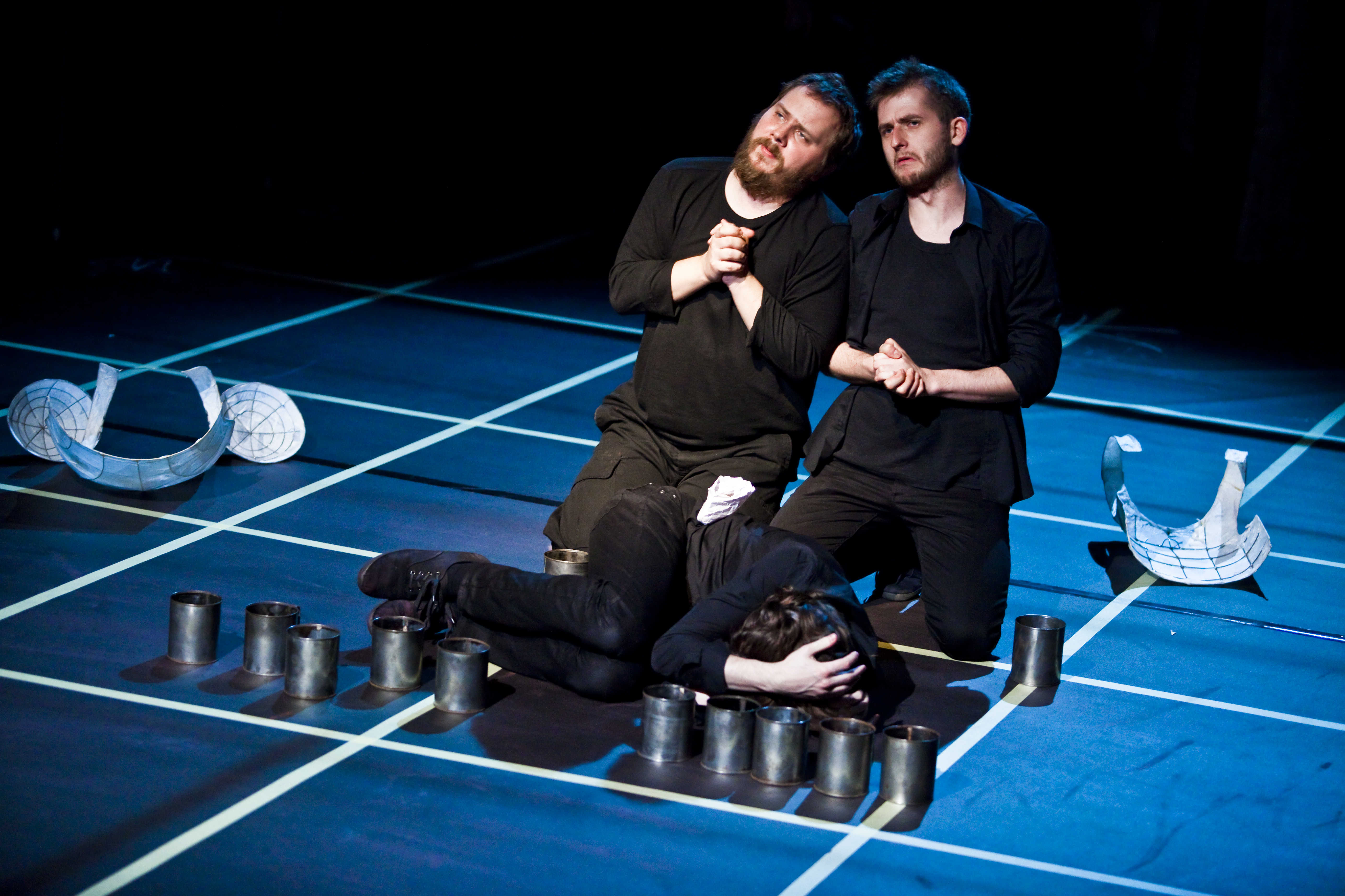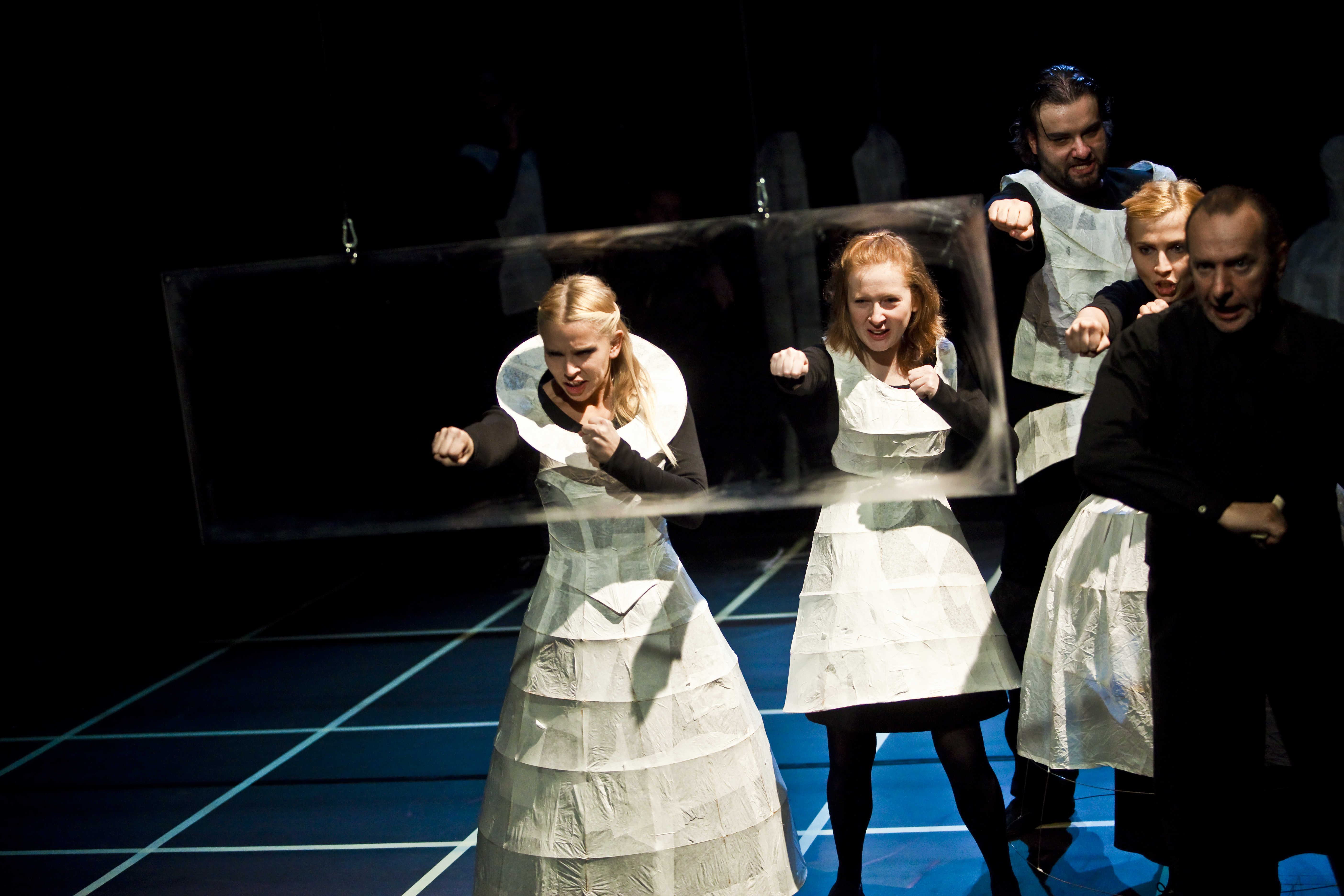 Po trosze wreszcie to pantomimiczna opowieść, bo taką musi się stać, jeśli w spektaklu pada ledwie kilka słów, oderwanych, nie tworzących żadnego zdania. To raczej hasła - wykrzyczane wojowniczo, zagrzewające do walki, ale też wypowiedziane lirycznie słowa, pokazujące rodzące się uczucie. W efekcie przedstawienie rozegrane jest gestem, światłem, kontrastem, muzyką, wyrazistą scenografią.