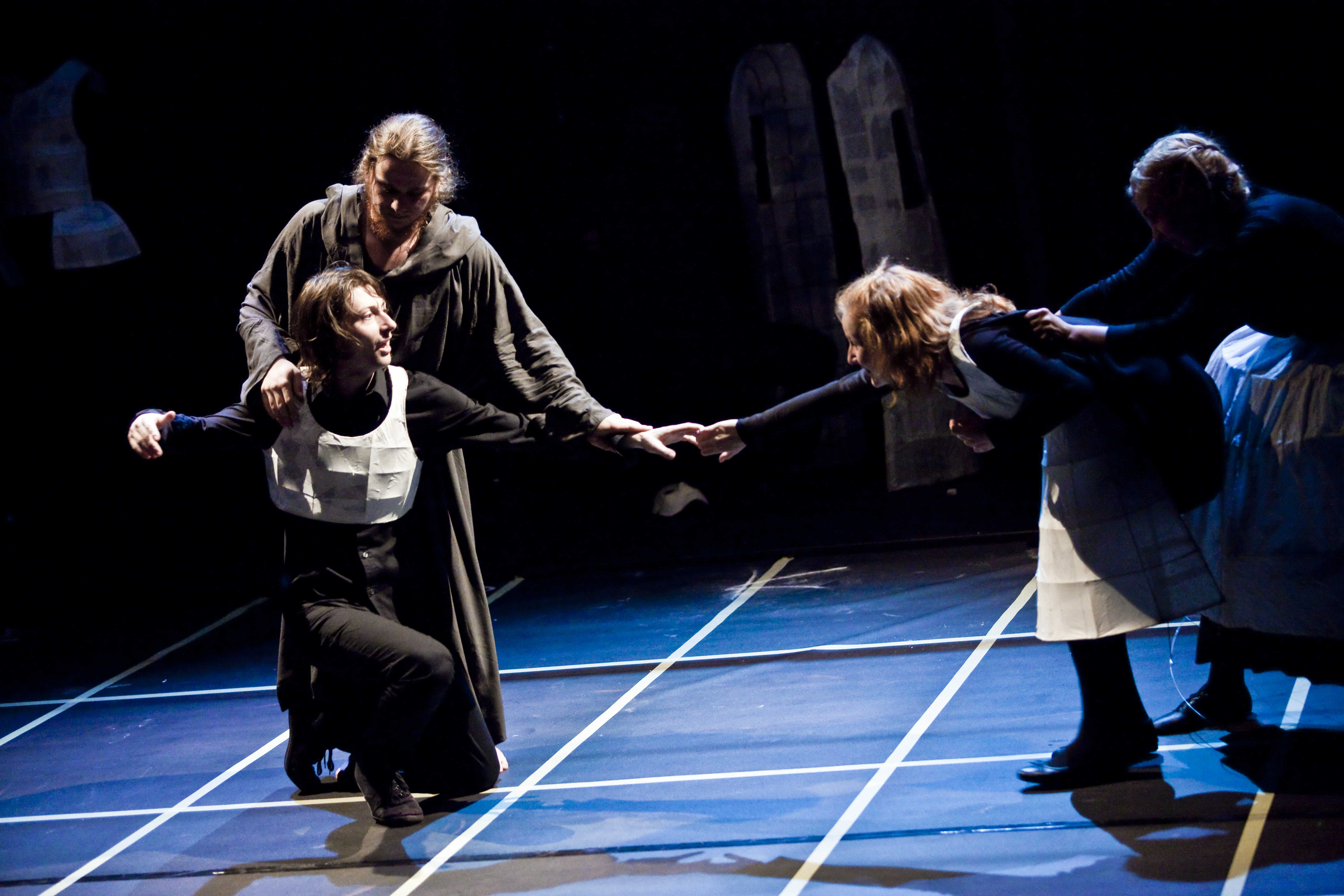Są tu sceny z teatru lalkowego i cieni. Parę prostych, ciekawych pomysłów (słynne balkony Werony to po prostu drabiny). Sceny pełne zmysłowości (taniec ówczesnej łamaczki męskich serc na balu) i rodem z danse macabre (maski na twarzach, upiorna kostucha w tle). I choć pod koniec spektaklu wytraca on tempo, serwując też groteski aż nadmiar - koniecznie trzeba go zobaczyć.