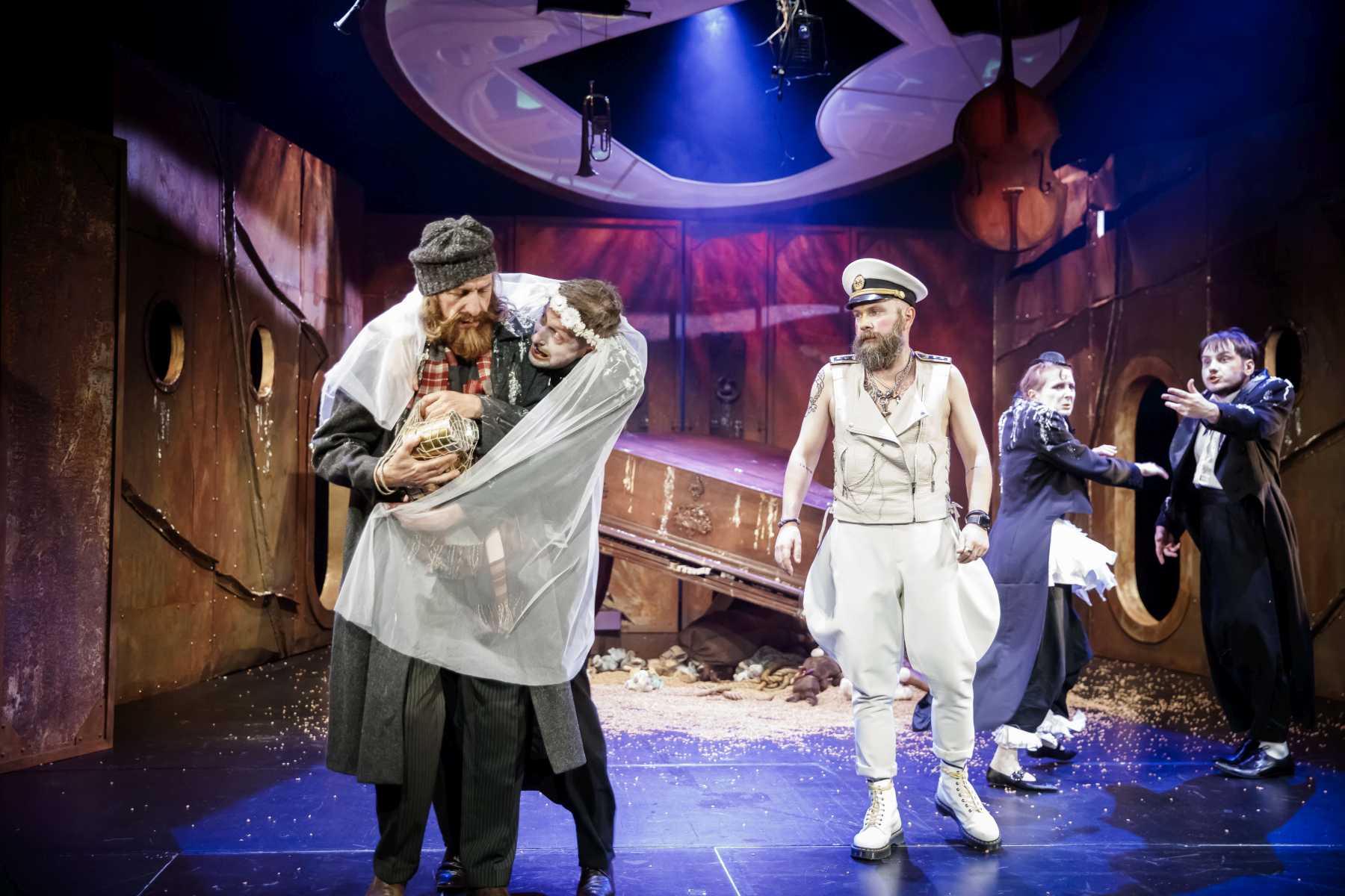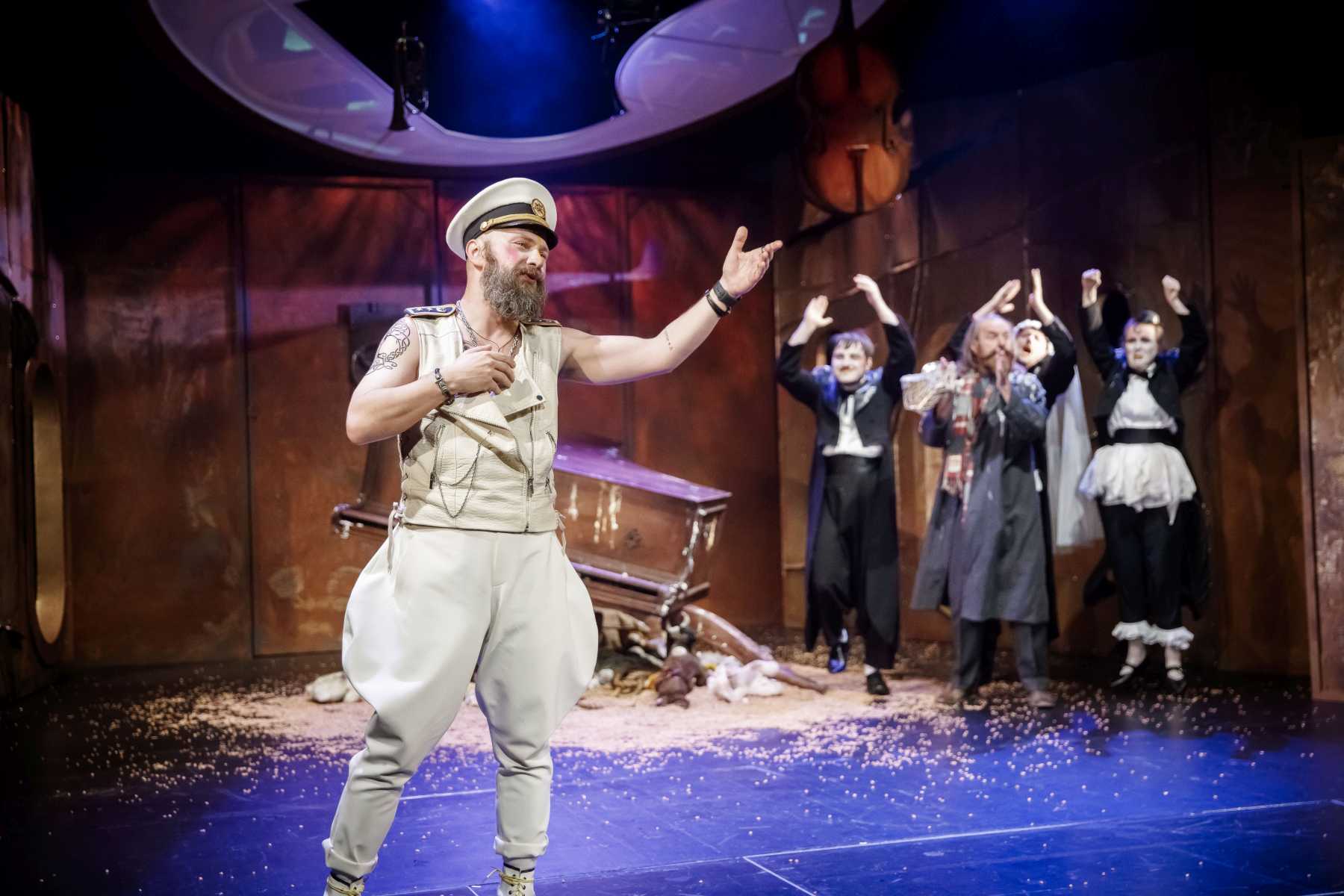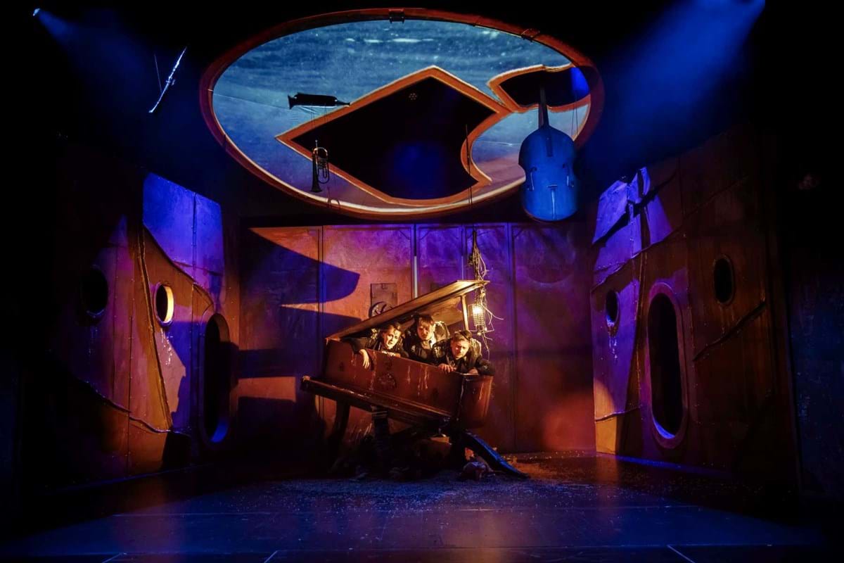 Jak w teatrze pokazać potop i samą Arkę? Poniekąd siedzą w niej też widzowie. Świetna scenografia Pavla Hubički wprowadza nad widownią świetliki i bulaje - rodzaj okienek okrętowych, przez które - w wizualizacjach Sebastiana Łukaszuka - widać na przemian: spienione fale, płynącą krę czy okrętowe mechanizmy.