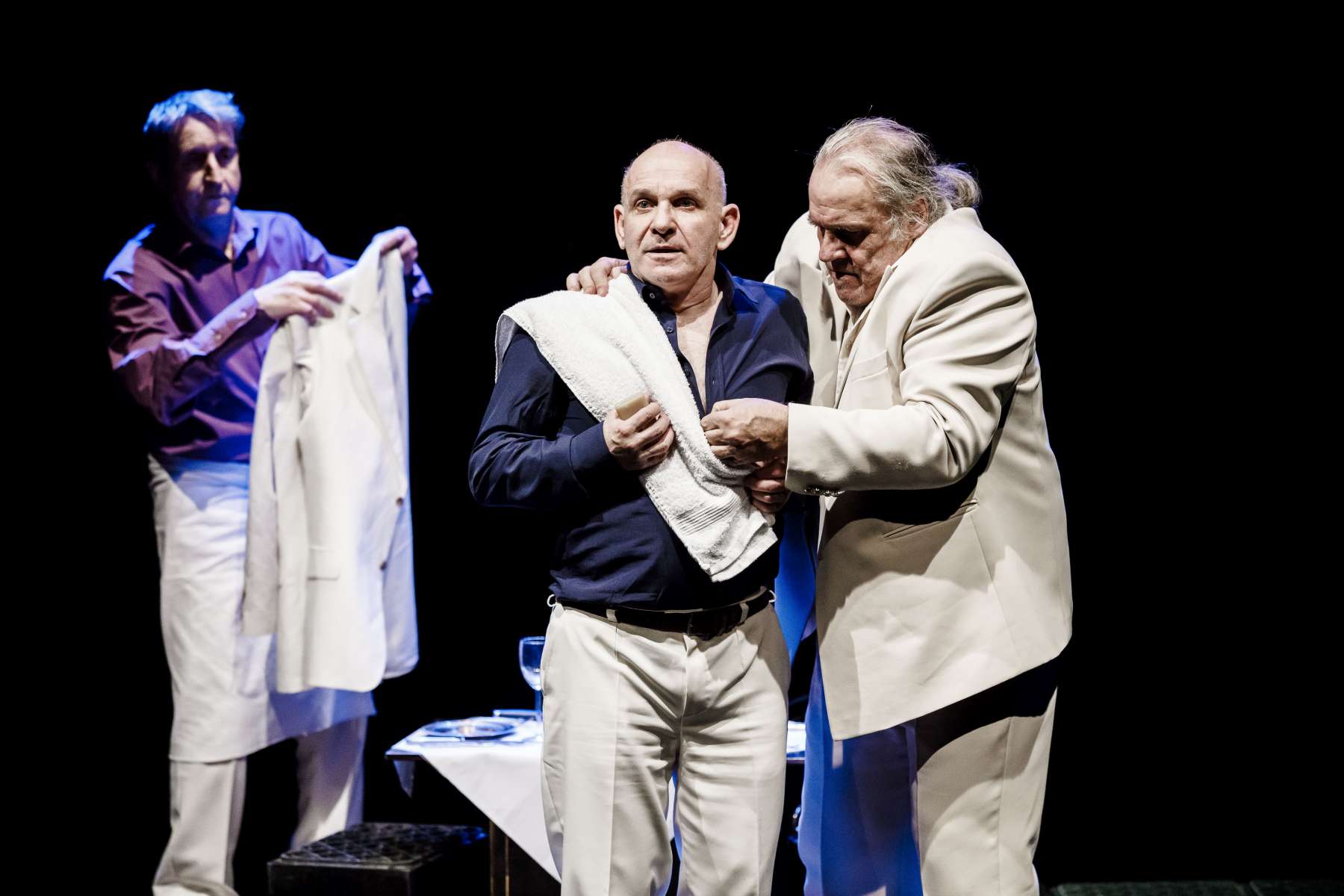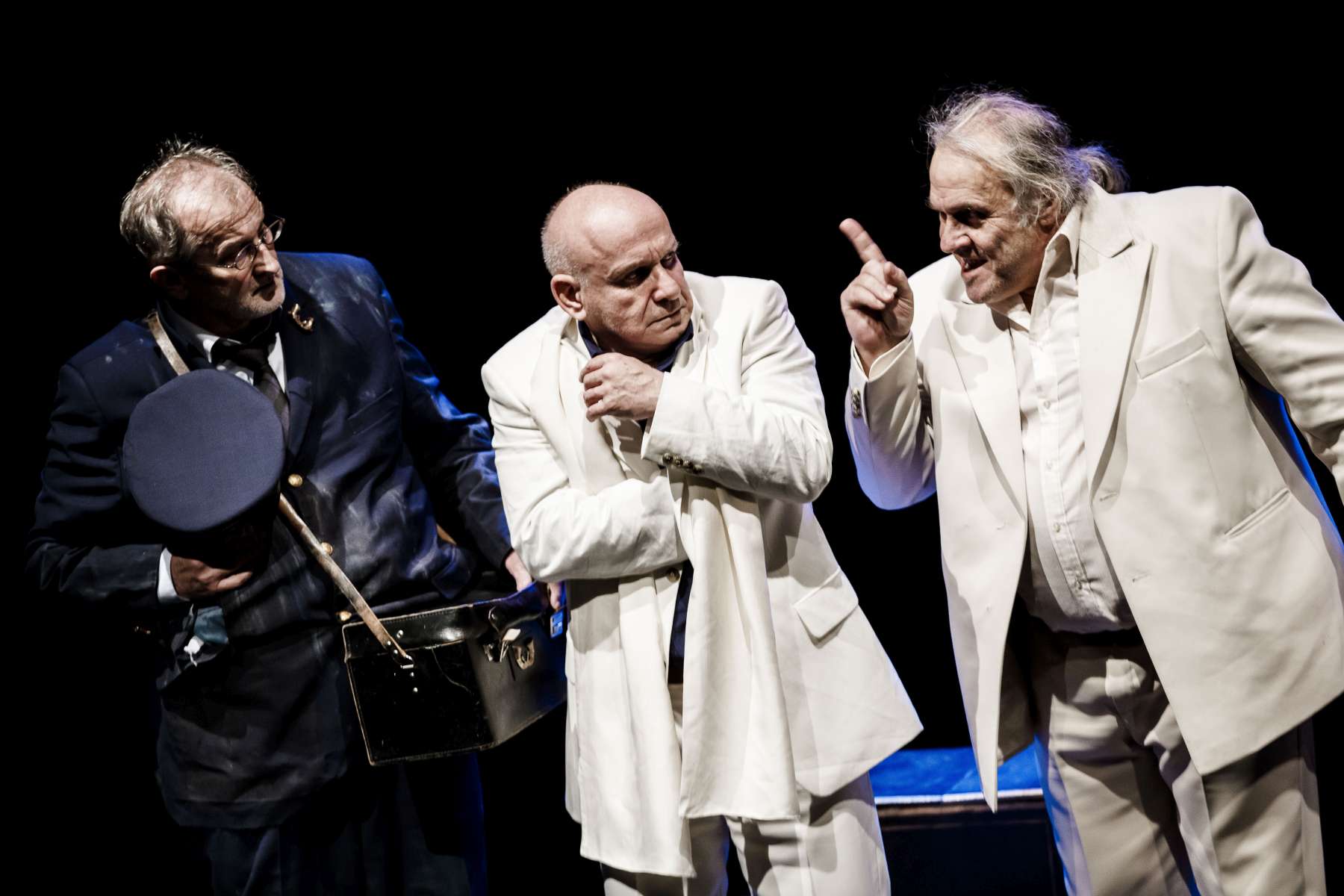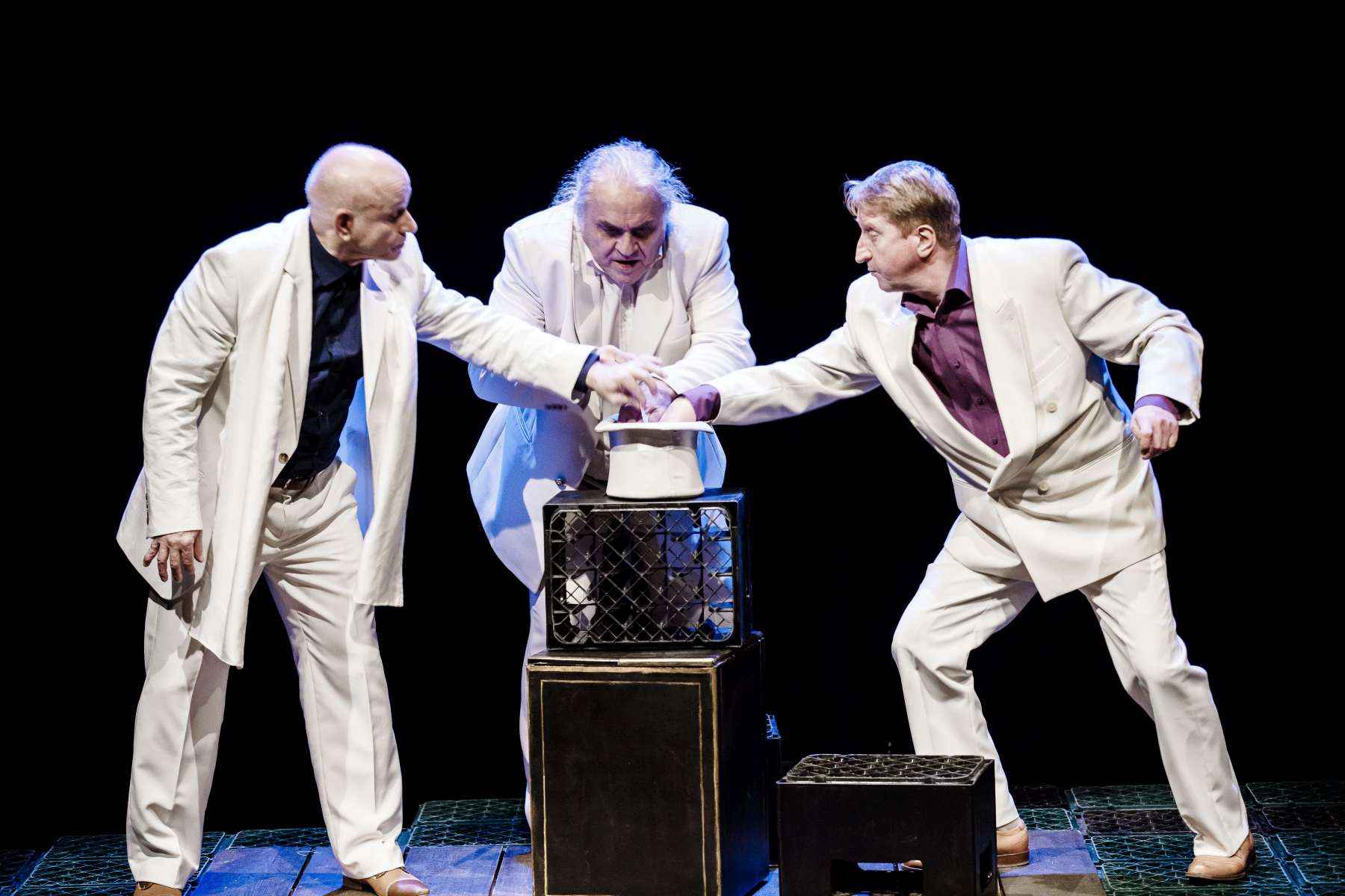 Spektakl reżyseruje Jacek Malinowski, w role trzech dryfujących rozbitków wcielają się: Ryszard Doliński (Gruby), Paweł S. Szymański (Mały) i Zbigniew Litwińczuk (Średni), a towarzyszą im przez chwilę też Krzysztof Pilat (Lokaj) i na zmianę Wiesław Czołpiński/Mirosław Jańczuk (Listonosz).