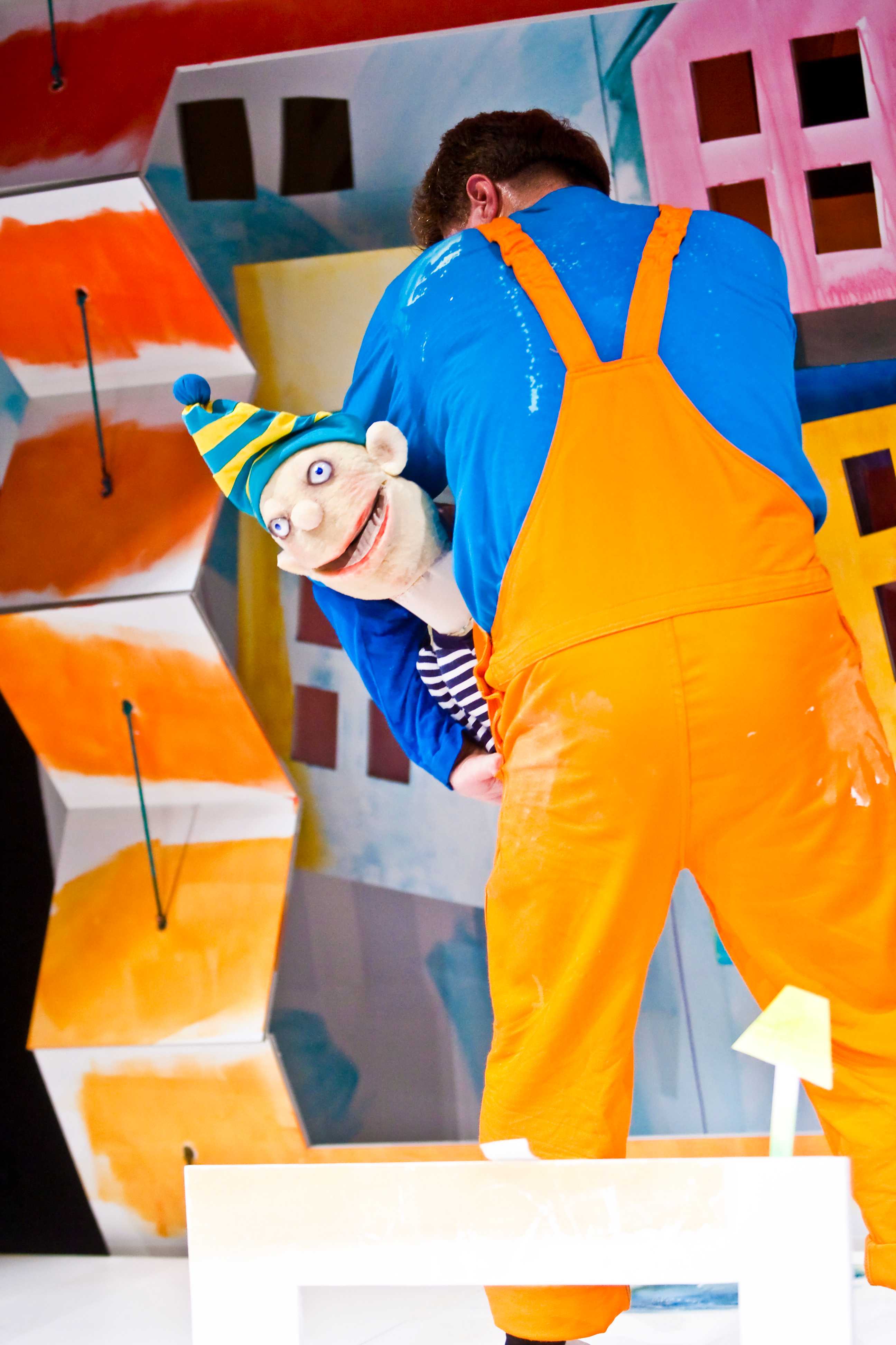 - Chciałam, aby był to ktoś, kto jest znakomitym aktorem i posiada wielką zdolność improwizacji. Jeszcze z czasów "Czerwonego Kapturka" pamiętam Ryszarda Dolińskiego jako osobę, która doskonale wie, jak wejść w kontakt z dziećmi - mówi Dworakowska. - Wyobrażam sobie "Pana Brzuchatka" jako bajkę nie do grania, a do dziania się, która włącza dziecko w zabawę. A nie tylko: siadaj i patrz. Owszem, dziecko siada, ale gdzie chce, zagląda gdzie chce, otwiera skrytki, patrzy na kolorowe formy, nawet może dotknąć lalki. Tu lalki są z gąbki, troszkę podobne do Muppetów. Oczywiście miękkie.