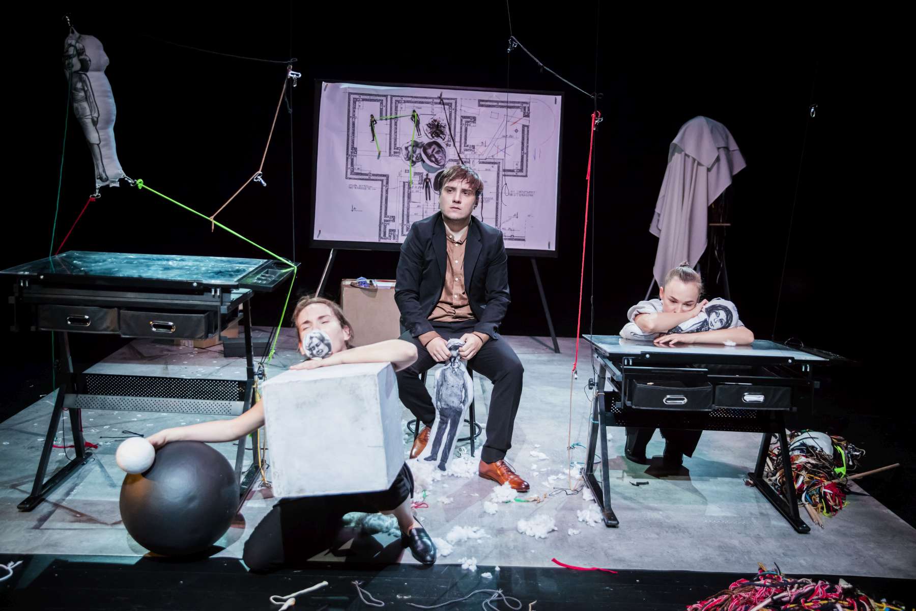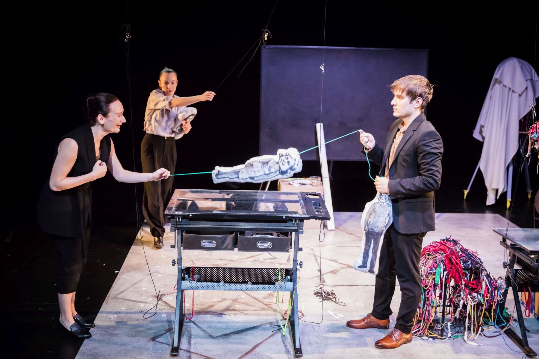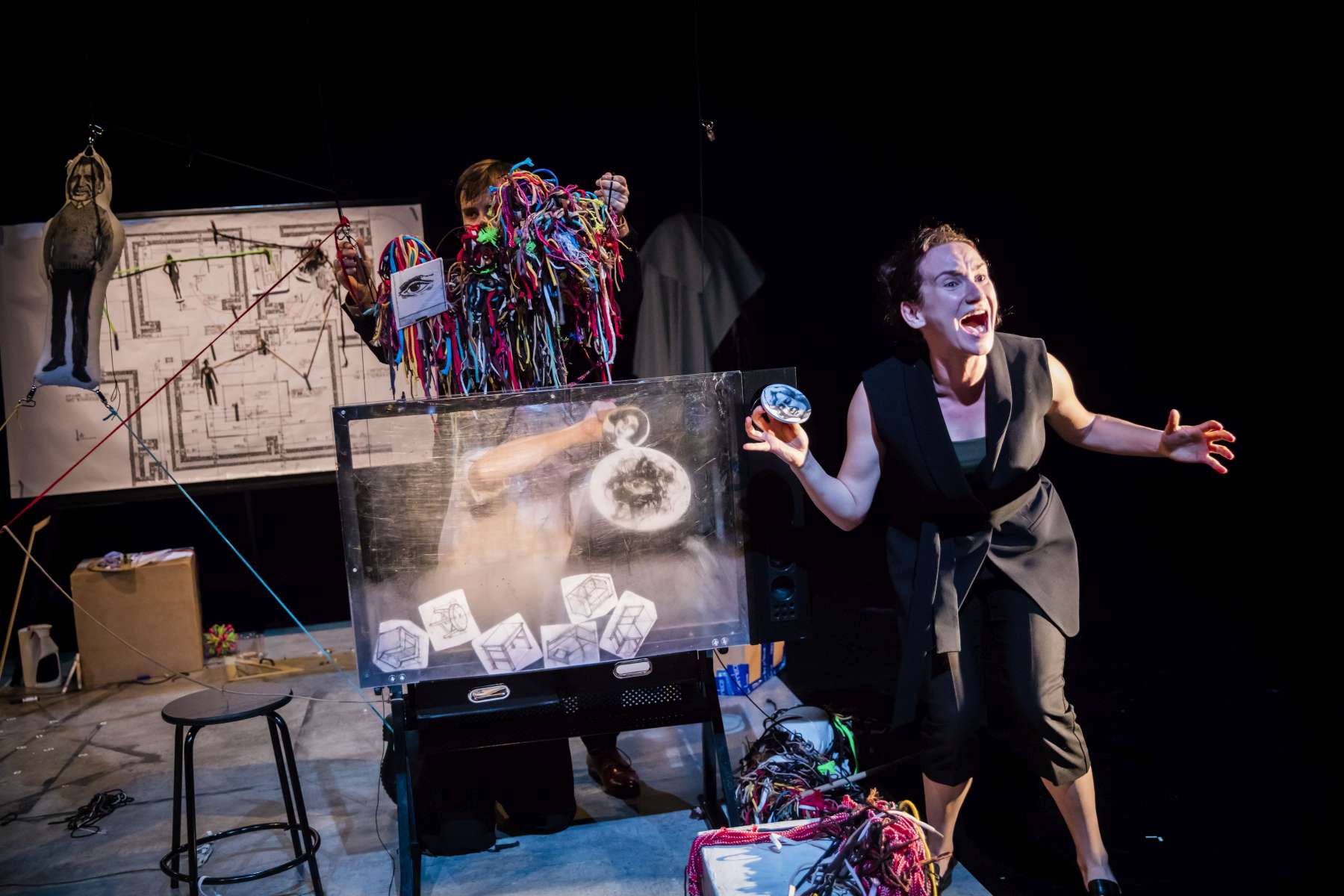 To spektakl skąpany w oparach absurdu, żywiący się groteską i czarnym humorem. A taki efekt twórcy uzyskują m.in. poprzez budowanie scen animacyjnych i abstrakcyjnych, z wykorzystaniem najróżniejszych przedmiotów, pomysłowych lalek, lin rozpiętych w przestrzeni (scenografia Marcina Bikowskiego). Aktorzy zapełniają scenę różnymi konstrukcjami, animują je, rozpinają lalki na linach, upychają do przezroczystych szafek, wcielają się w różne postaci. Budują świat choroby, pełen ograniczeń, narzuconych z zewnątrz, ale i od środka.