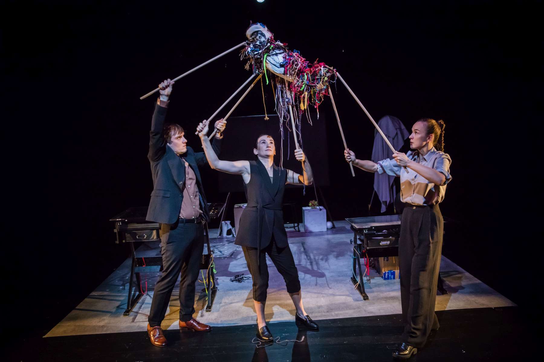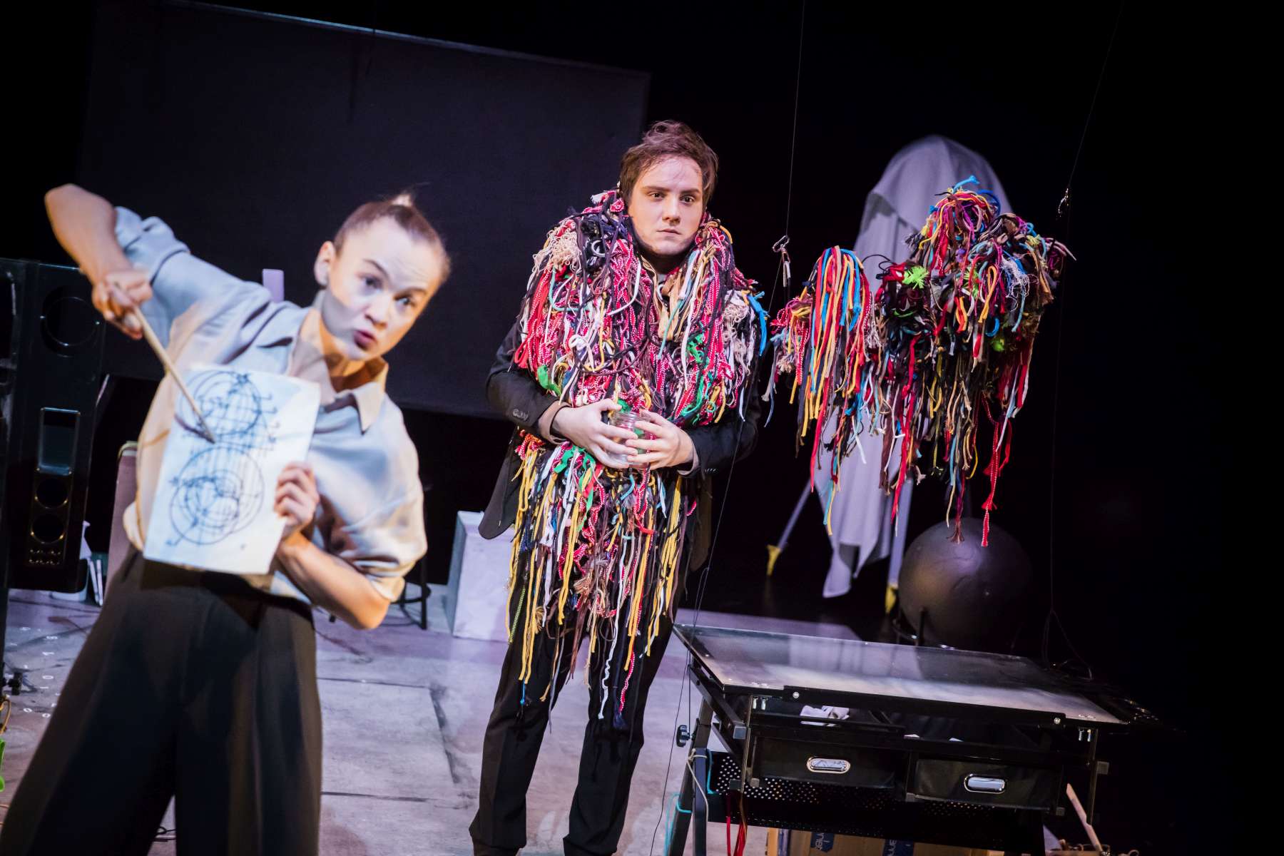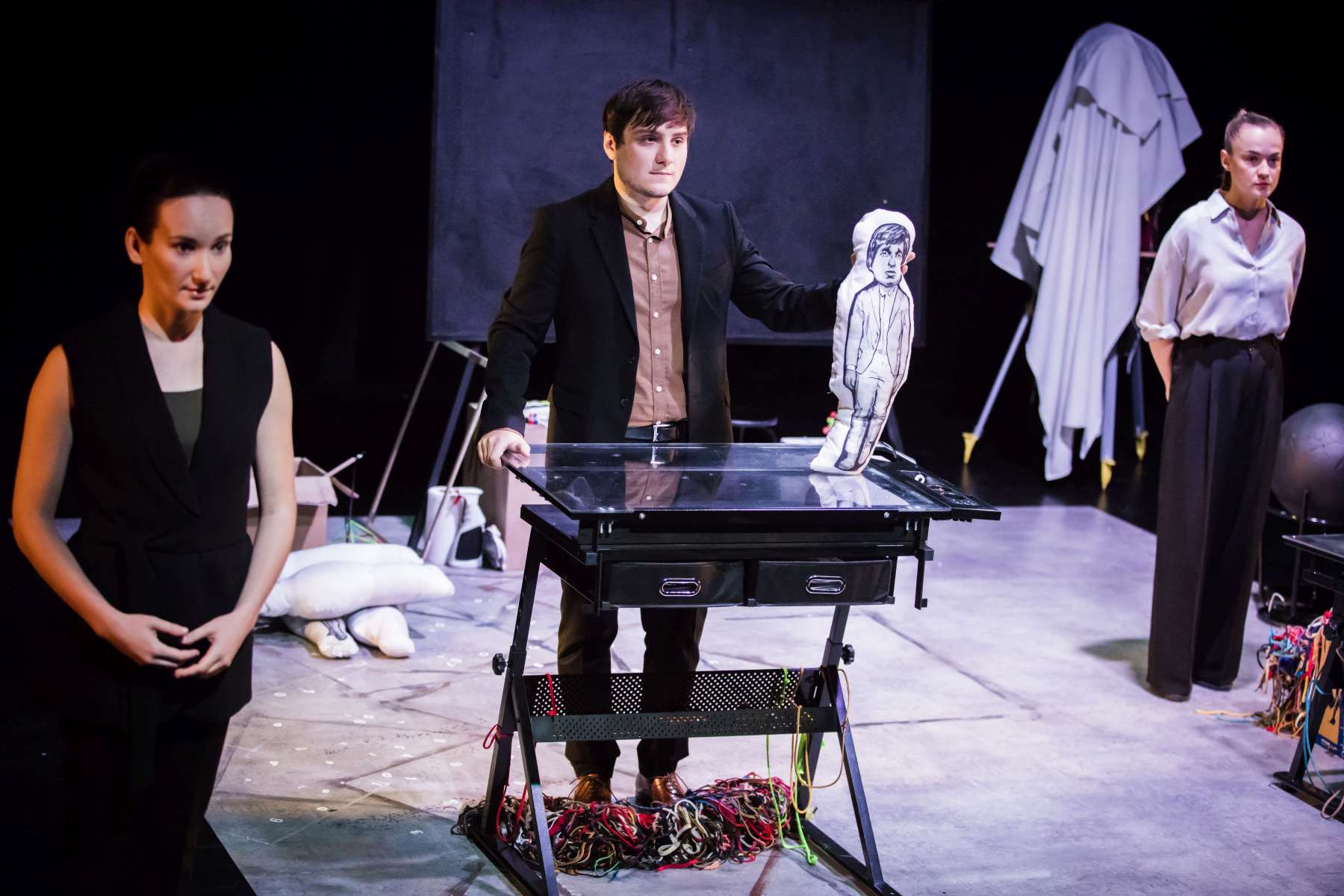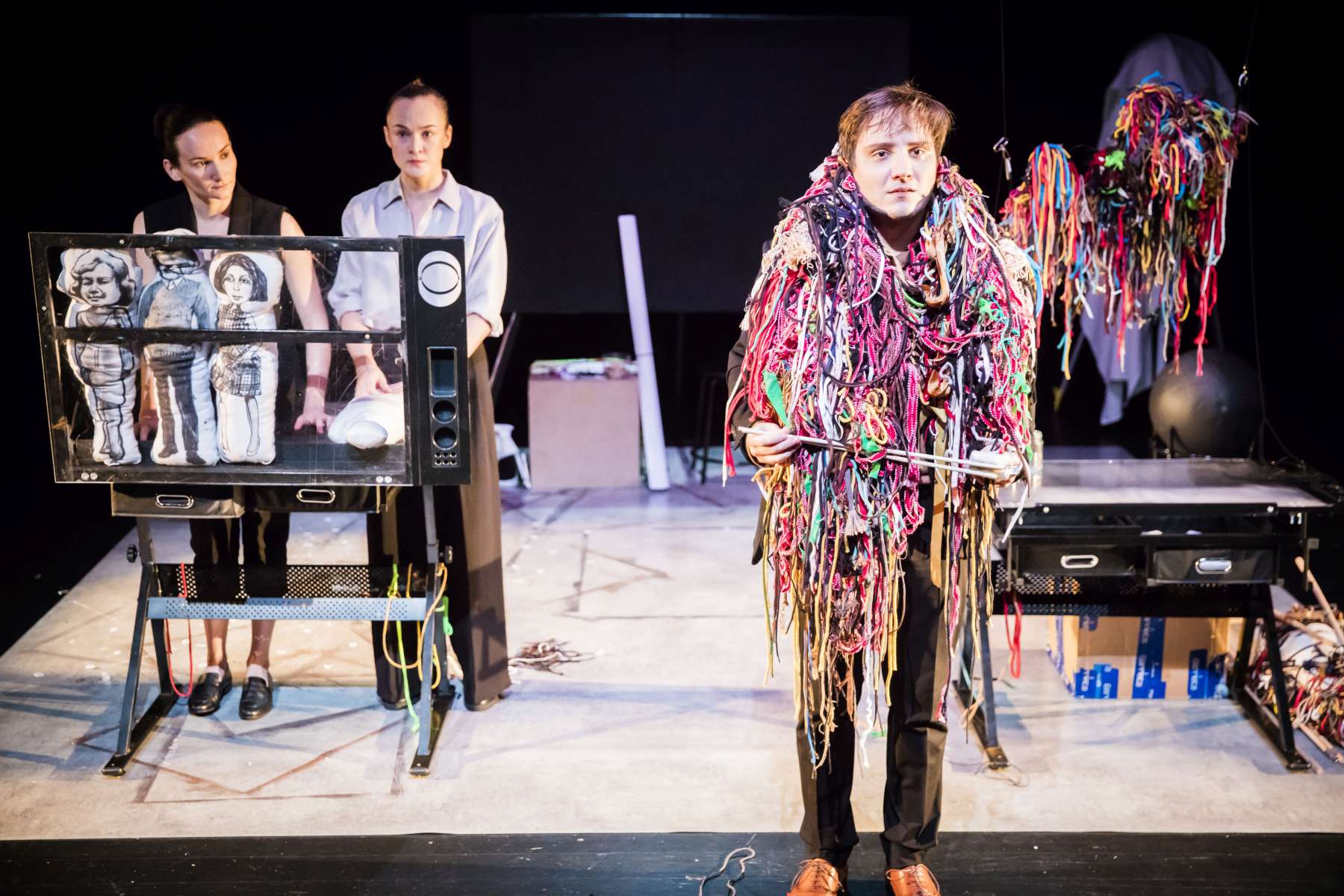 To spektakl skąpany w oparach absurdu, żywiący się groteską i czarnym humorem. A taki efekt twórcy uzyskują m.in. poprzez budowanie scen animacyjnych i abstrakcyjnych, z wykorzystaniem najróżniejszych przedmiotów, pomysłowych lalek, lin rozpiętych w przestrzeni (scenografia Marcina Bikowskiego). Aktorzy zapełniają scenę różnymi konstrukcjami, animują je, rozpinają lalki na linach, upychają do przezroczystych szafek, wcielają się w różne postaci. Budują świat choroby, pełen ograniczeń, narzuconych z zewnątrz, ale i od środka.