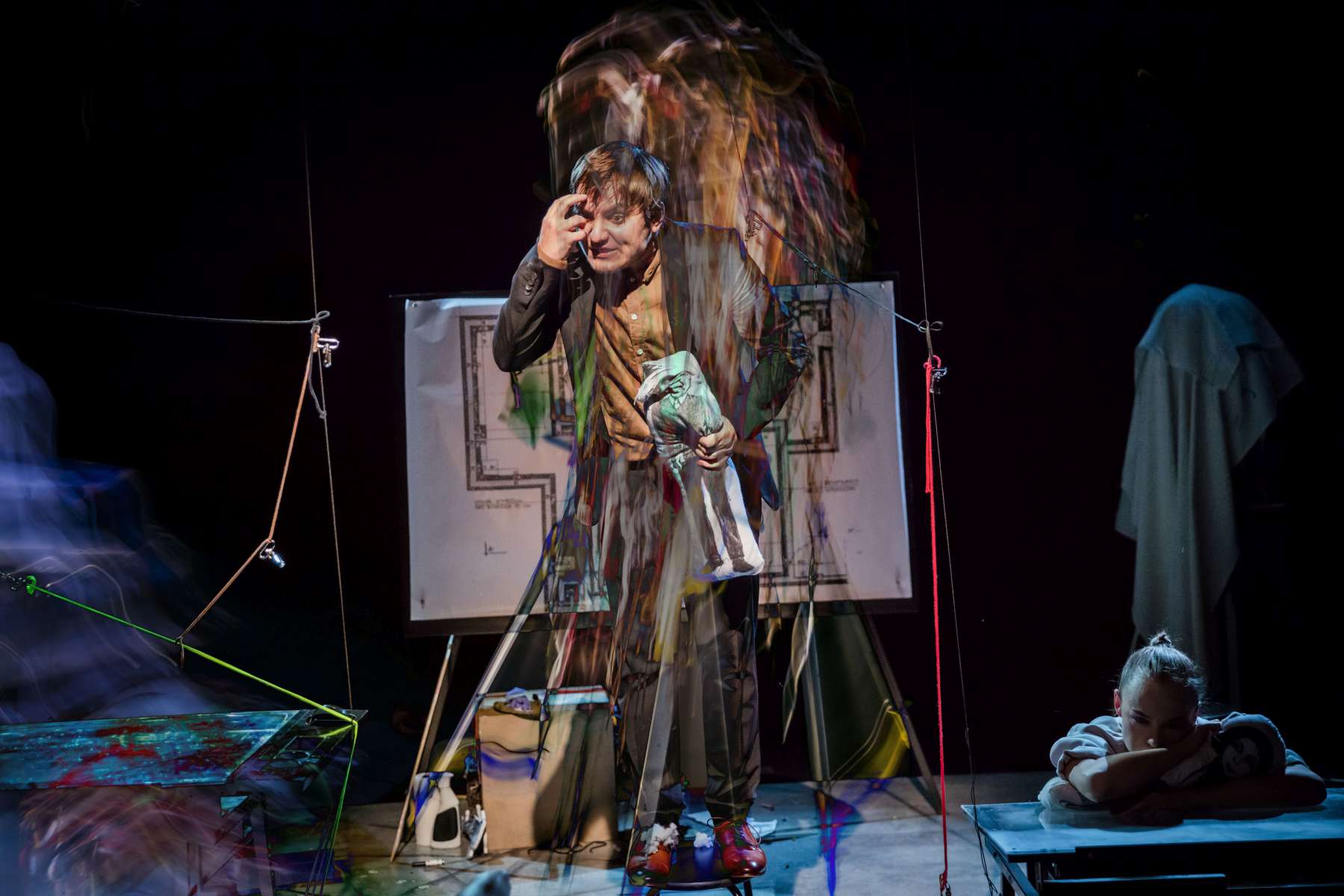 Ciekawy jest inscenizacyjny zabieg, w którym aktorzy lalki członków rodziny animują za szybą, wciskając je w nią, ograniczając przestrzeń. Po czym sami - przywierają głową do szklanych ścianek, rozpłaszczają policzki, deformując twarze. I podkreślając wrażenie dusznej atmosfery, ciasnoty, niedobrej energii wypełniającej mieszkanie.