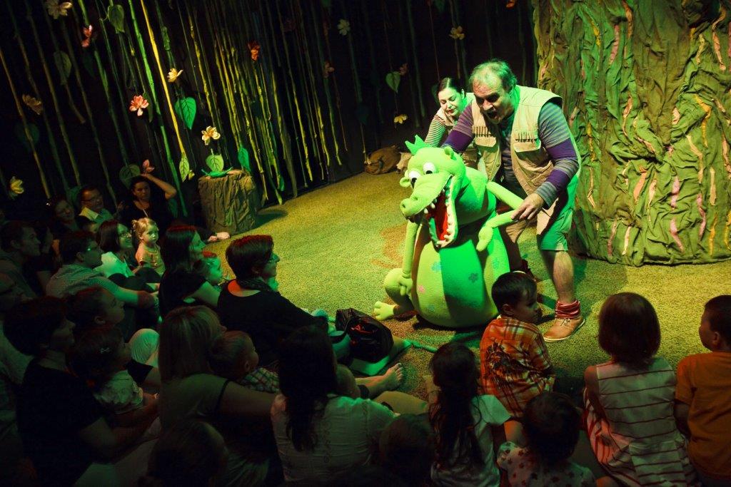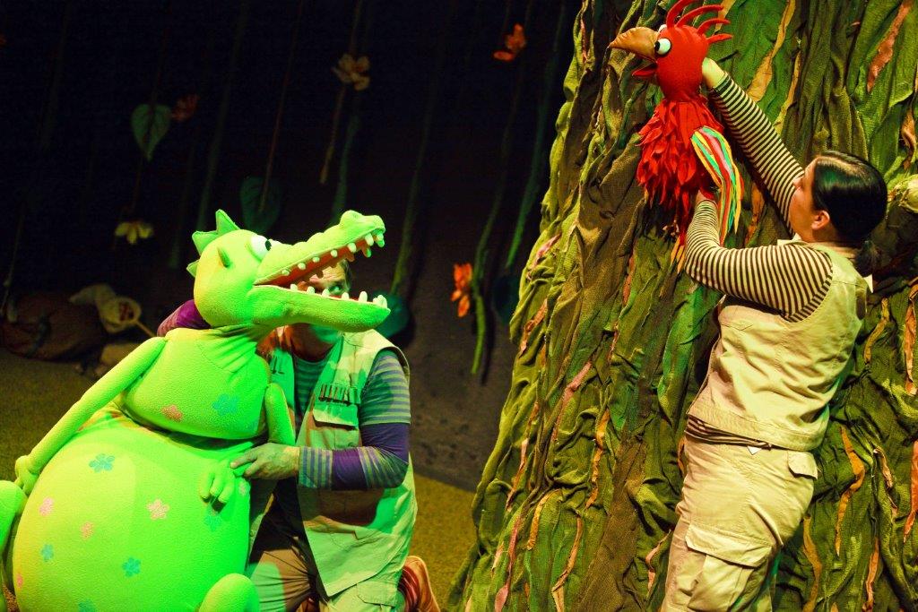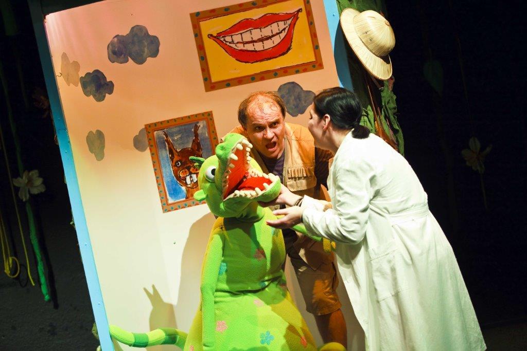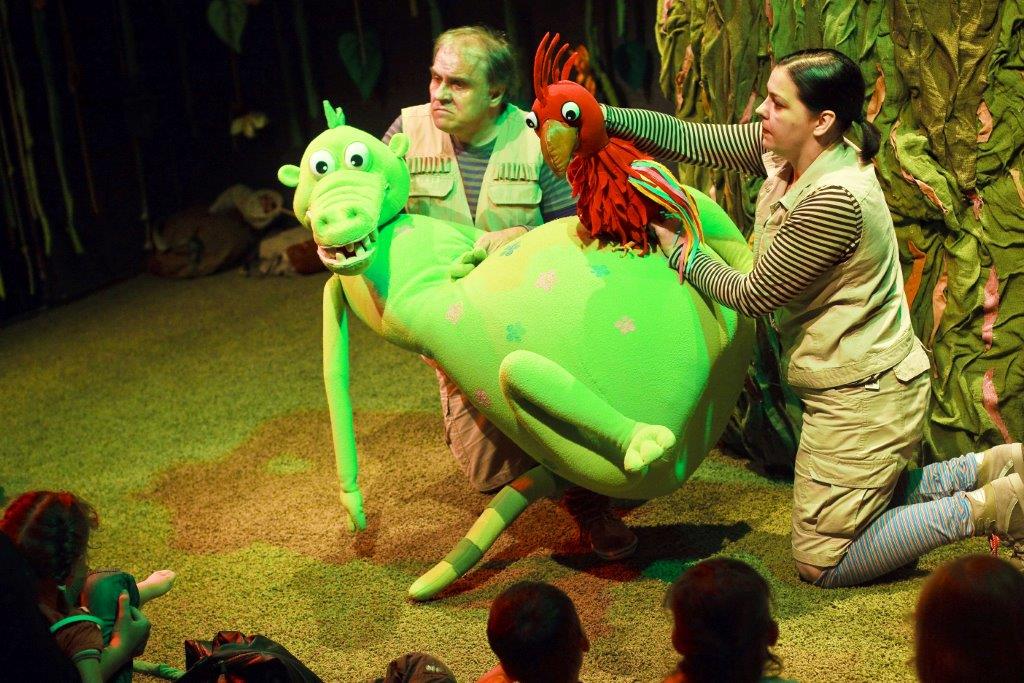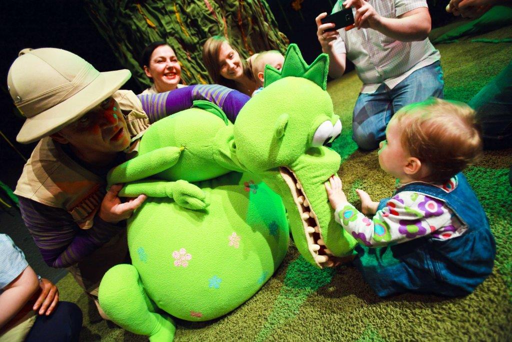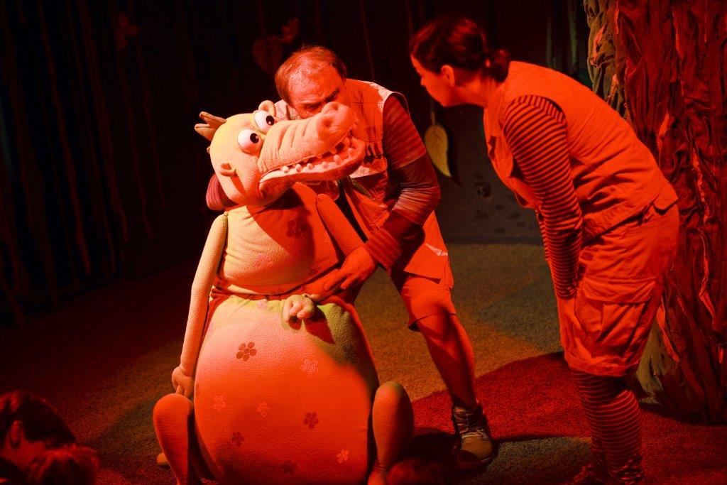Że spektakl (premiera już w niedzielę, 10 czerwca) świetnie trafi do dziecka nie mającego jeszcze roku, zaświadczył choćby 10-miesięczny Maciuś, który na próbie dziarsko raczkował w stronę aktorów i wielkich maskotek. Krokodyla wzrostu człowieka nie przestraszył się zupełnie, jeszcze chwila i chwytałby za zębiska wystające z paszczy. Że miał dobre samopoczucie, świadczyły choćby roziskrzone oczy, uśmiechnięta buzia i fakt, że za tatą, który robił na spektaklu zdjęcia, obejrzał się ledwie może ze dwa razy.