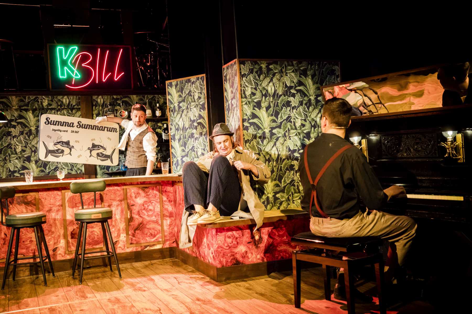 Żeby było pikantniej mamy i wiarołomne i zdradzane żony, nieszczęśliwych synów i wspólne odgadywanie, kto zabija. Bon motów spamiętać nie sposób, cytatów muzycznych jest bez liku, a publiczność, ta dobrze wychowana, każdą piosenkę nagradza brawami, a i perły humoru takoż, o ile nadąży za dialogami. Bo Drozda to potrafi. A że scenę Białostockiego Teatru Lalek poznała od podszewki, potencjał aktorów też nie jest jej obcy, to sięgnęła po wszystko z zachłannością, acz obsadowym umiarem.