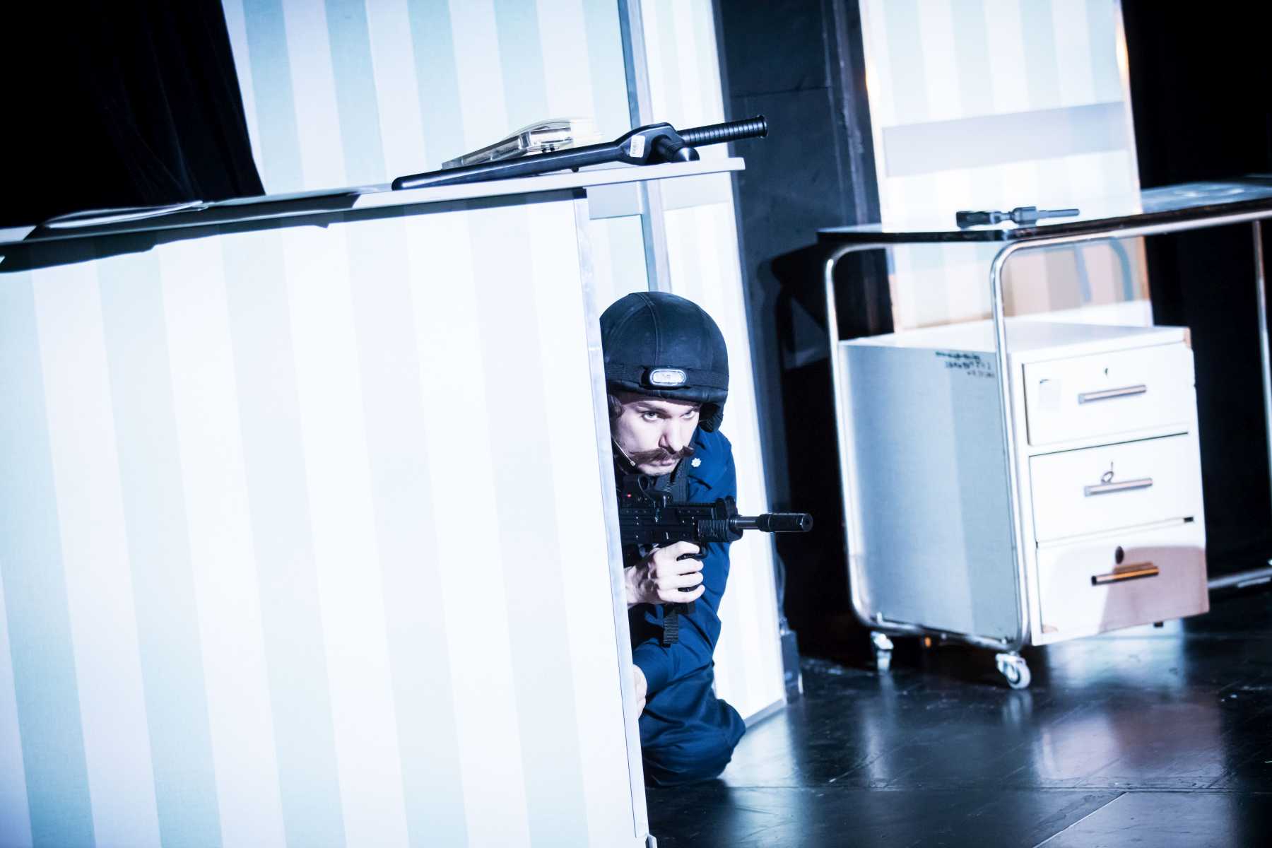 Mateusz Smaczny jako kochliwy policjant potrafi i zaszaleć z „suszarką” i zagrać szturmową policyjną tarczą „deszczową piosenkę” i zamienić się w rockowego muzyka. A kiedy przy pianinie śpiewa w manierze Ralpha Kamińskiego – niemal łza się kręci.