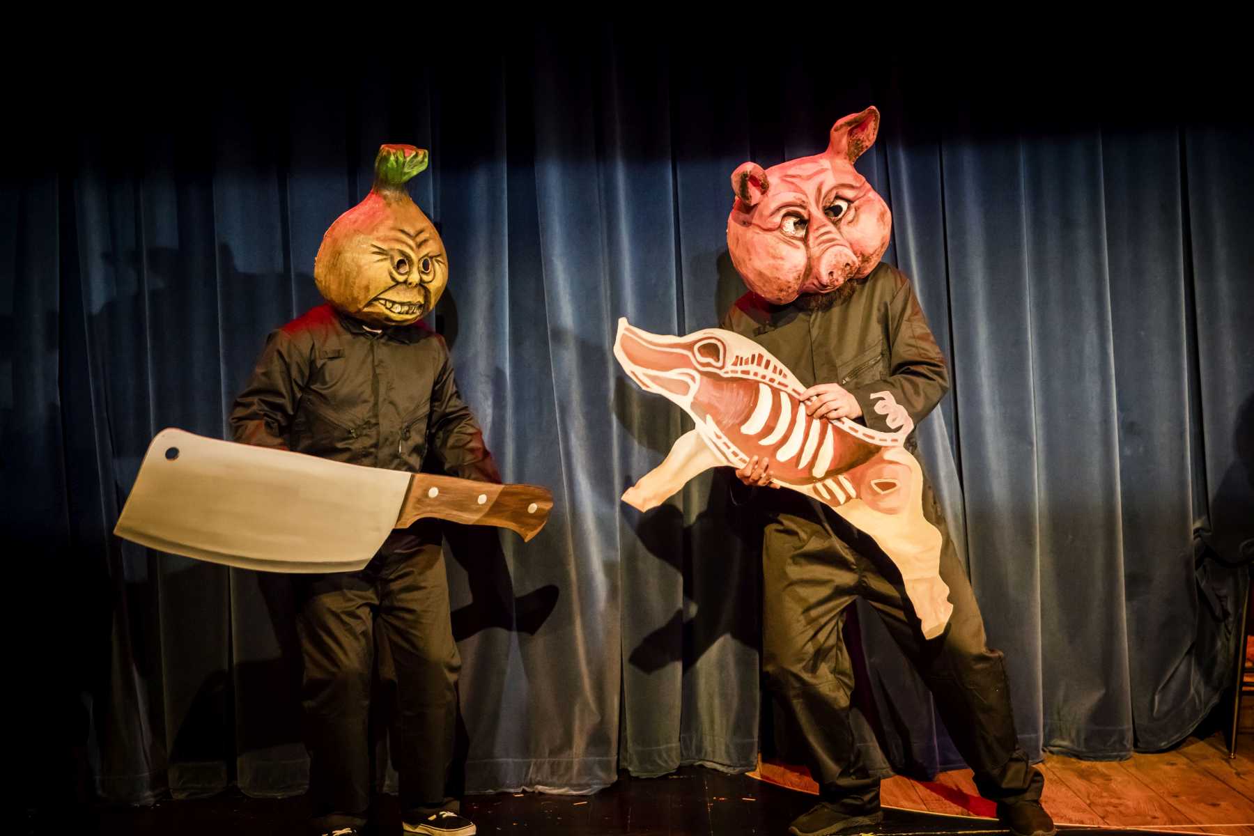 Kilka planów na scenie, obowiązkowe wykorzystanie balkonu, wejście na scenę z widowni, a do tego filmiki z centrum Białegostoku, sklepów i pionowe „live” wideo dopełniają całości. Są też lalki – męski trup z gąbki – oczywiście znany innych przedstawień aczkolwiek z detalem, którego wykorzystanie podobno uszczupliło widownię już po pierwszym kwadransie musicalu. Są też lalki jawajki, muppety, w niektórych scenach jeden aktor animuje po kilka naraz! No i wreszcie aktorzy – ubrani przez Mateusza Karolczuka trochę po stereotypach, ale jakim smakiem. Ot choćby uszyta specjalnie dla twardej biznesłumen kreowanej przez Grażynę Kozłowską bluzka.
