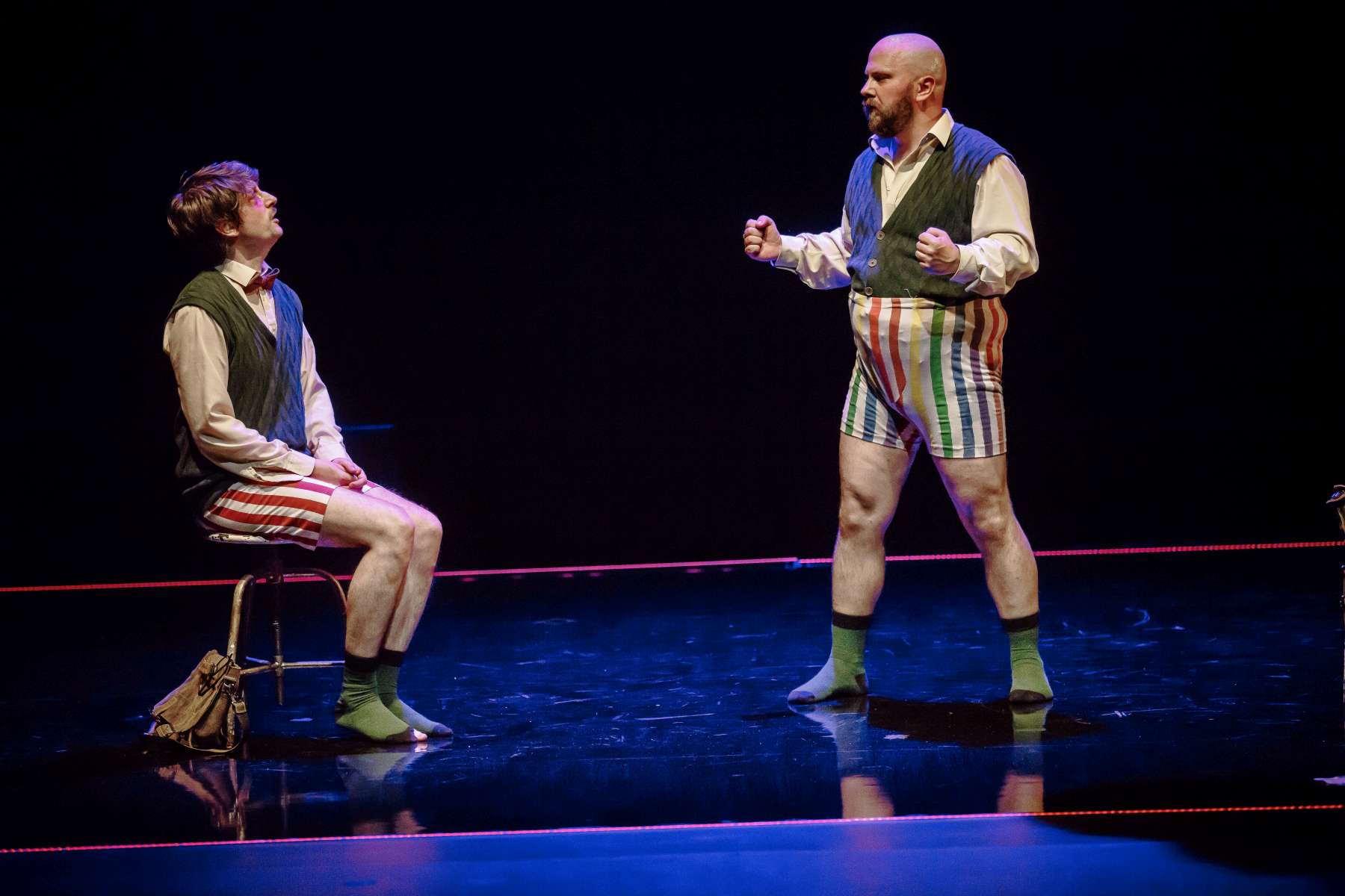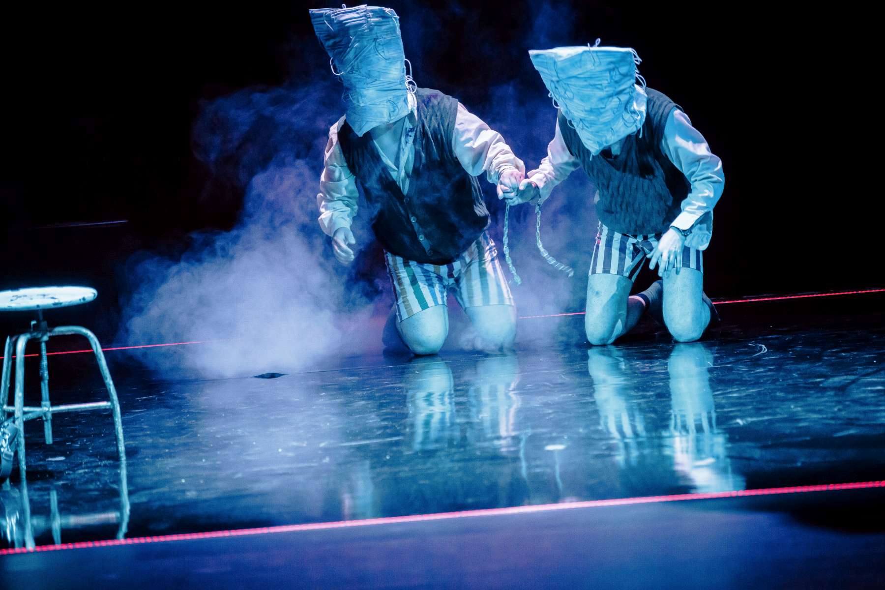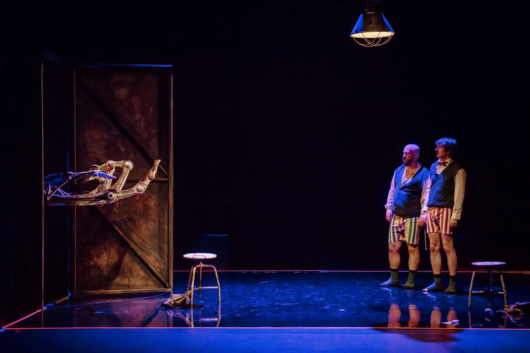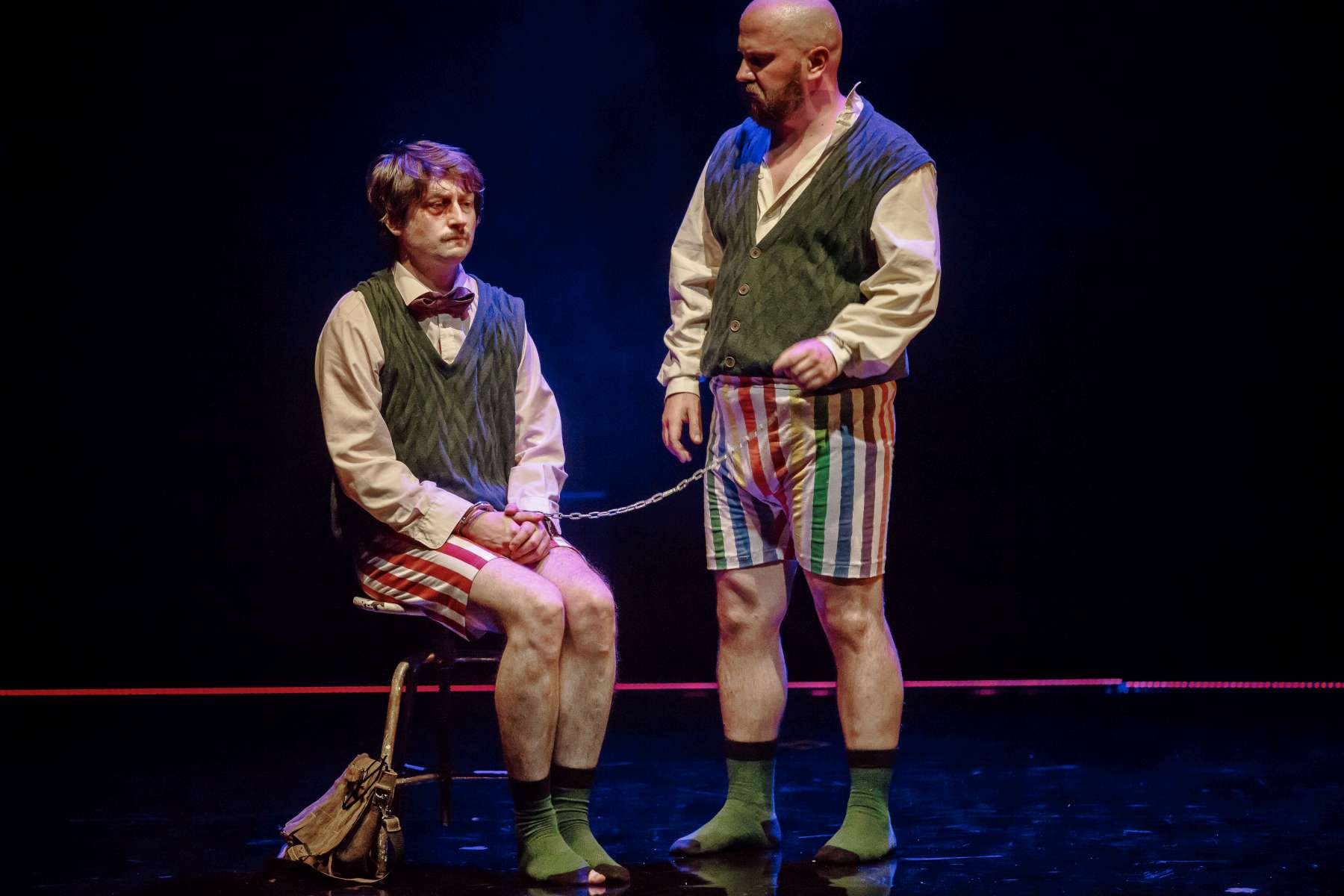 W spektaklu w reż. Jacka Malinowskiego, przy freejazzowej, niepokojącej muzyce Marcina Nagnajewicza, w postaci dwóch panów wcielają się: Krzysztof Bitdorf i Michał Jarmoszuk.