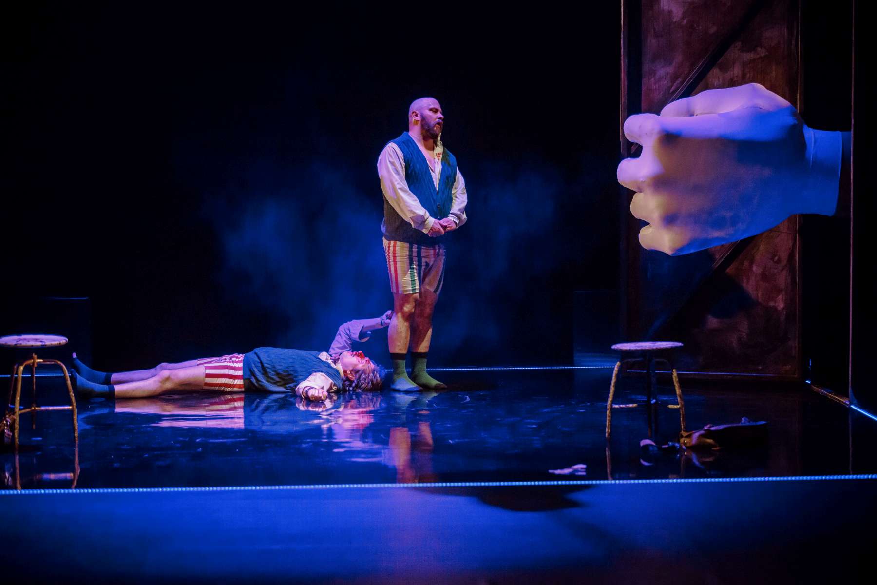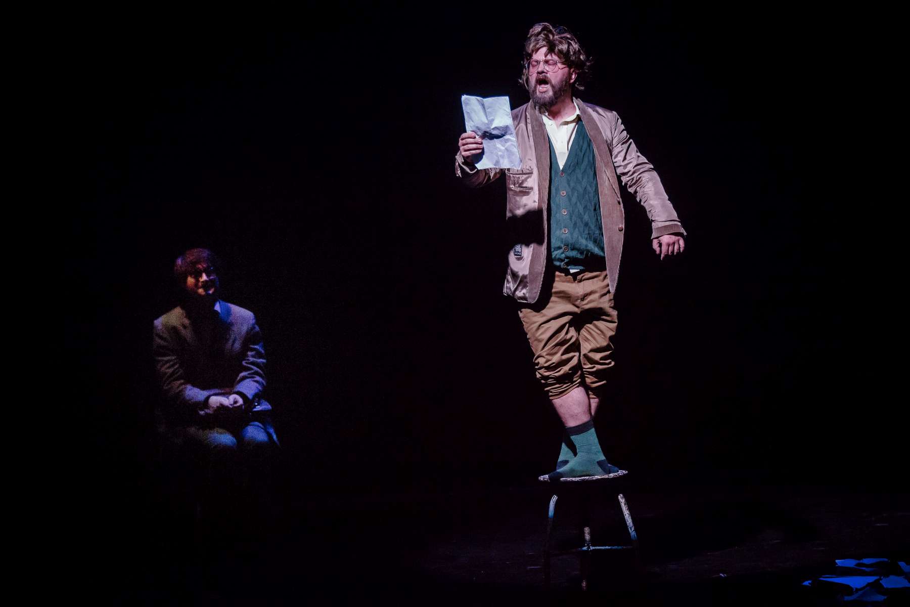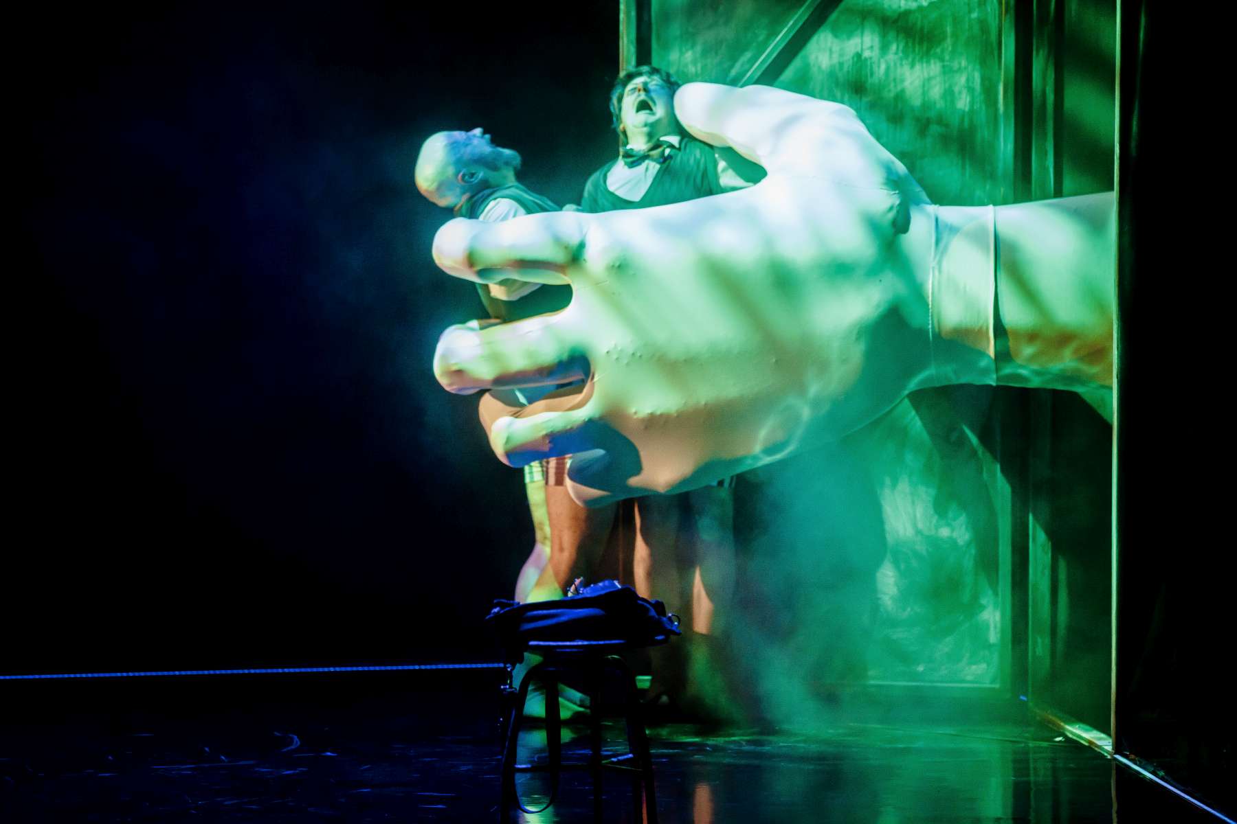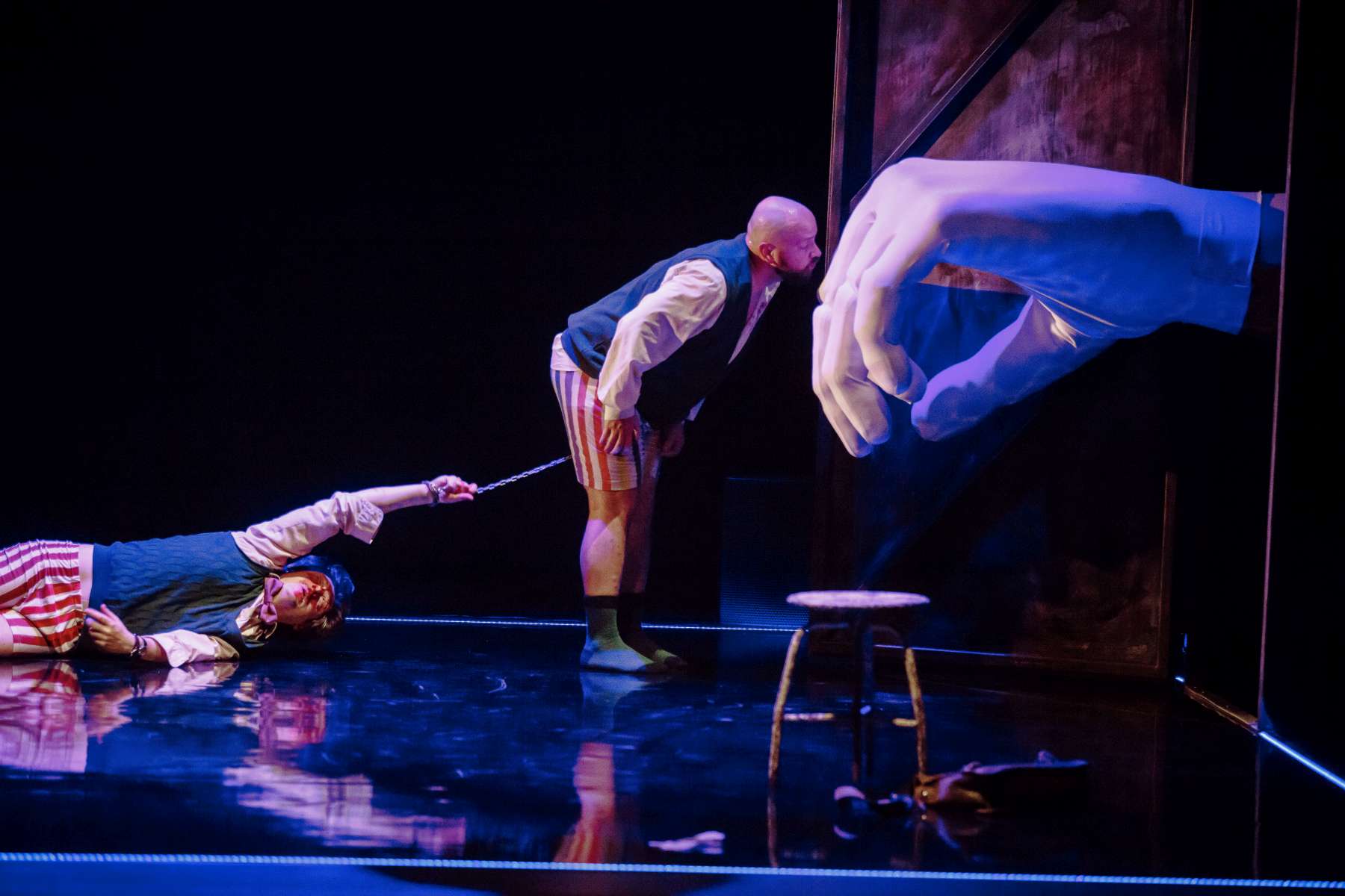 W spektaklu w reż. Jacka Malinowskiego, przy freejazzowej, niepokojącej muzyce Marcina Nagnajewicza, w postaci dwóch panów wcielają się: Krzysztof Bitdorf i Michał Jarmoszuk.