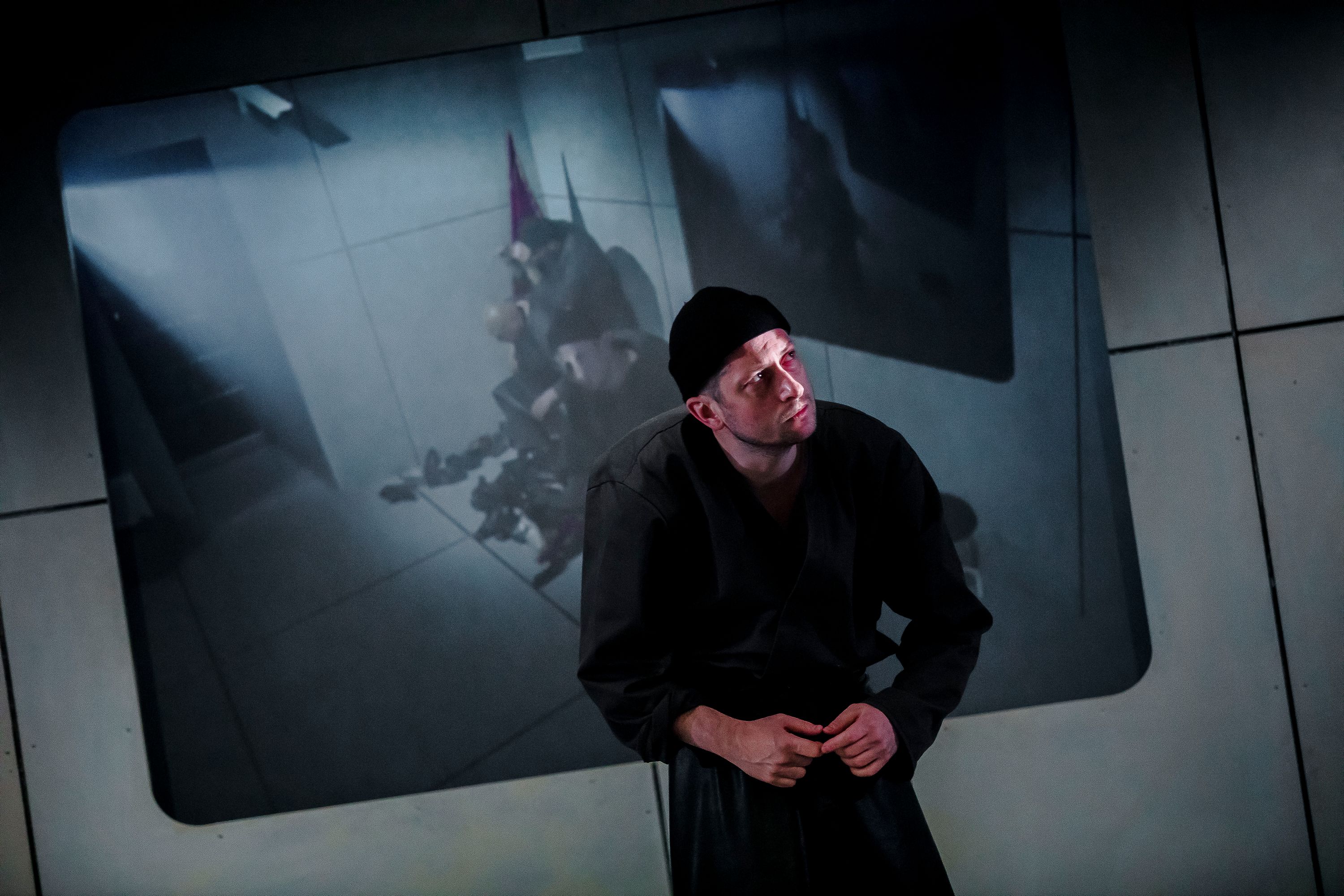Prosta na pierwszy rzut oka scenografia – szara przestrzeń niczym wnętrze pudełka – szybko okazuje się przestrzenią bardzo kompaktową i metaforyczną – odmykają się różne jej fragmenty niczym chwilowe okienka, z których ktoś niczym z dolnych szczebli drabiny wyskakuje, wypełza, byle szybciej, byle uszczknąć coś dla siebie.