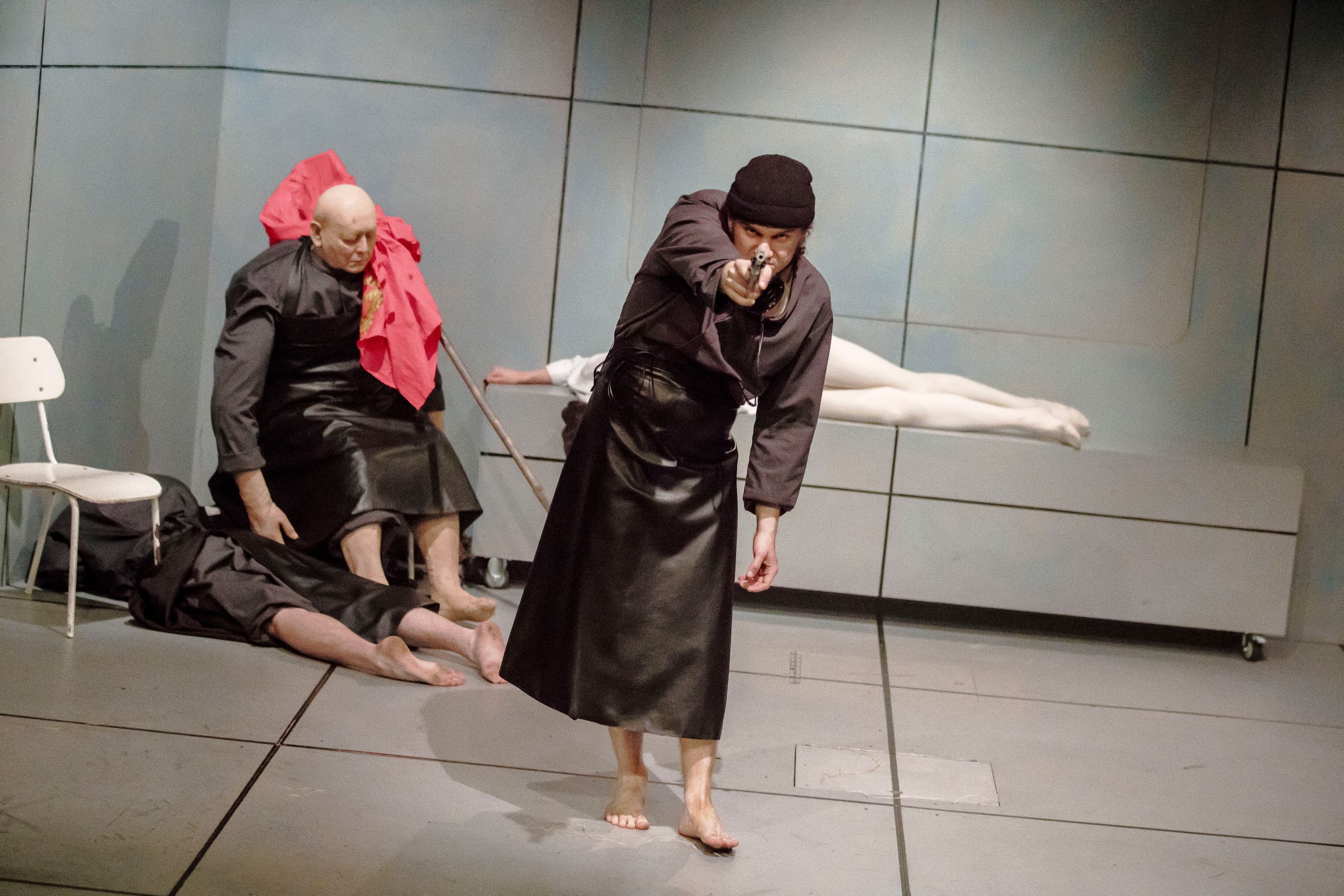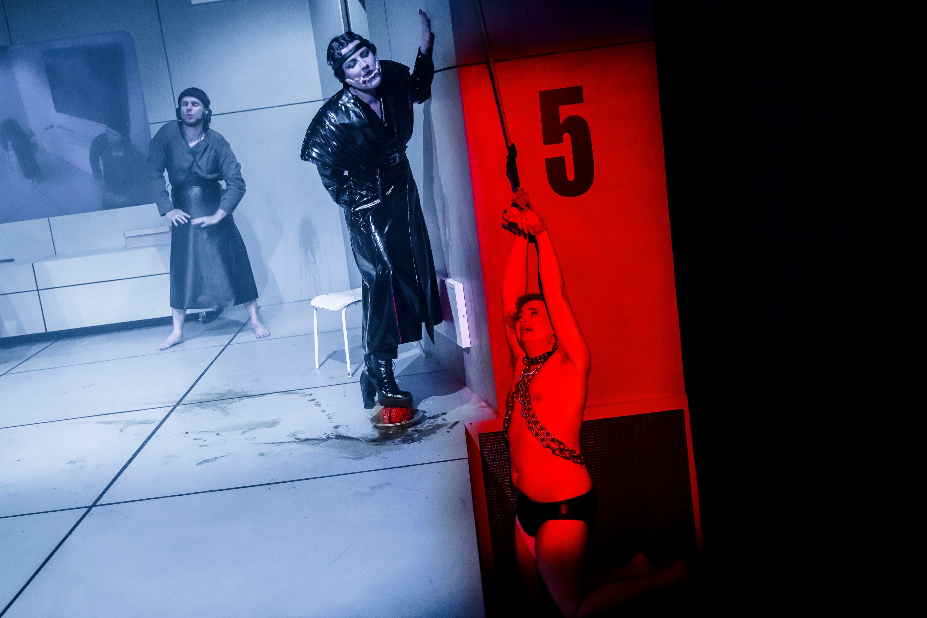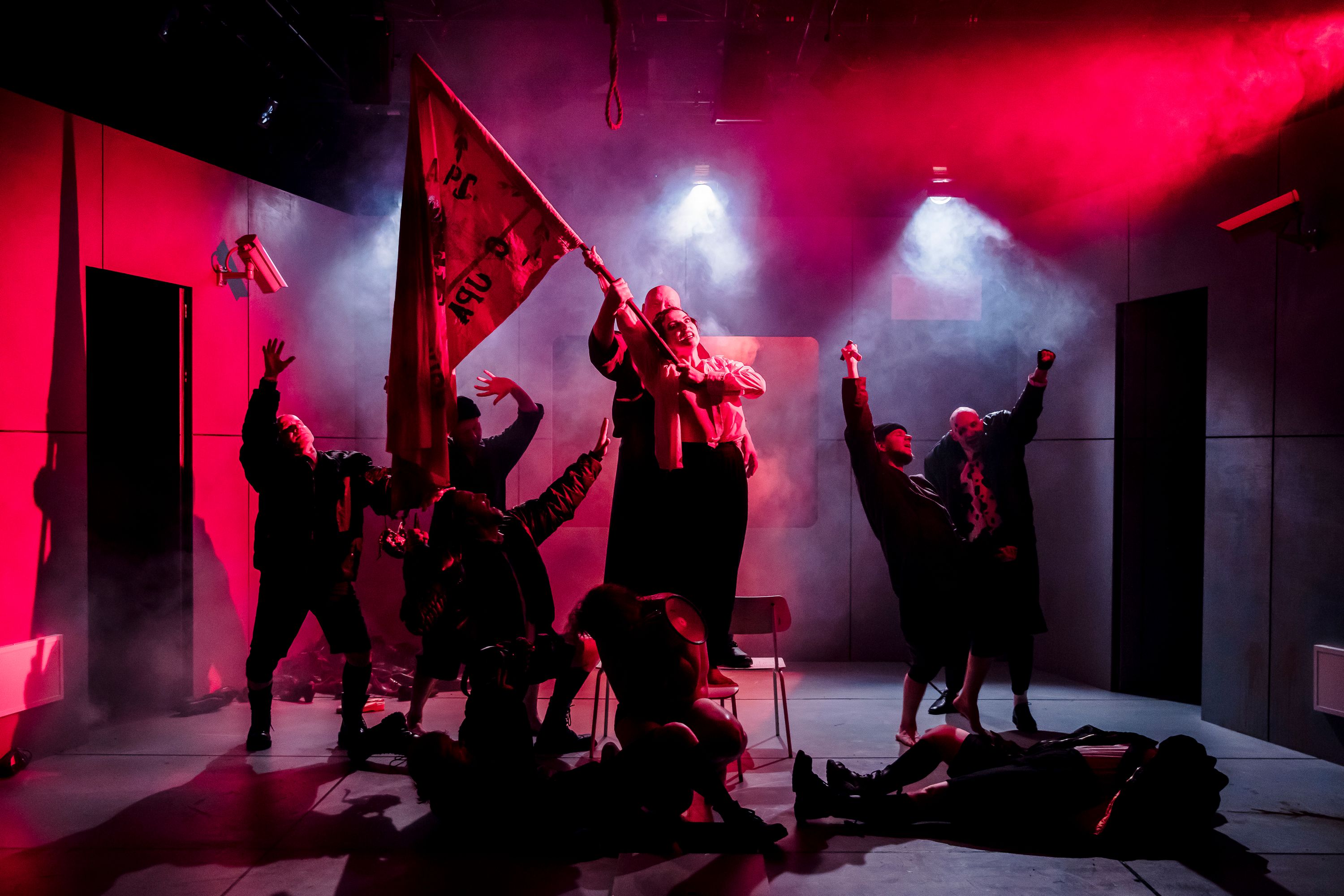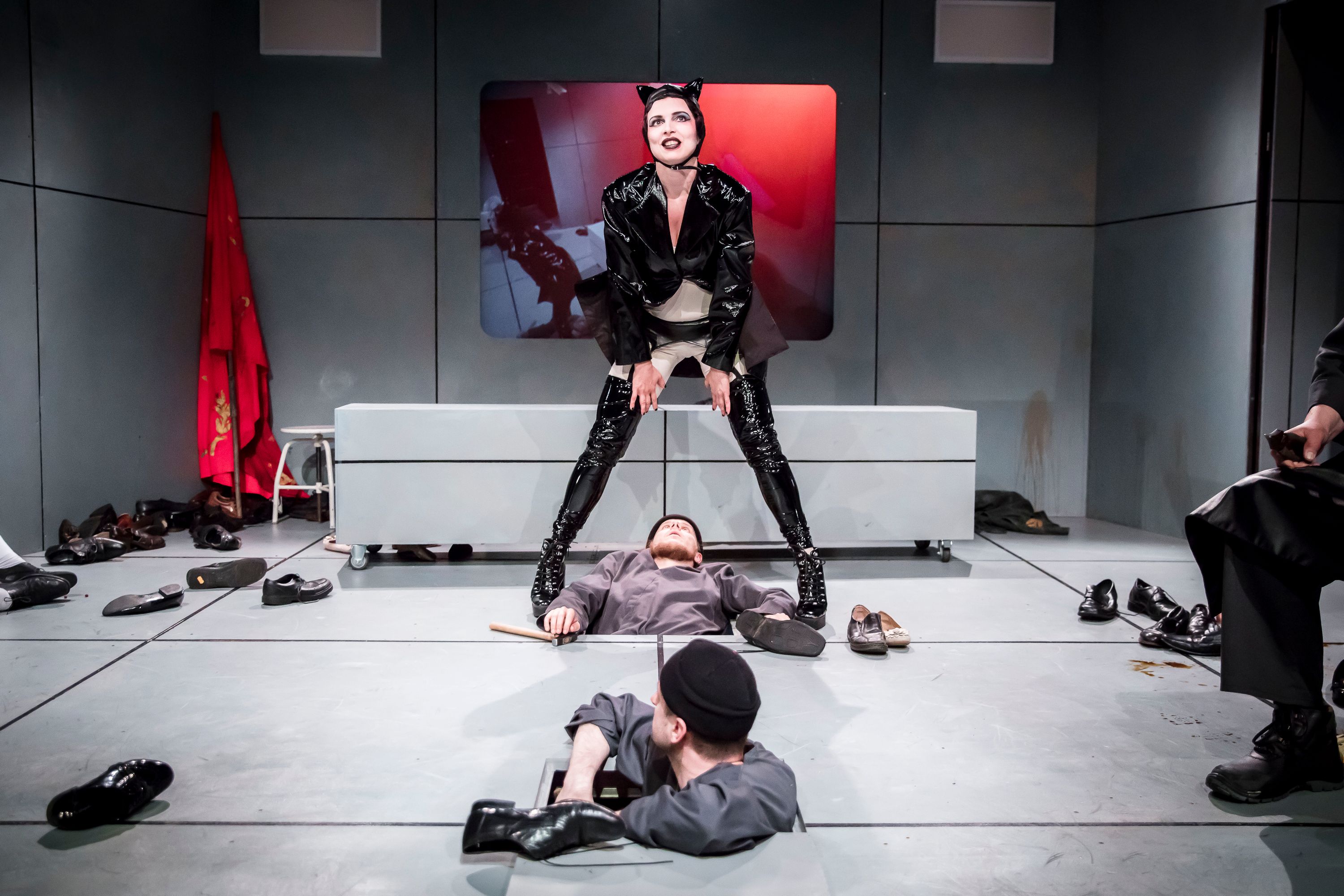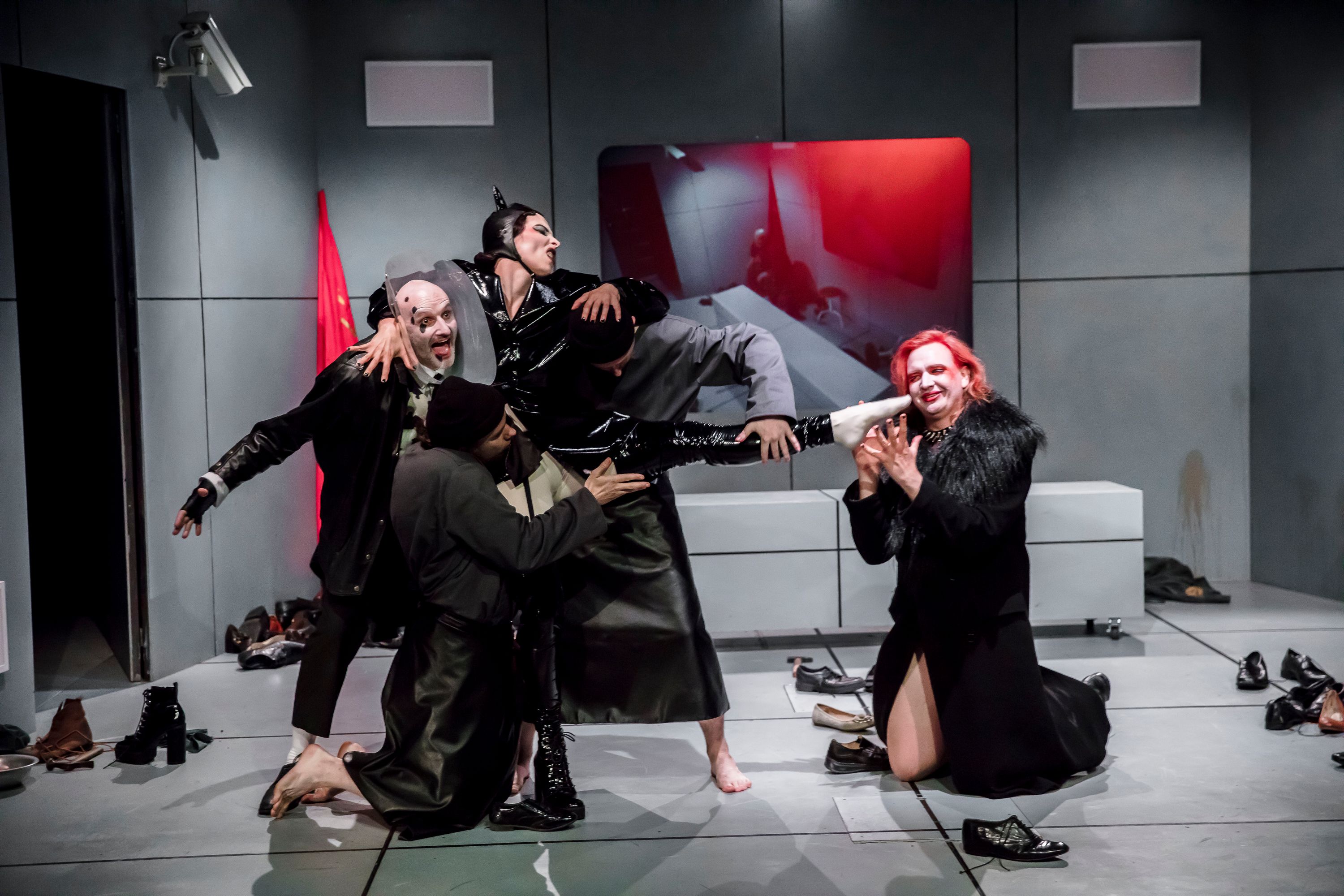 W jednej chwili szara przestrzeń może być pokoiczkiem w suterenie, gdzie szewcy pracowicie stukają w obcasy, w drugiej – kapitalistyczną fabryczką butów, w której praca już odbywa się taśmowo (świetna inscenizacyjnie scena z przesuwającymi się na czerwonej materii butami). A po drodze jeszcze może być miejscem kolejnych rewolucji, zawirowań i zawłaszczeń. A te następują błyskawicznie, tu każdy czegoś chce, ma swoje pragnienia i ciągoty.