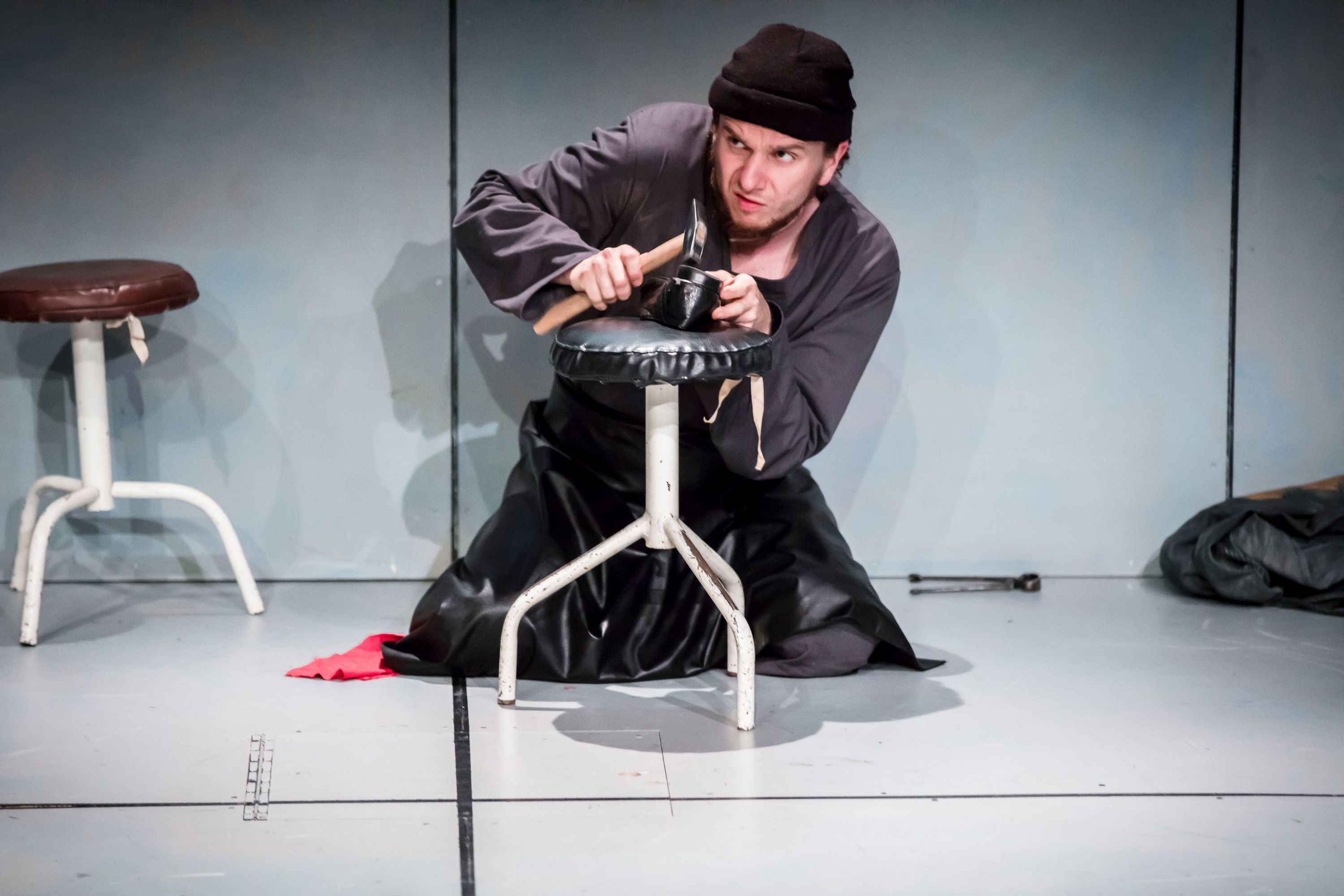 Najpierw świetnie uzupełniająca się trójca – główny szewc Sajetan (znakomity Adam Zieleniecki) i dwaj czeladnicy: Mateusz Smaczny i Michał Jarmoszuk. Sajetan snuje swoje wizje: „Ja to mógłbym być prezydentem, chciałbym ichnie dziwki deflorować i ich żarci żreć". Jeden z czeladników też marzy o innym piwie i innej dziewczynie niż tej samej ciągle, nudnej Kaśce. Gdy po przewrocie trafiają do celi przymusowego bezrobocia i ich rytm życia zmienia się kompletnie, to właśnie praca i to, co wcześniej lekceważone, staje się największym pragnieniem. Ale już jest nowe. Przybywają „dziarscy chłopcy", na ich czele minister sprawiedliwości, który – jak mówi – ministrem został przez telefon.
