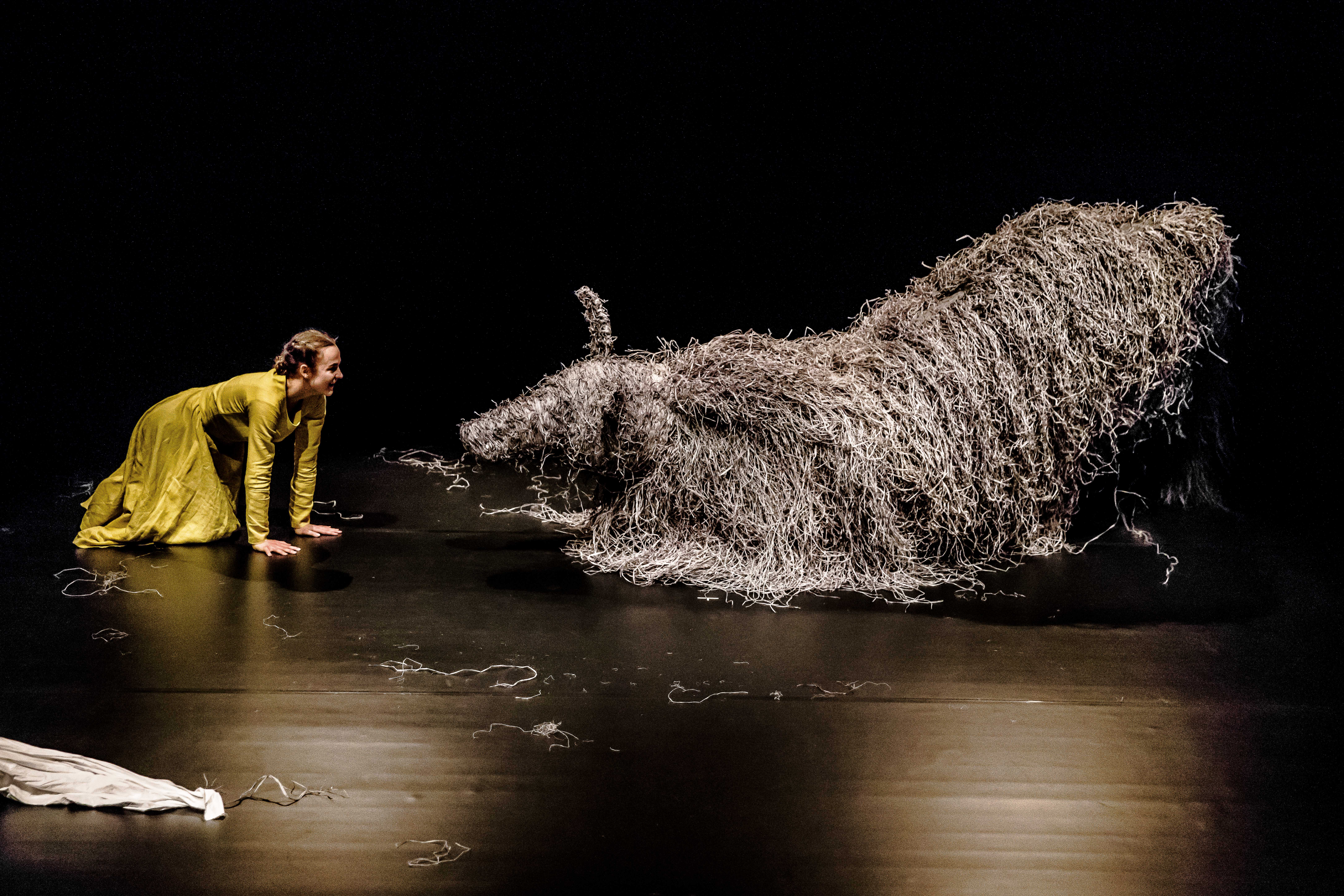 I właśnie postać wilka jest tu największym wyzwaniem scenograficznym. W spektaklu nie pada ani jedno słowo, ogarniające tytułową bohaterkę przygnębienie trzeba pokazać w sposób symboliczny, z użyciem ożywionej formy. W jednej ze scen pokazanej dziennikarzom podczas próby melancholia przybiera postać lalki -niewielkiego wilka, animowanego przez Magdalenę Dąbrowską. Potem sytuacja się zmienia.