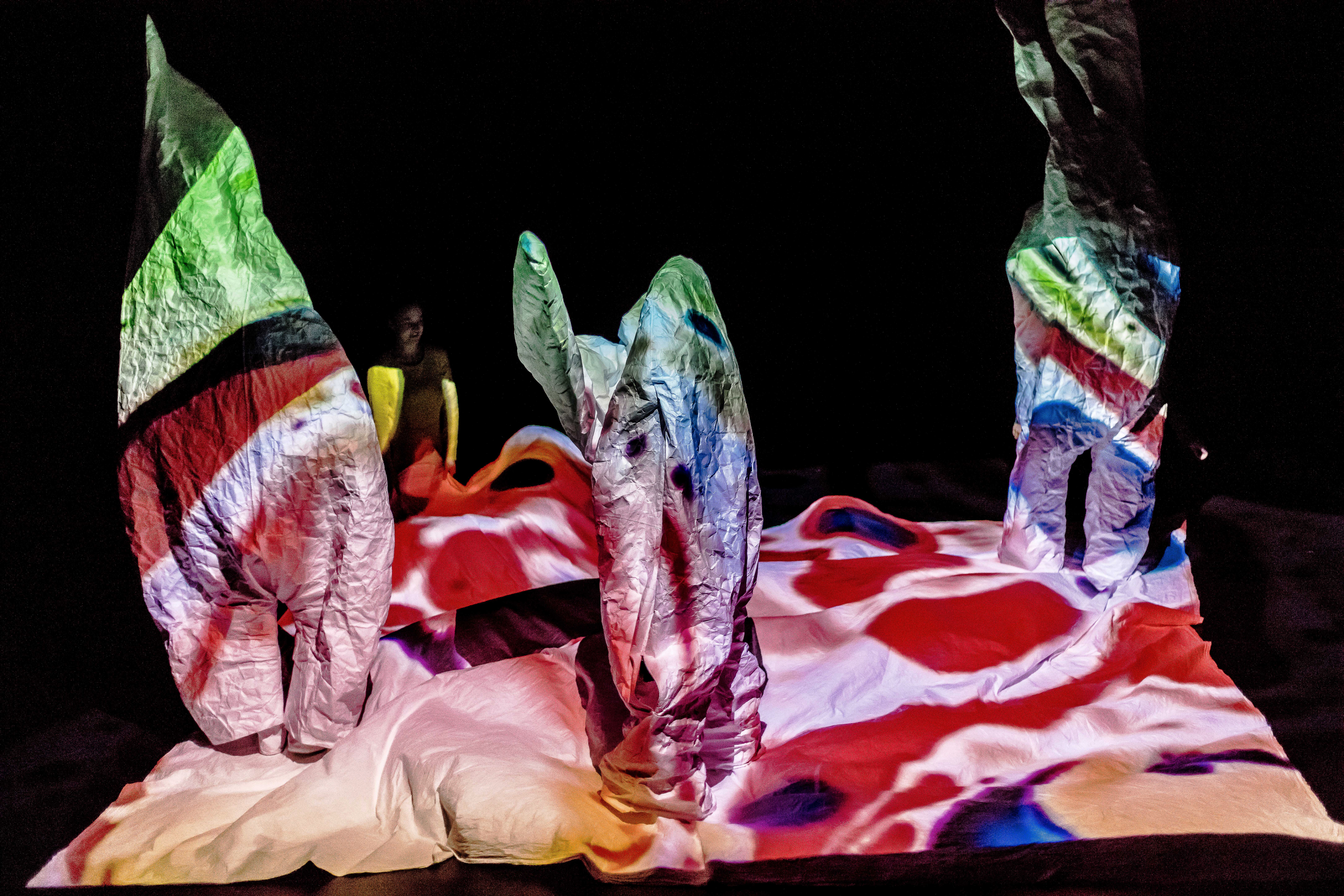 Scenografię do spektaklu przygotowały reżyserka Gintare Radvilaviciute oraz współpracująca już od kilku lat z Białostockim Teatrem Lalek znakomita scenografka Giedre Brazyte. W spektaklu wykorzystują rafię i papier. Efekt jest zadziwiający - stworzona w ten sposób materia, przypominając płótno, faluje niczym morskie fale, jest kołdrą, kokonem, ale też lalką.