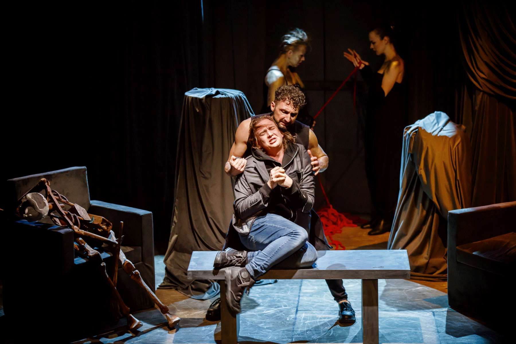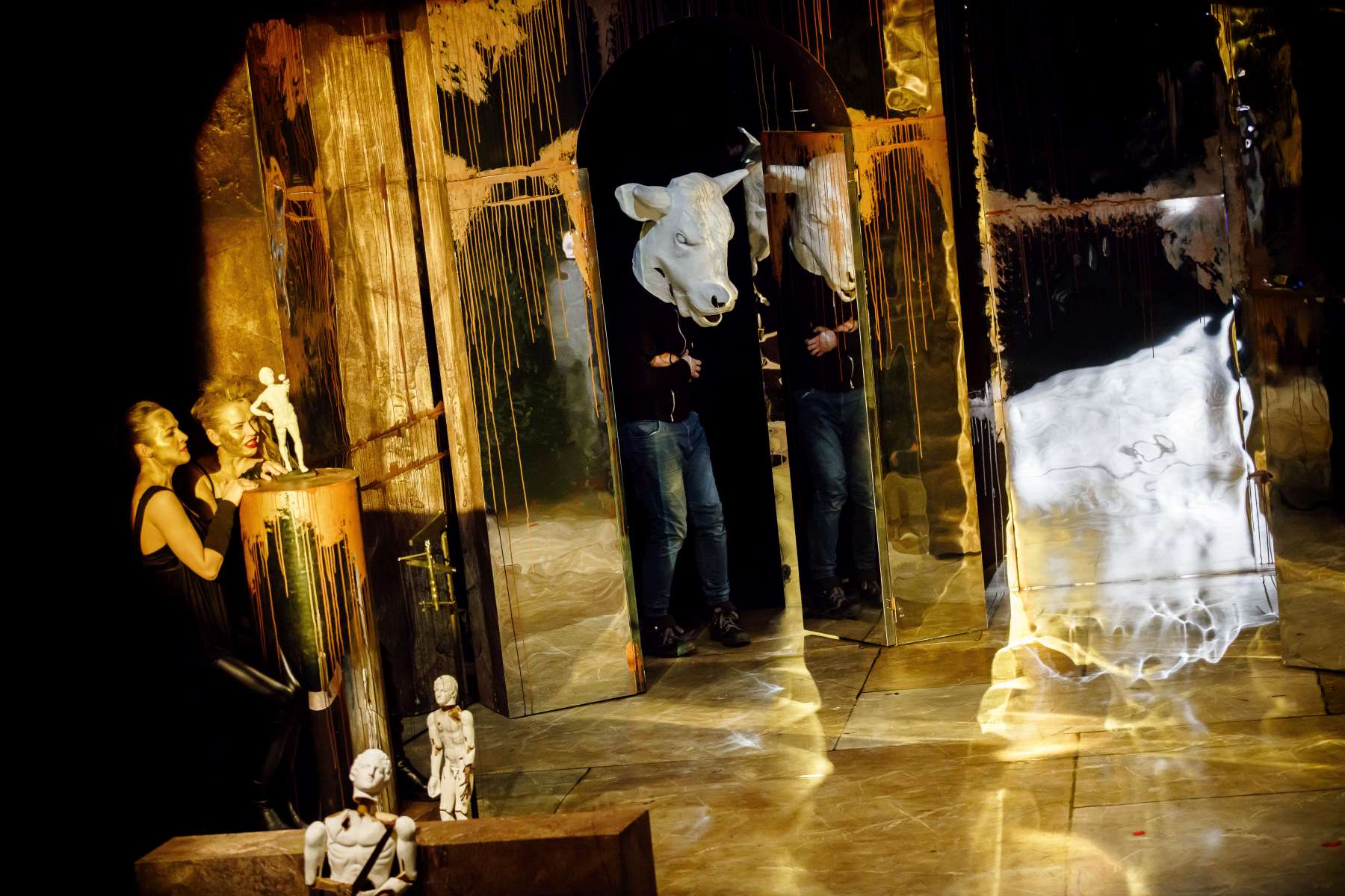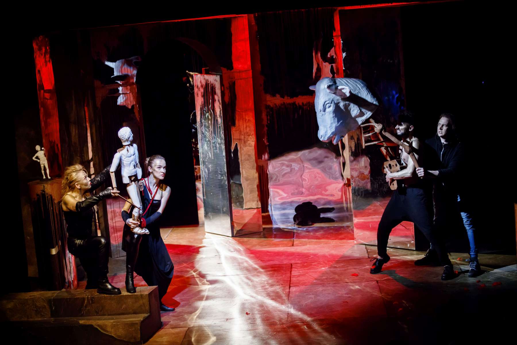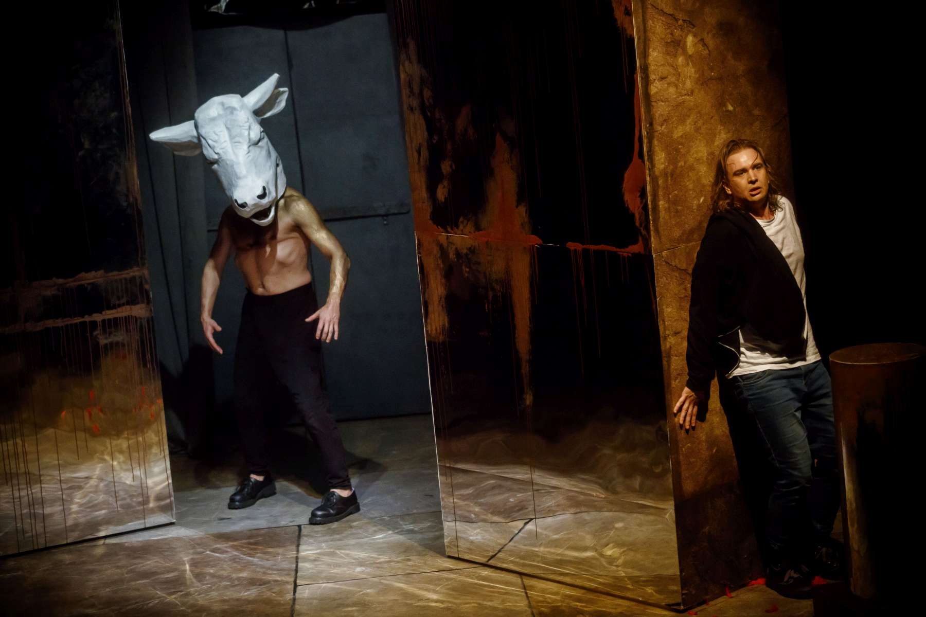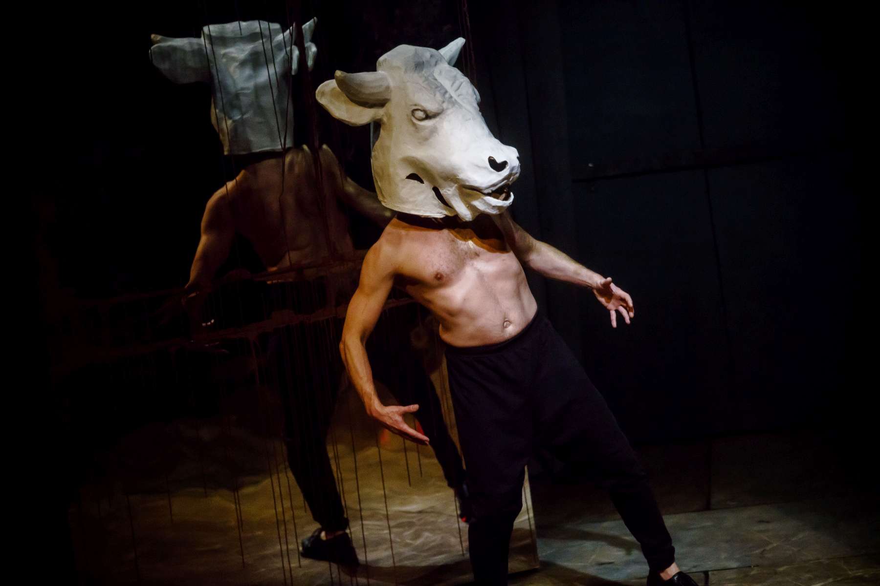 Można rzec tak: przestylizowanie, nadmiar. Ale można i tak: pięknie zagrana i piękna plastycznie fantasmagoria o kryzysie zagubionego młodego człowieka. Oba te zdania, choć na pozór sprzeczne, dotyczą jednego spektaklu, nie wykluczając się wcale, raczej pokazując jego złożoność. „Z głową byka" – przedstawienie wedle sztuki i w reżyserii Roberta Jarosza właśnie takie – złożone – jest: przeładowane i ascetyczne jednocześnie, pełne symboli i dosłowne, patetyczne i pełne prostoty. W jednej chwili przytłacza nadmiarem, w drugiej przykuwa uwagę plastycznym transem i inscenizacyjnymi pomysłami. To teatralny rollercoaster, w którym na pierwszy rzut oka czegoś wydaje się za dużo, a za moment przychodzi myśl: te nitki jednak się łączą, i to ciekawie.
