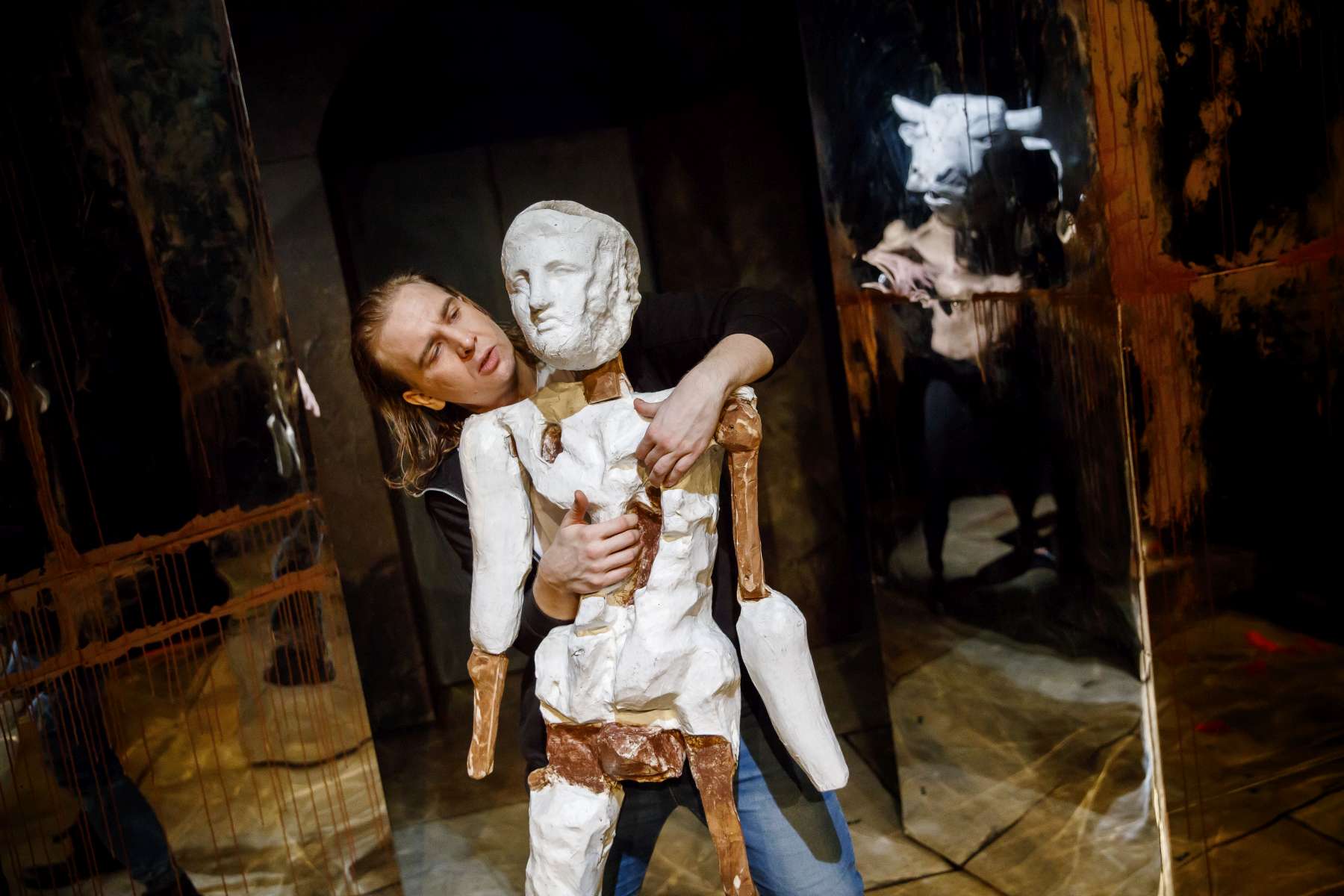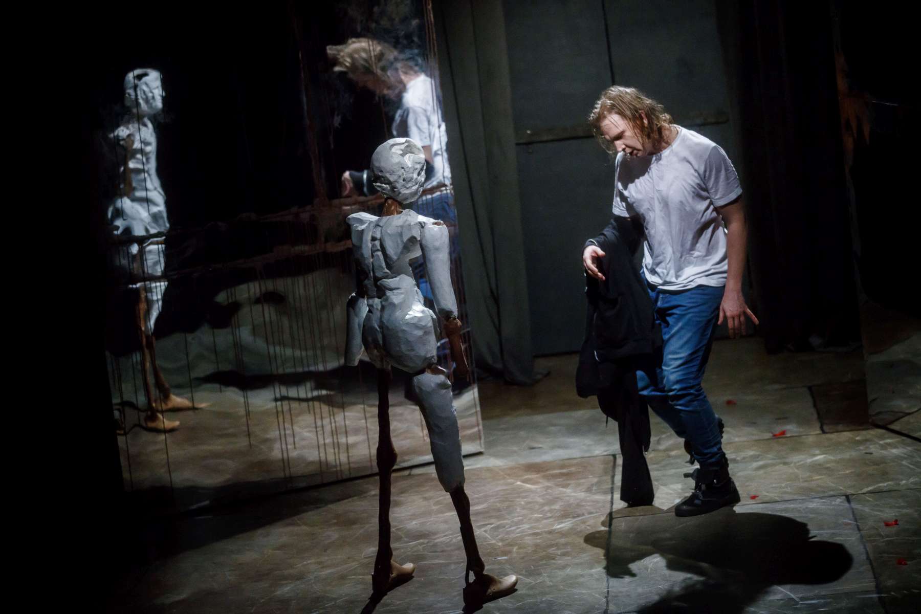 Ale nim do tego dojdzie – Michał mocuje się sam ze sobą, upada, podnosi się i znów upada, przemierza mroczne korytarze swojej wyobraźni i emocji w poszukiwaniu światła. Białostocki zespół pokazuje te peregrynacje i wychodzenie z niemocy w sugestywny sposób, grając lalką, w żywym planie, słowem, gestem. Lalek jest tu kilka, są różnej wielkości i różnorodnie pokazują – na różnych etapach życia – i Tezeusza, i Michała, który stracił kontakt z swoim ciałem, zapadł się w sobie. Nim odzysk energię – minie trochę czasu. I właśnie to przejście, oczyszczenie, malowane animacyjnymi talentami aktorów, choreografią, światłem, muzyką, jest najciekawszą częścią spektaklu.