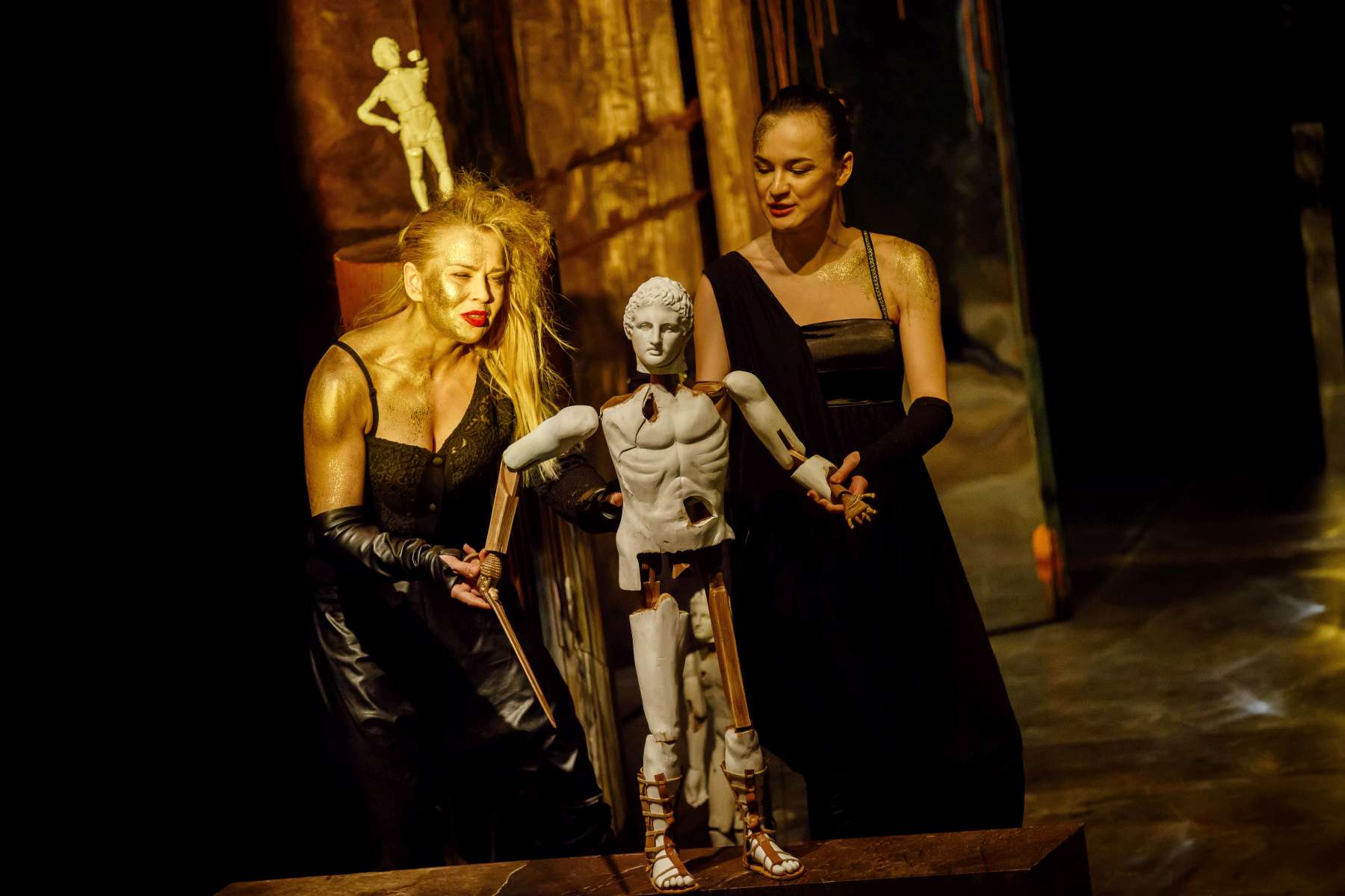 Kluczem jest tu podwójność, na każdym niemal poziomie: dwie historie, dwa plany, dwa czasy, dwie perspektywy, punkty widzenia. Jarosz buduje swoją opowieść, łącząc przeszłość i współczesność, zagubionemu bohaterowi naszych czasów przeciwstawiając witalność antycznego herosa. I wraz z zespołem czyni to, sięgając po cały arsenał teatralnych środków: lalki, żywy plan, wspaniałą scenografię, wizualizacje, transową muzykę.